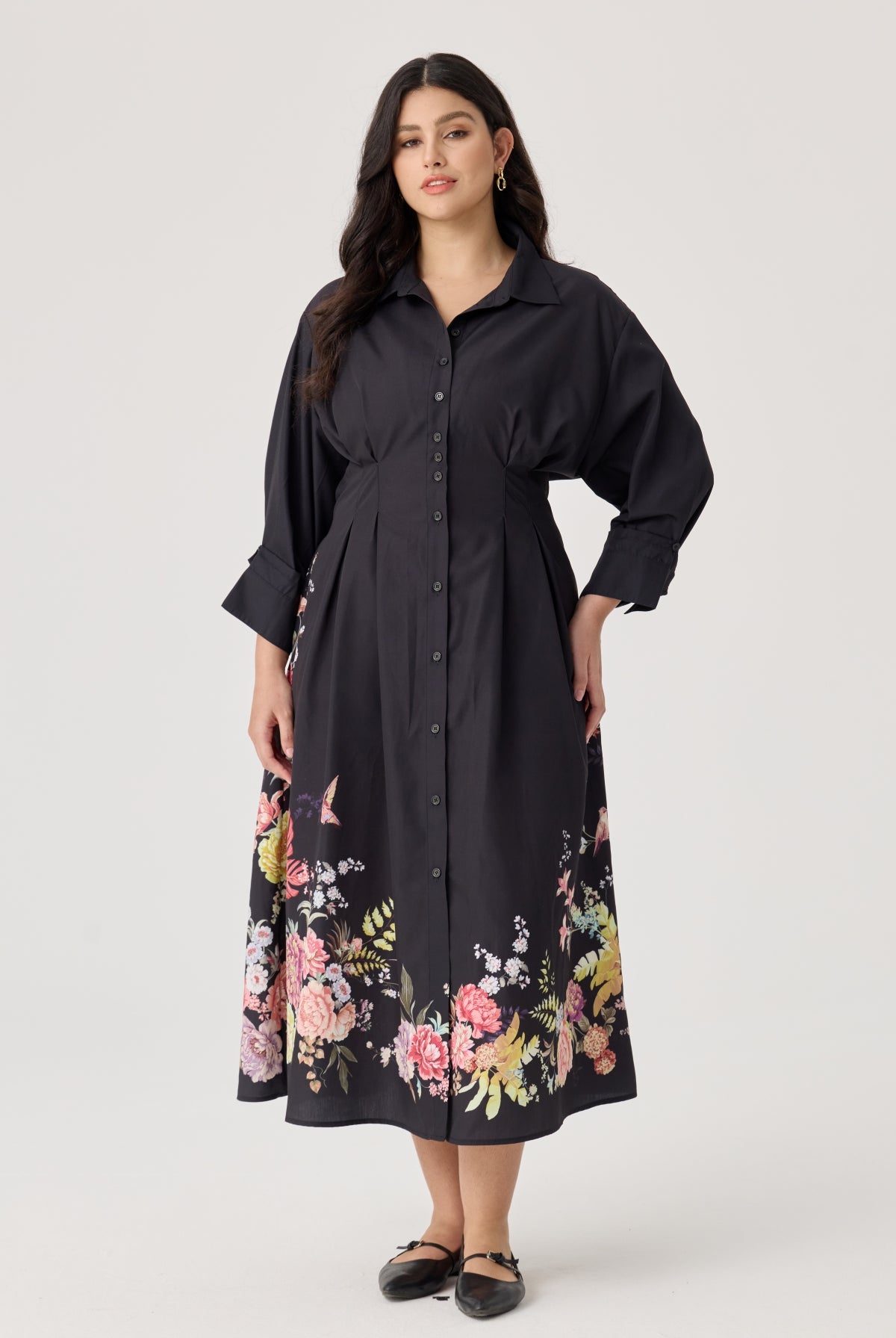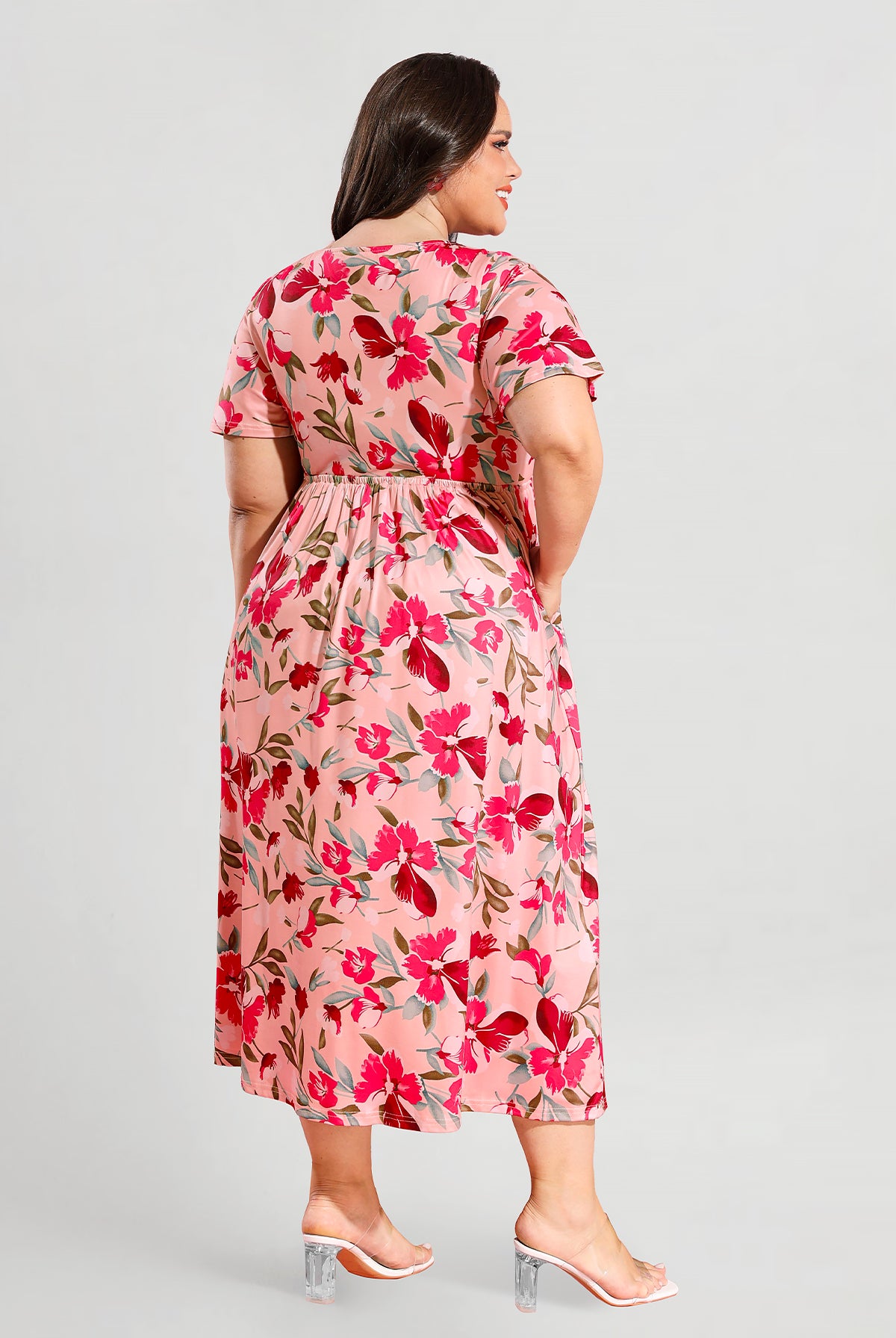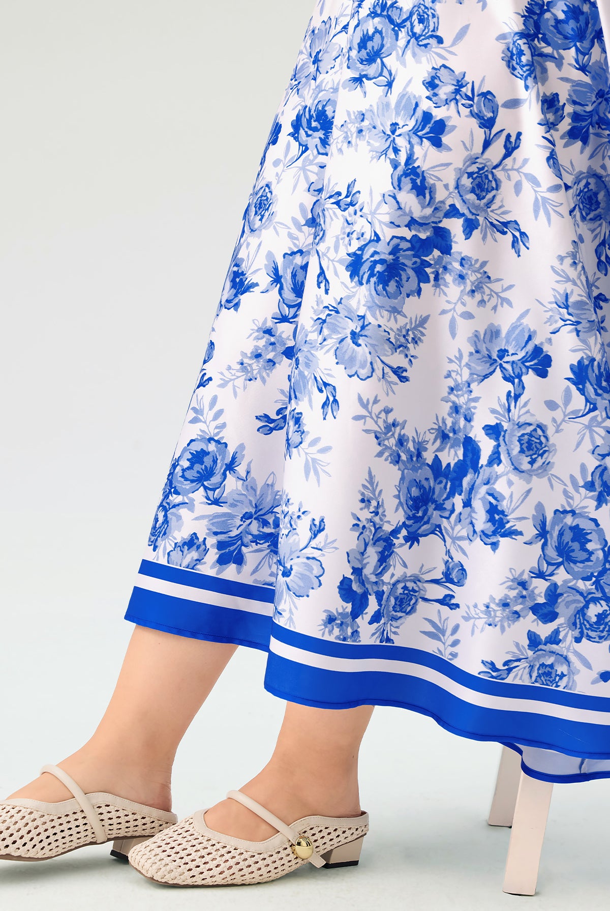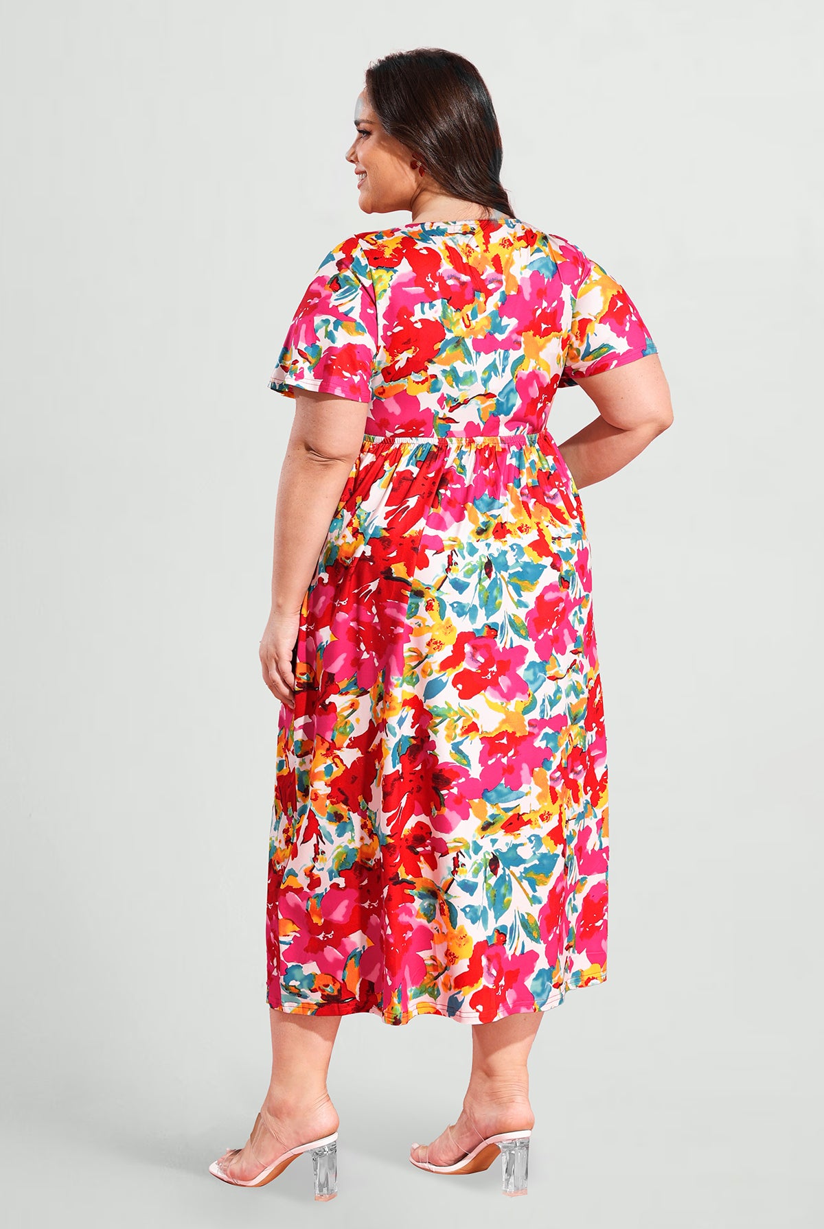 Ritera Pockets Elastic Waist Floral A-line Midi Dress