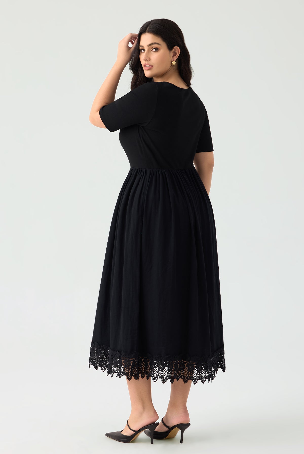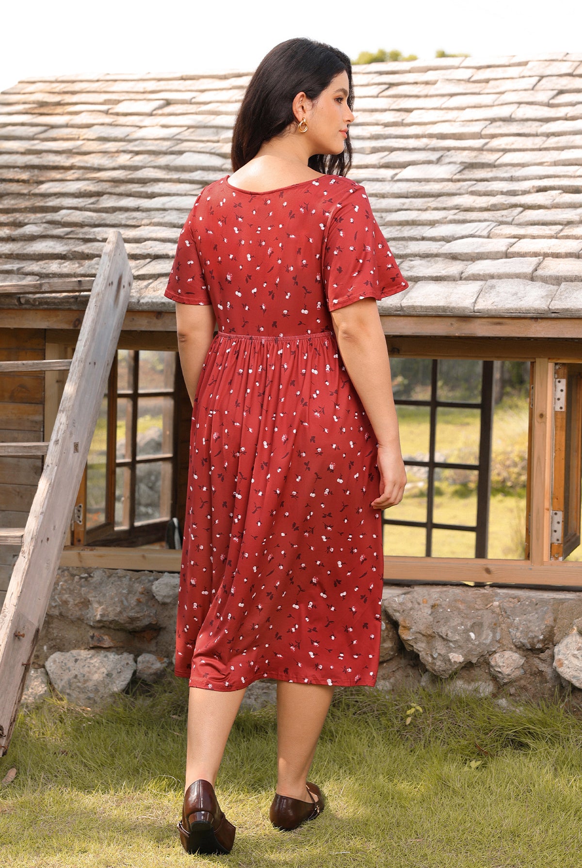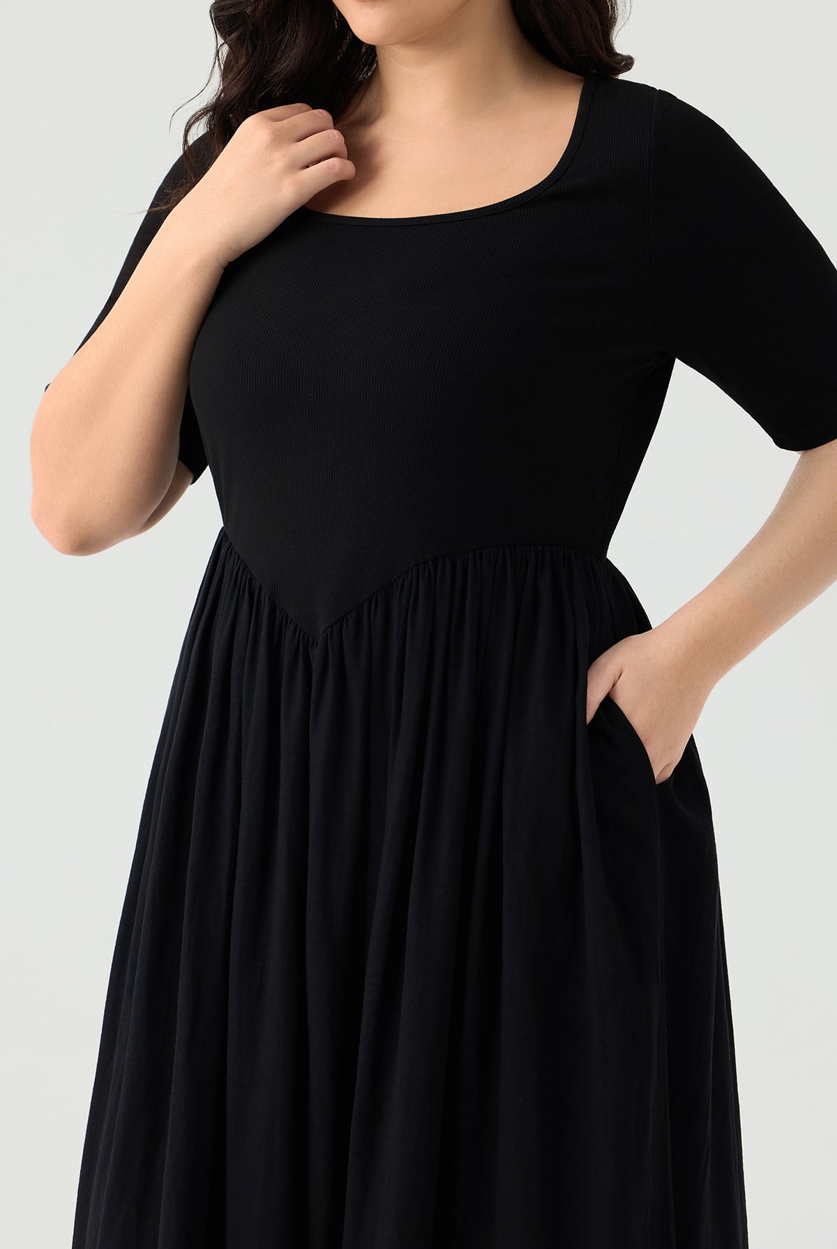 Ritera Pocket Elastic Waist Pleated Midi Dress