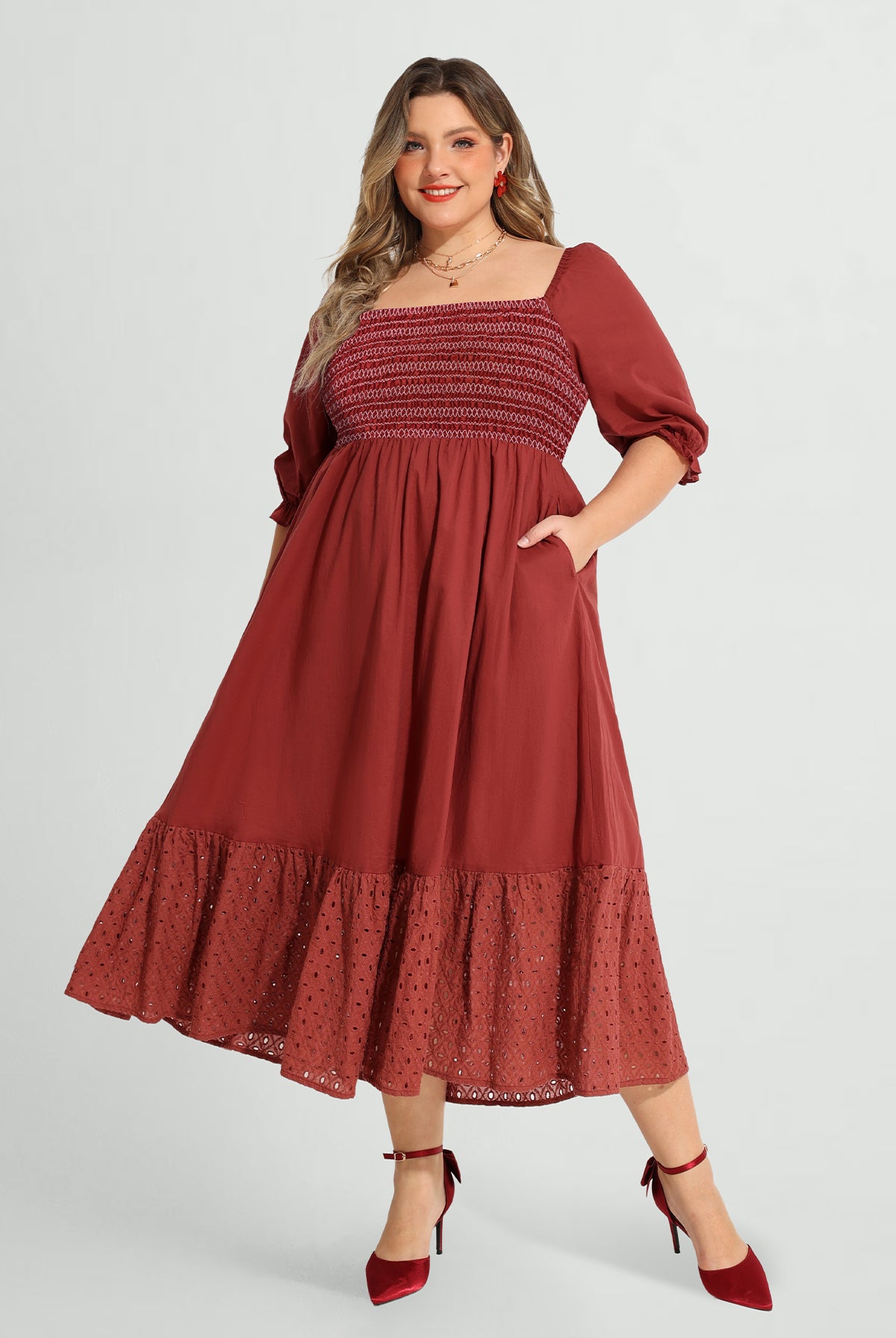 Ritera Pockets Bohemian Smocked A-Line Midi Dress