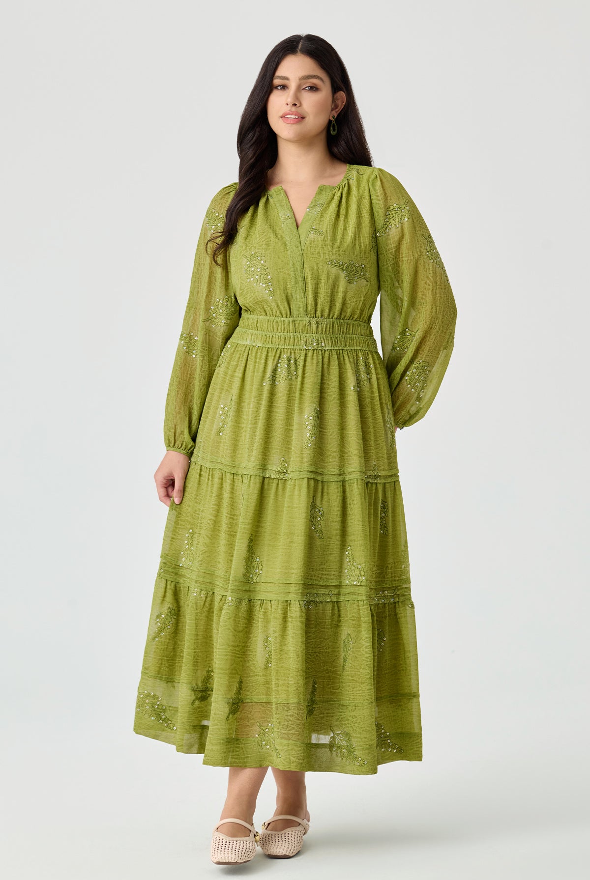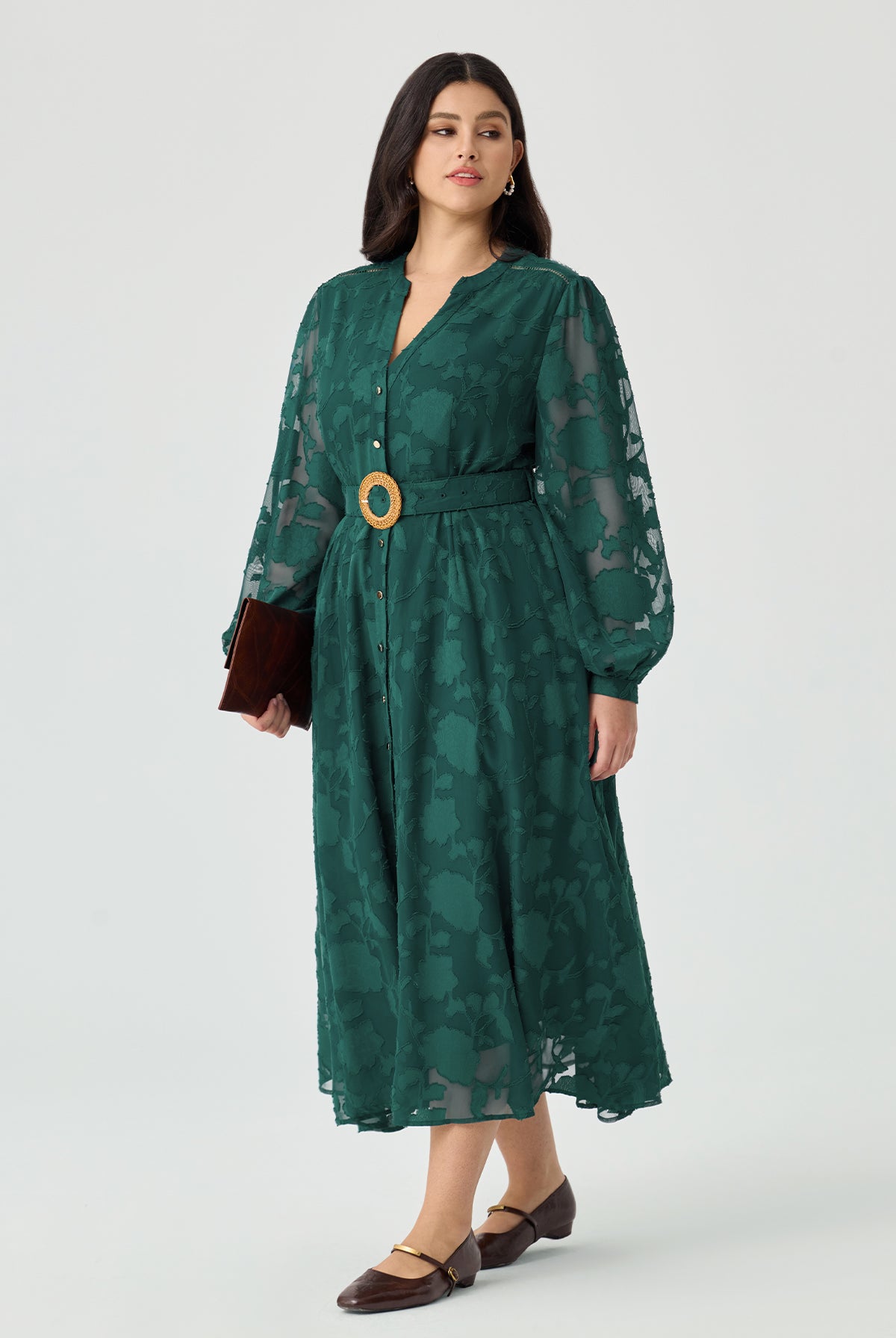 Ritera Pocket Sparkle Glitter Button Detail Midi Dress