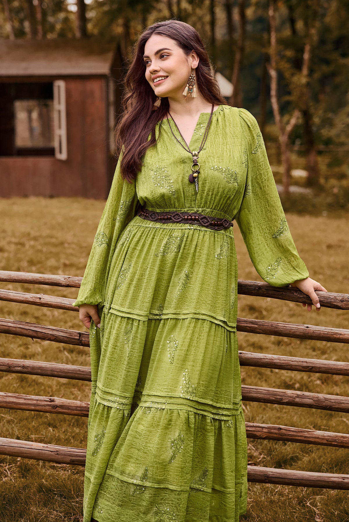Boho Print Pocket Drawstring Tassel Waist A-line Midi Dress