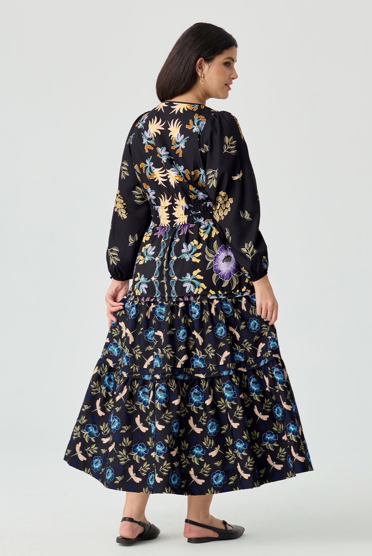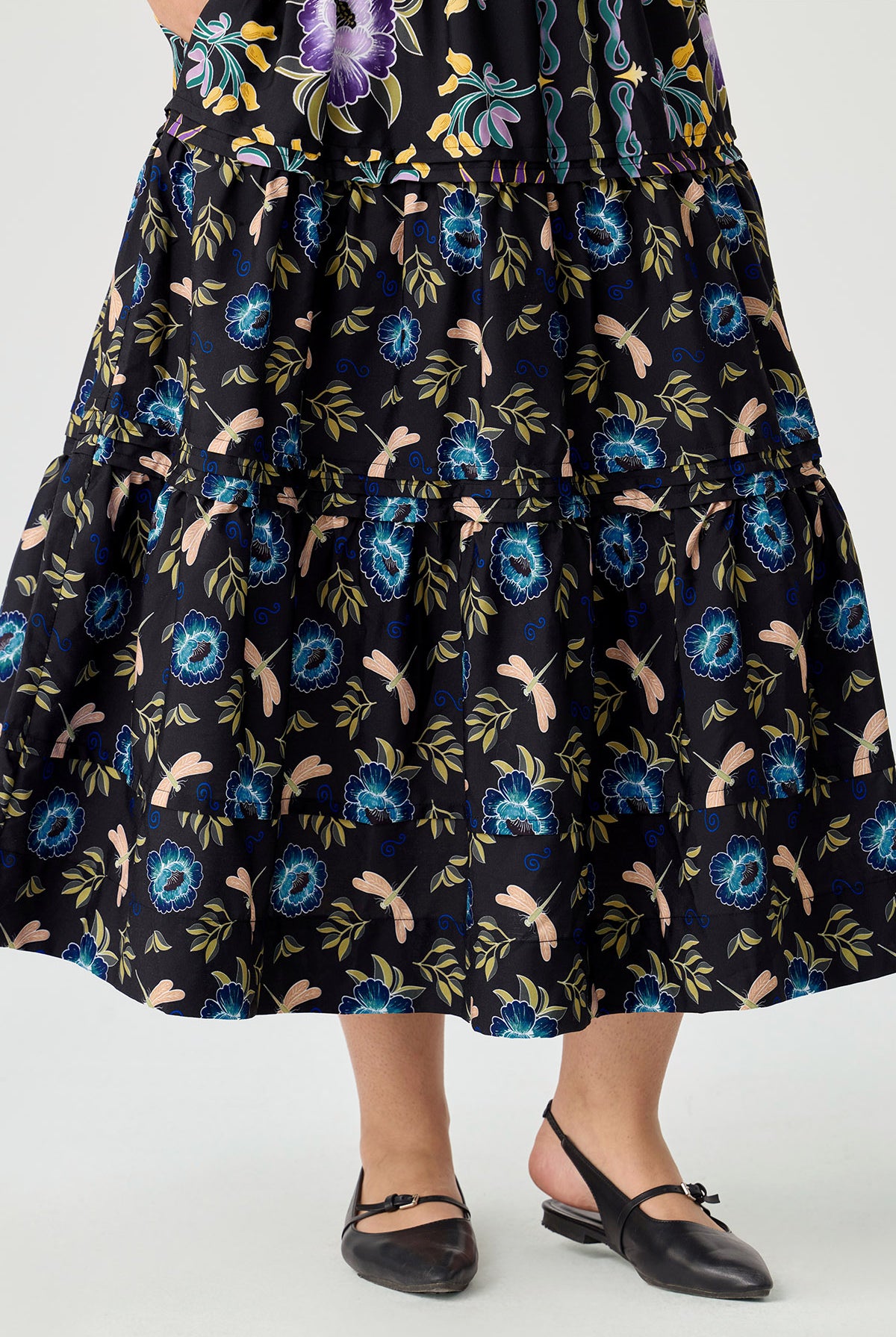 Ritera Pockets Star Floral Print Drawstring Waist Tiered Midi Dress