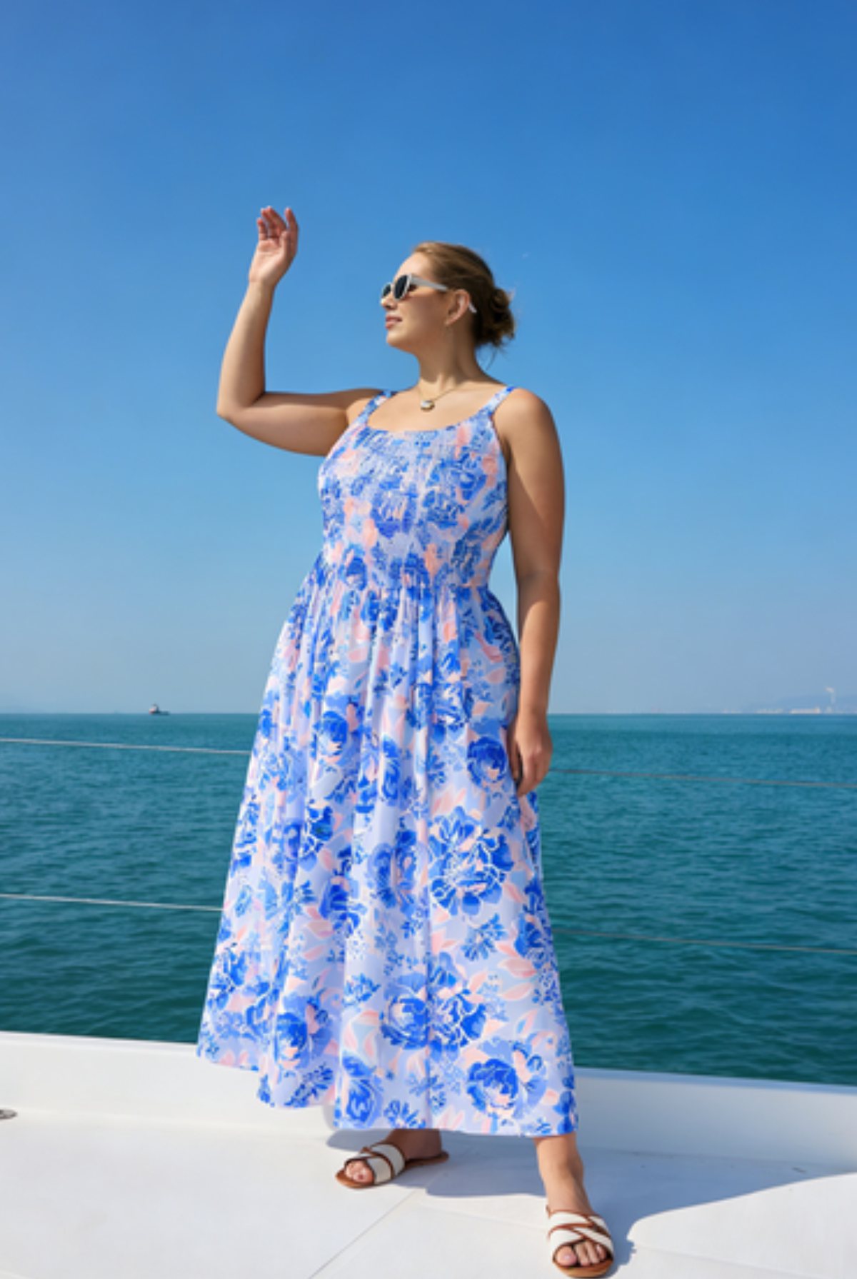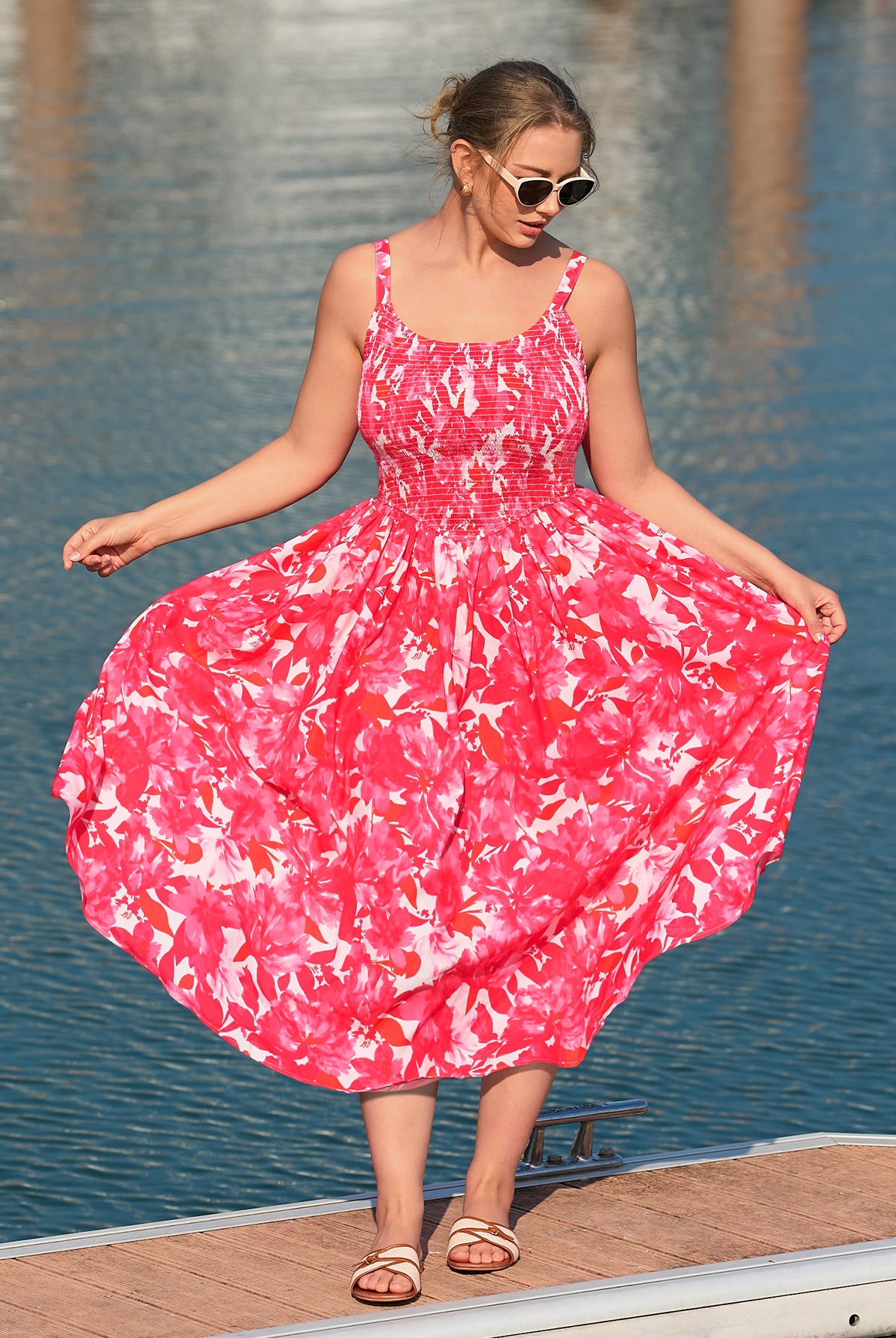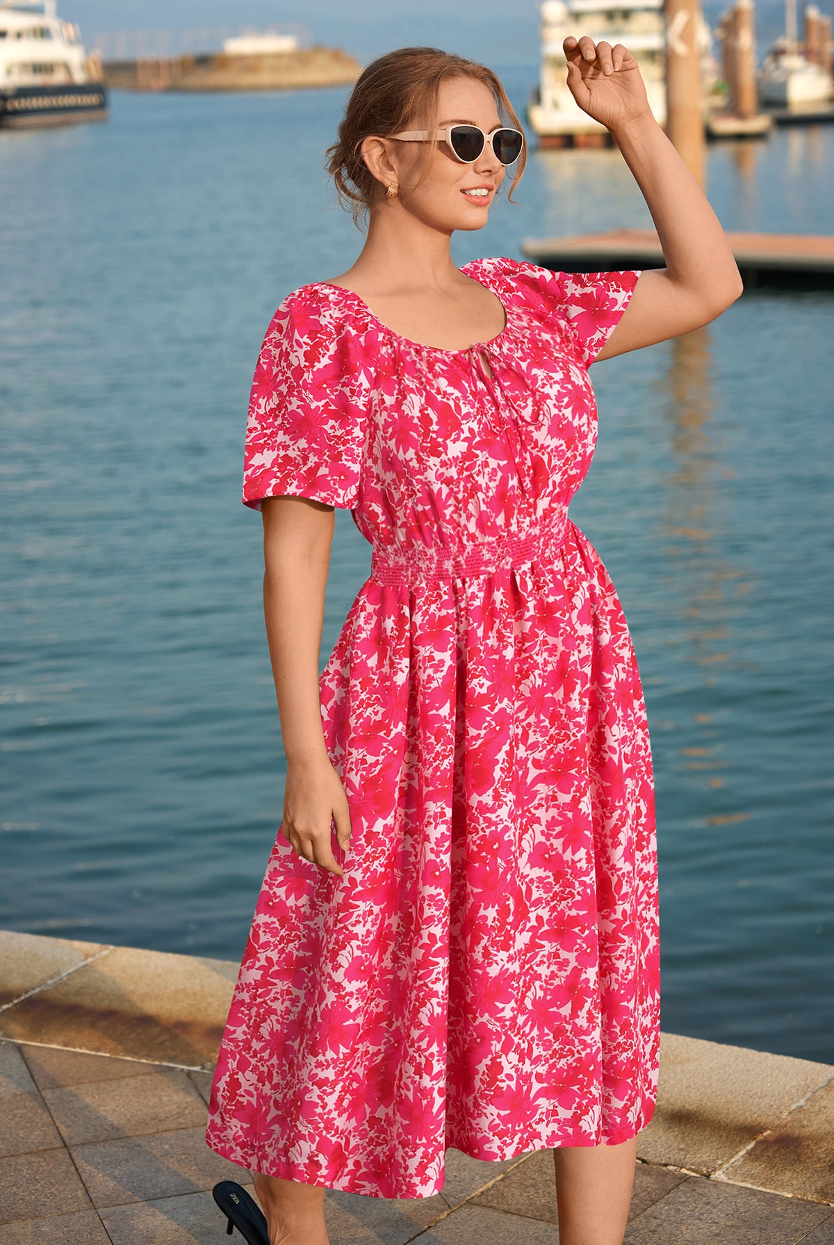 Ritera Pockets Floral Print Beach Summer Vibes Midi Dress