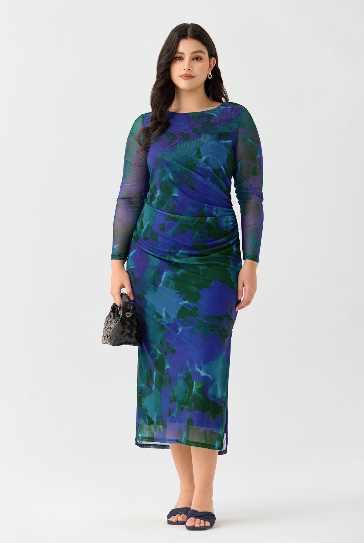 Pockets Elastic Waist Toile De Jouy Midi Dress