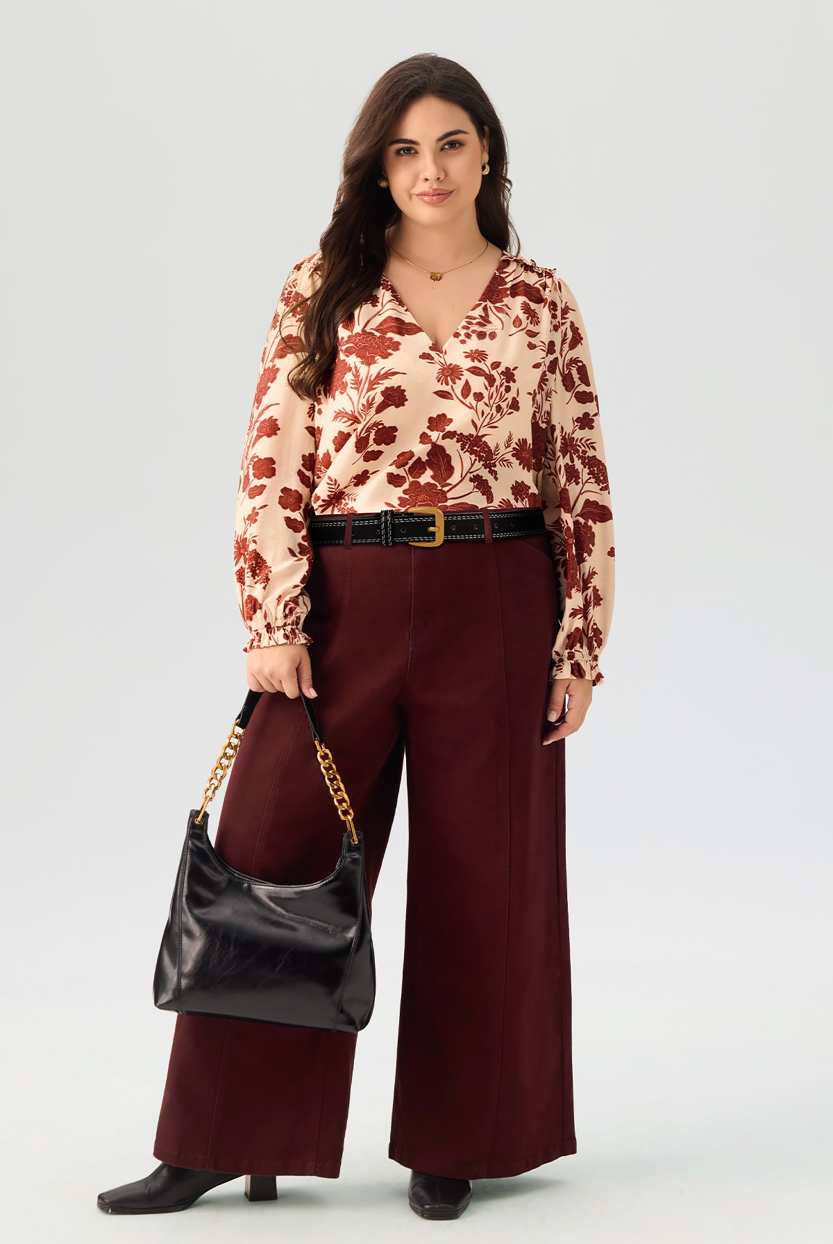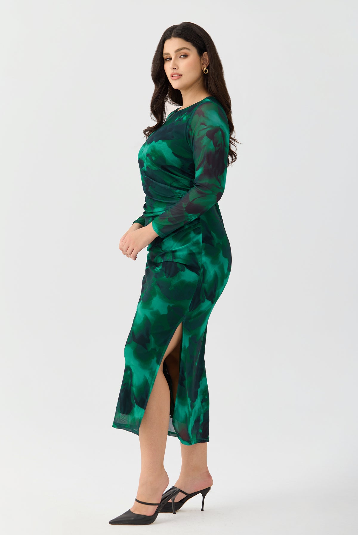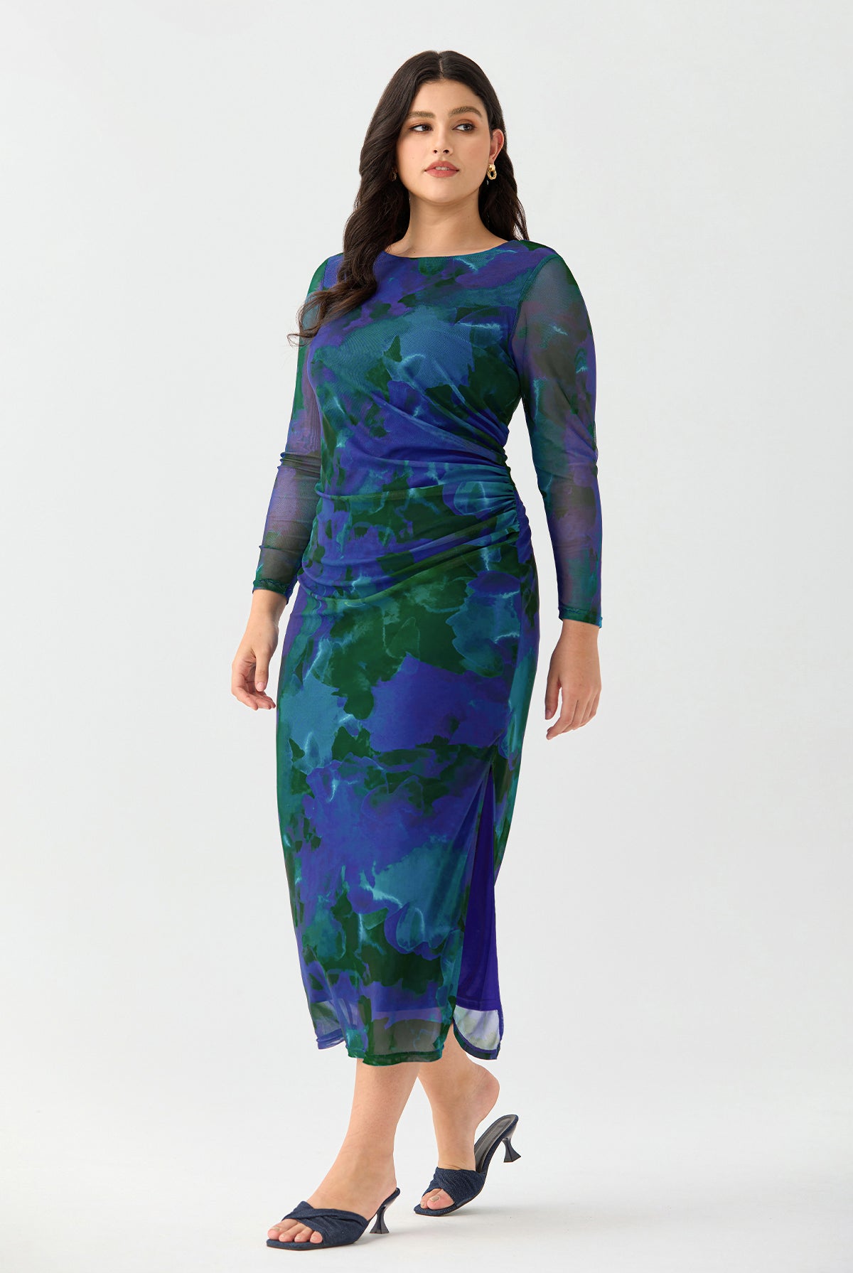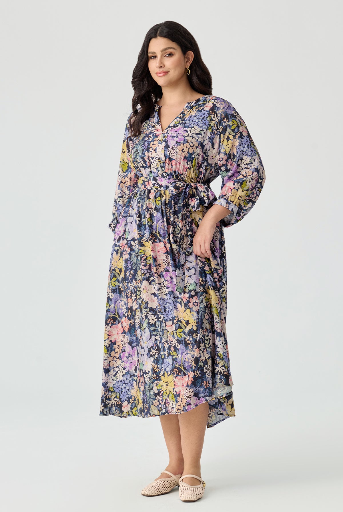 Pocket Floral Print Ruffle Sleeve Midi Dress