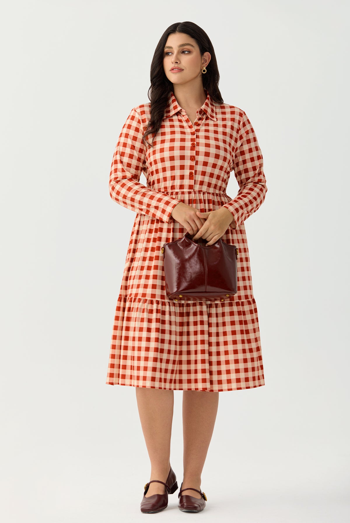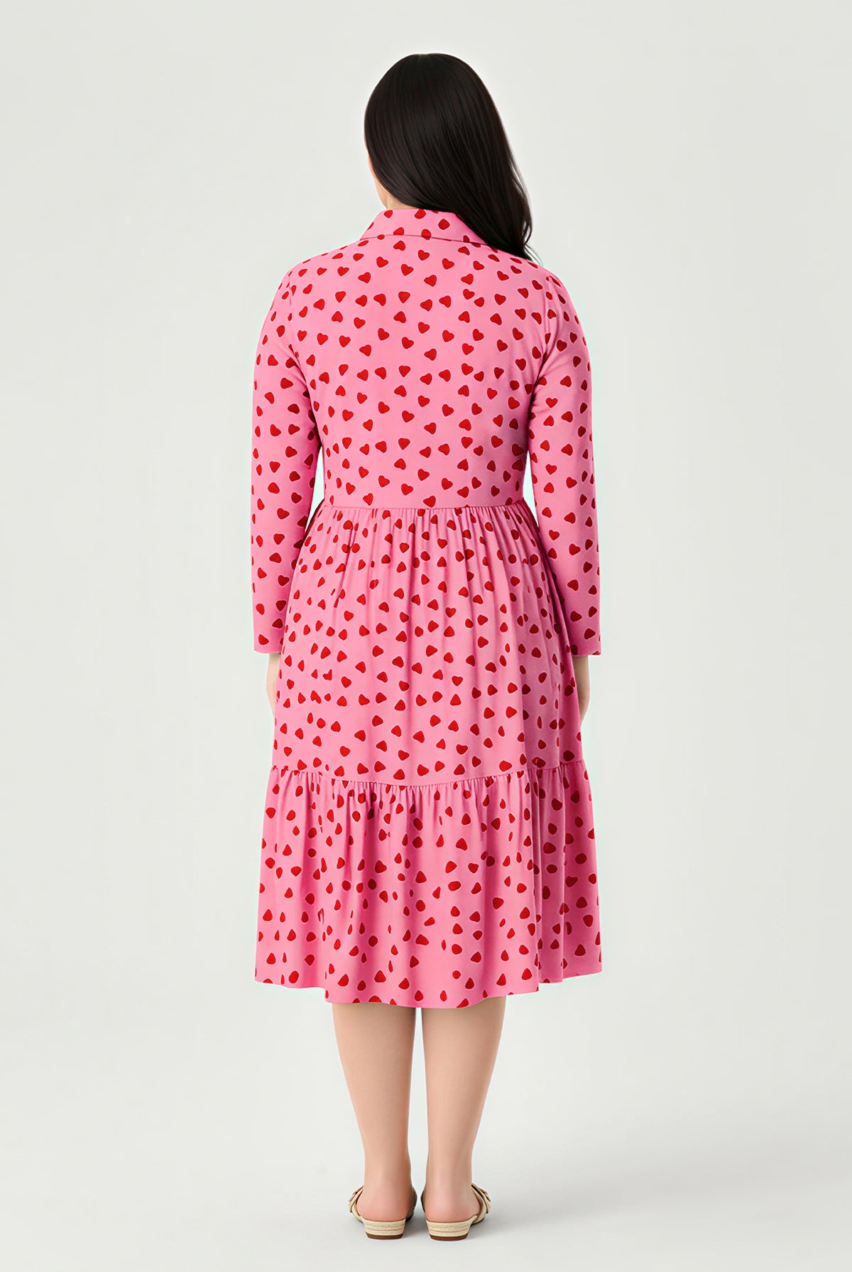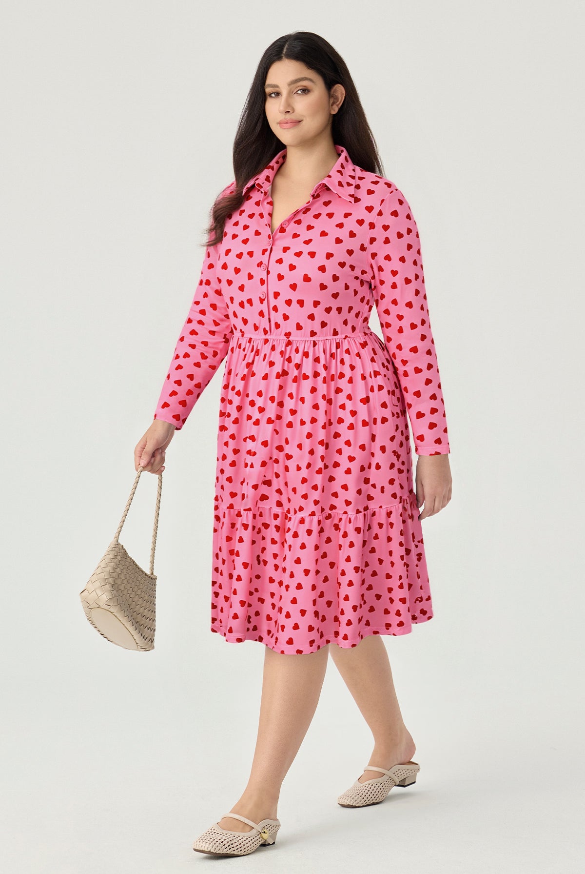 Pockets Button Up Floral Collar Neck Tiered Midi Dress