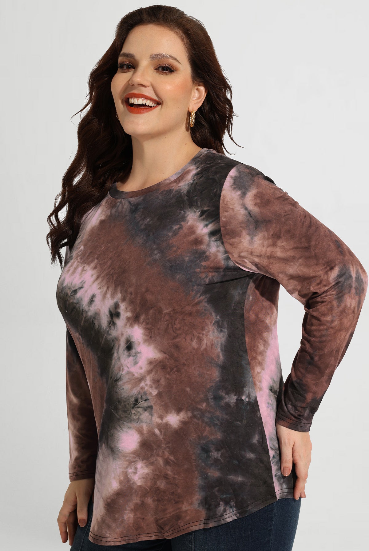 Chemise à manches longues et col ras du cou tie-dye