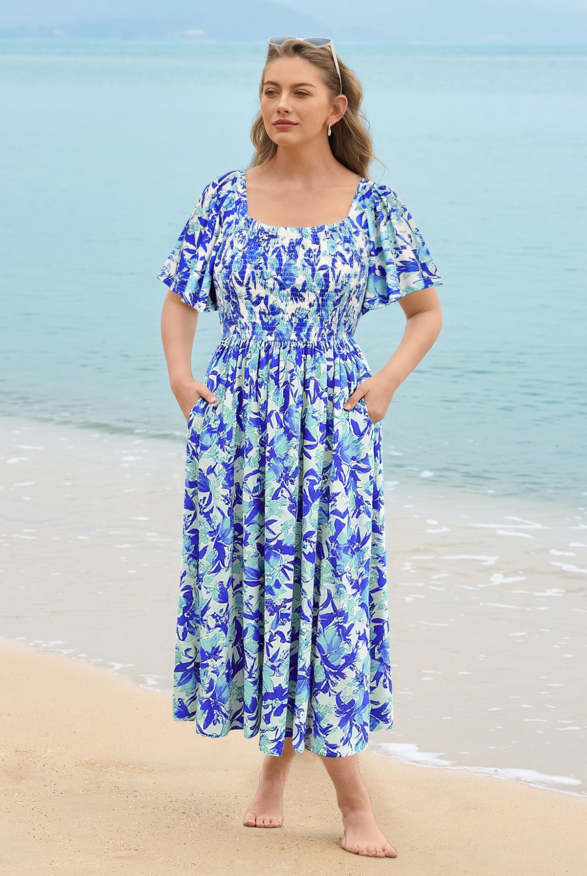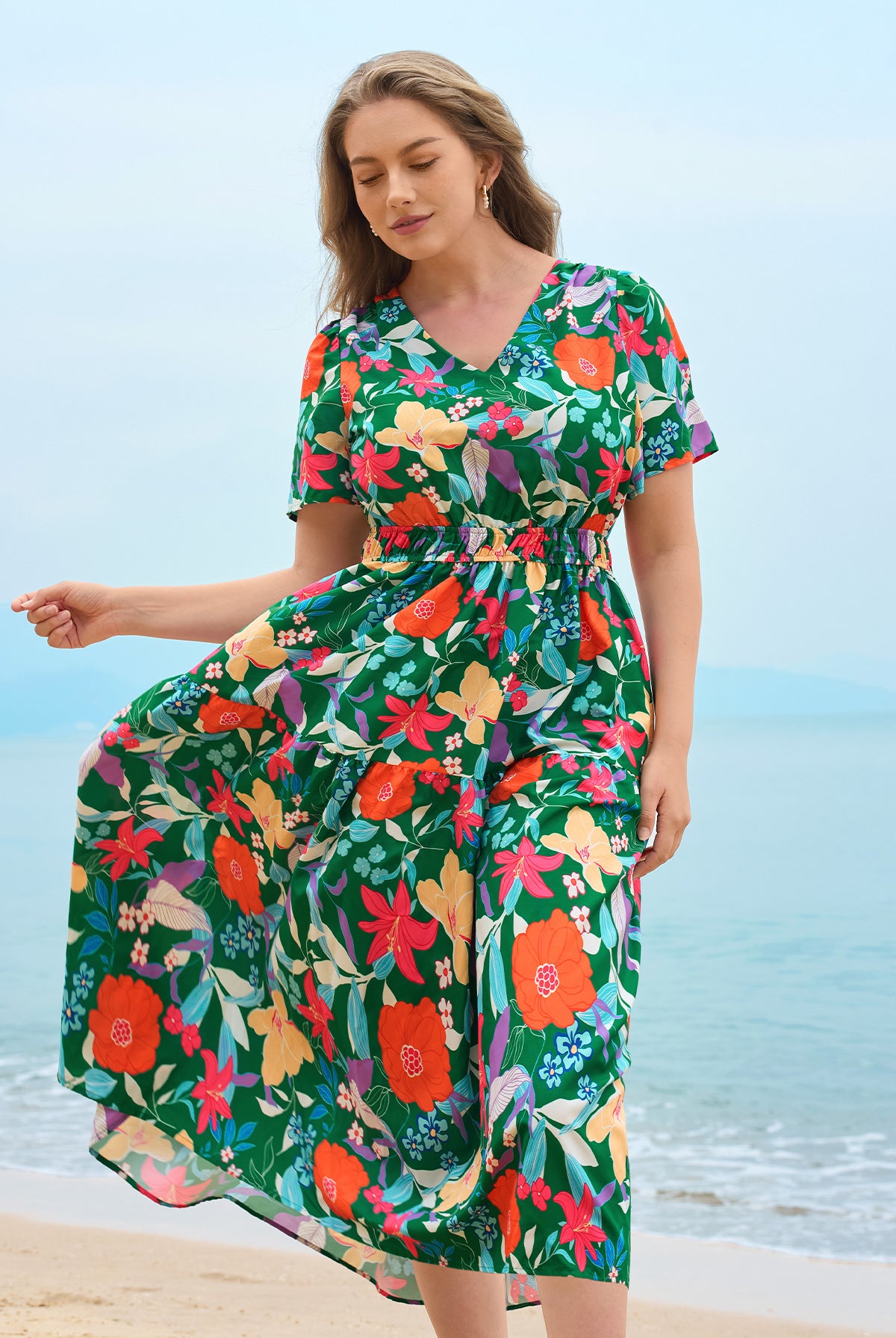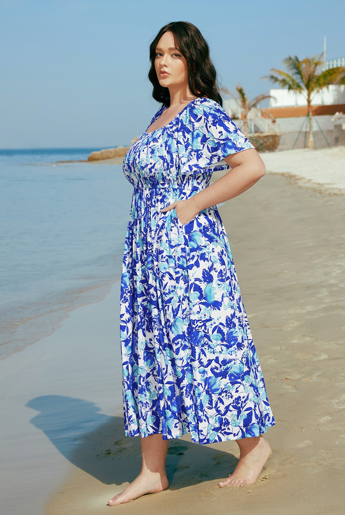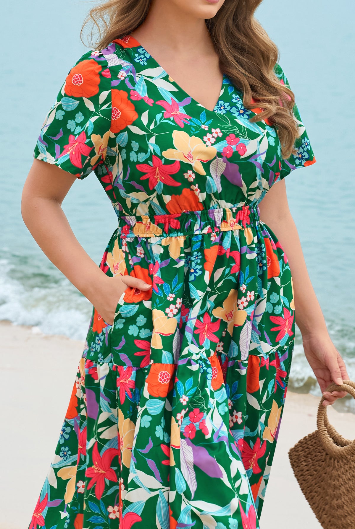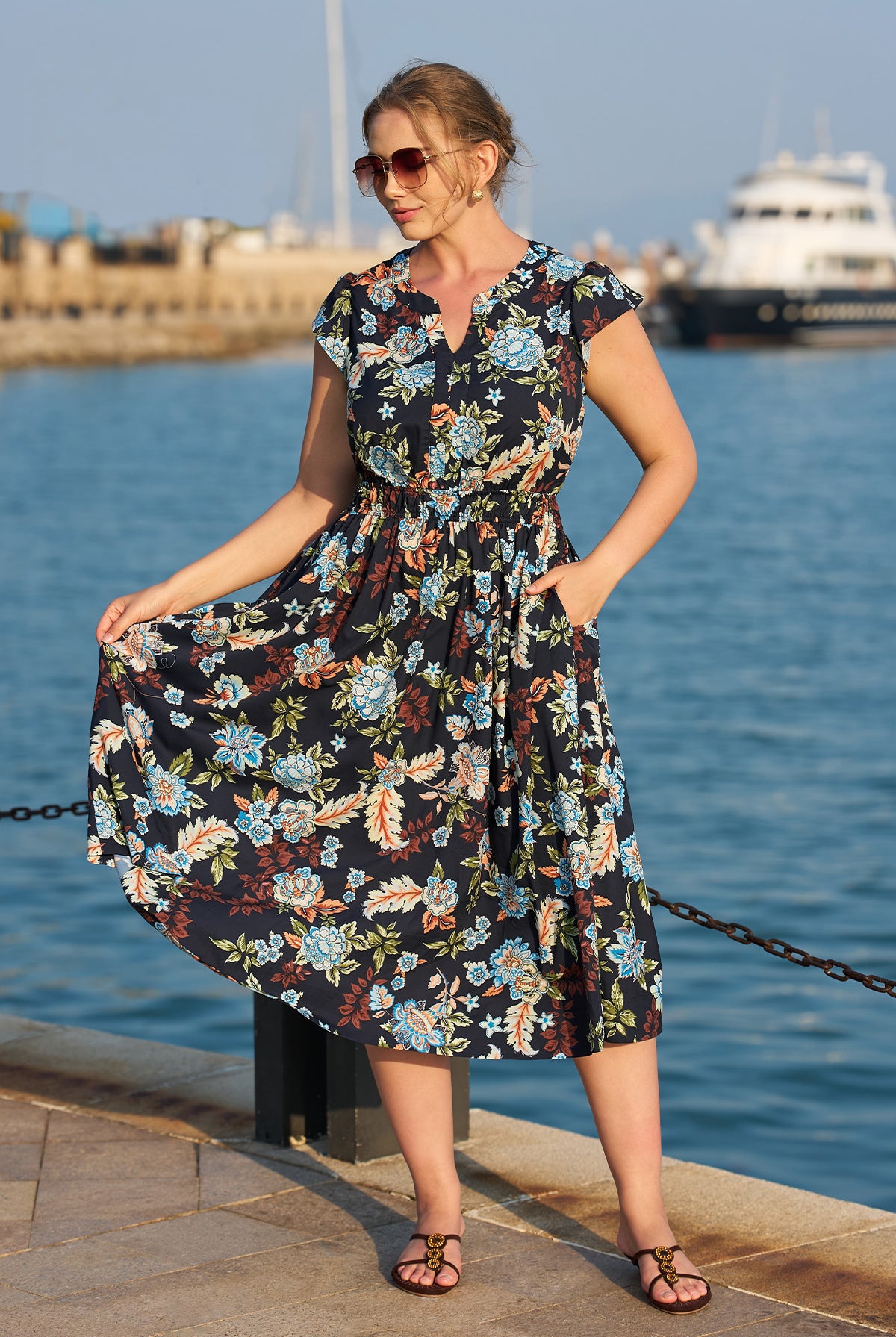 Ritera Pockets Floral Print Beach Summer Vibes Midi Dress
