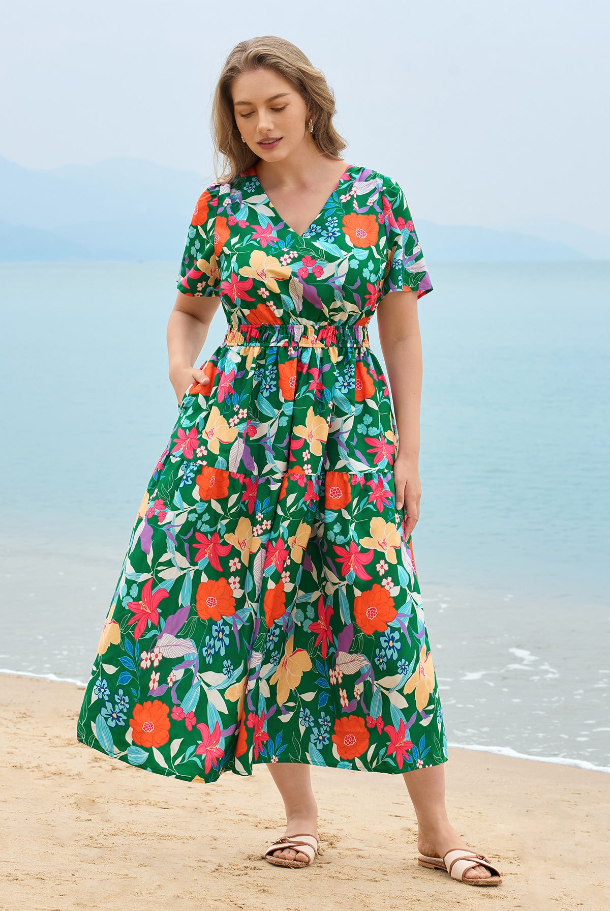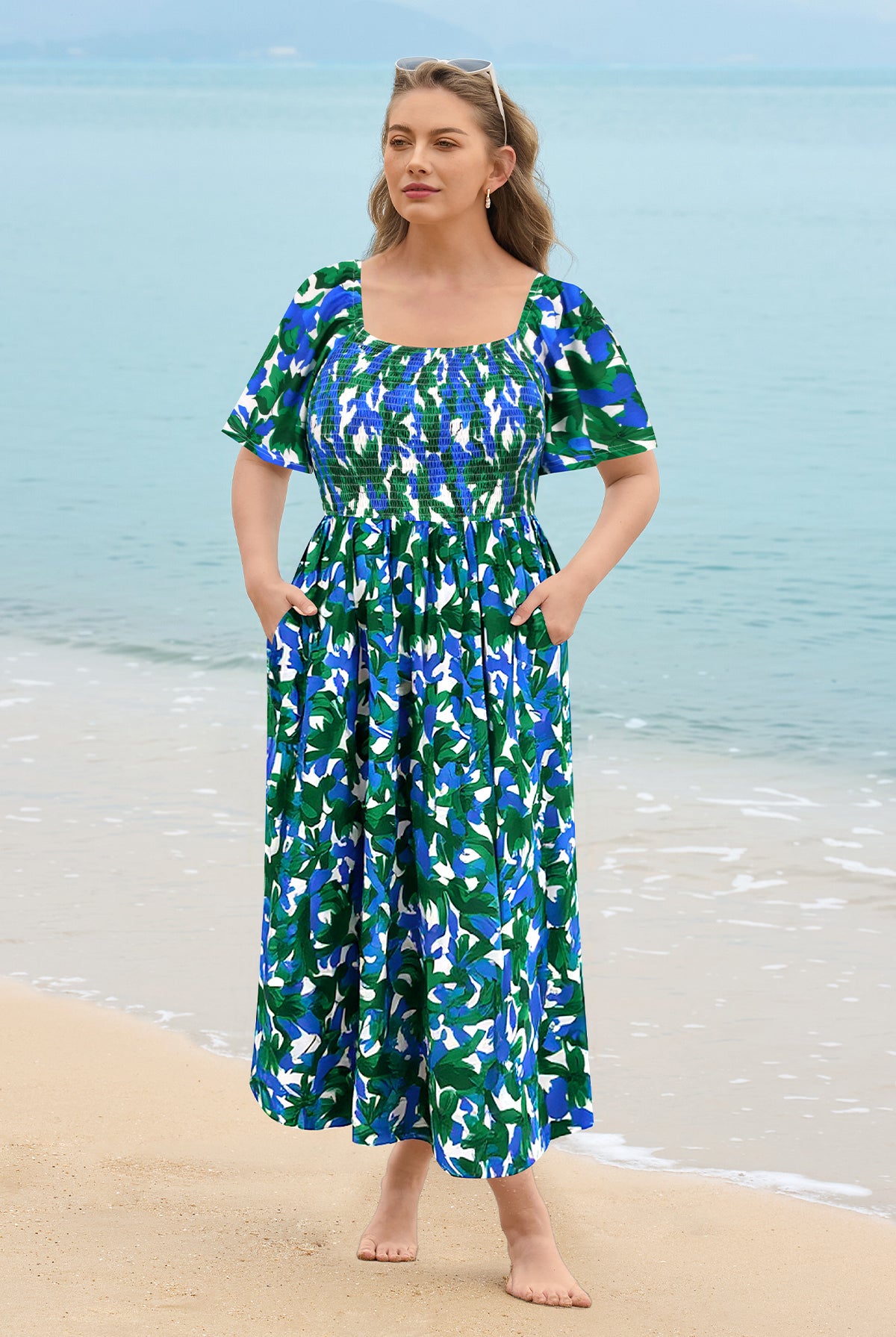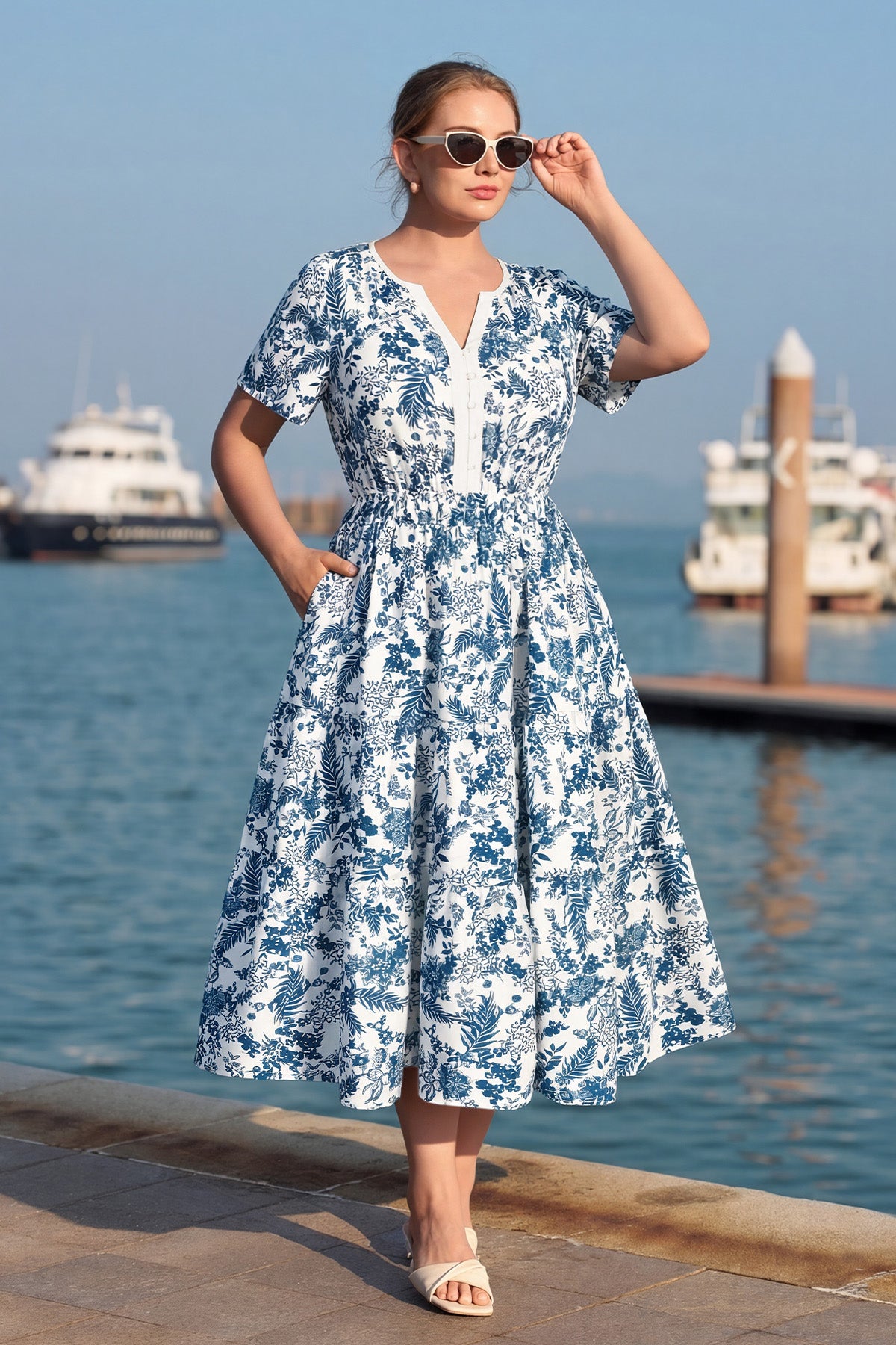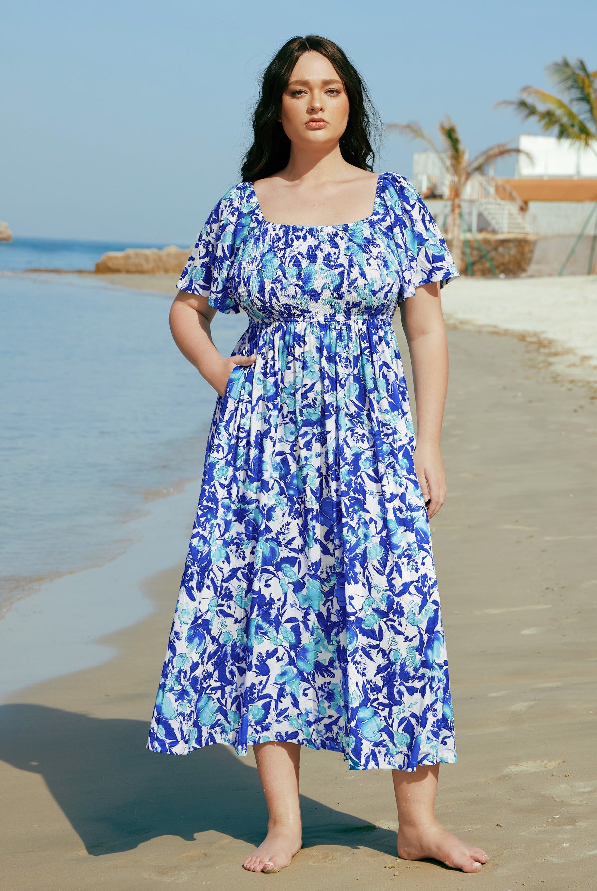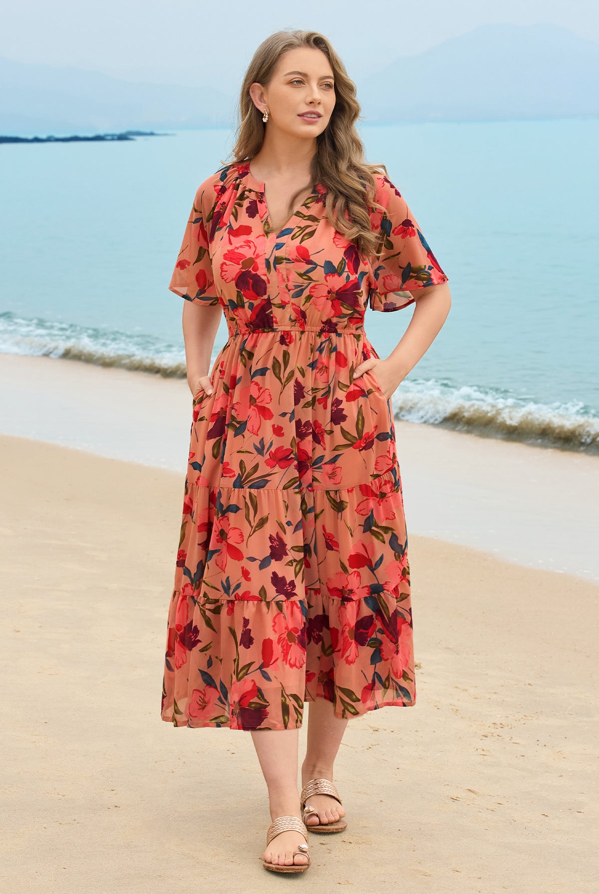 Ritera Pockets Floral Print Beach Summer Vibes Midi Dress