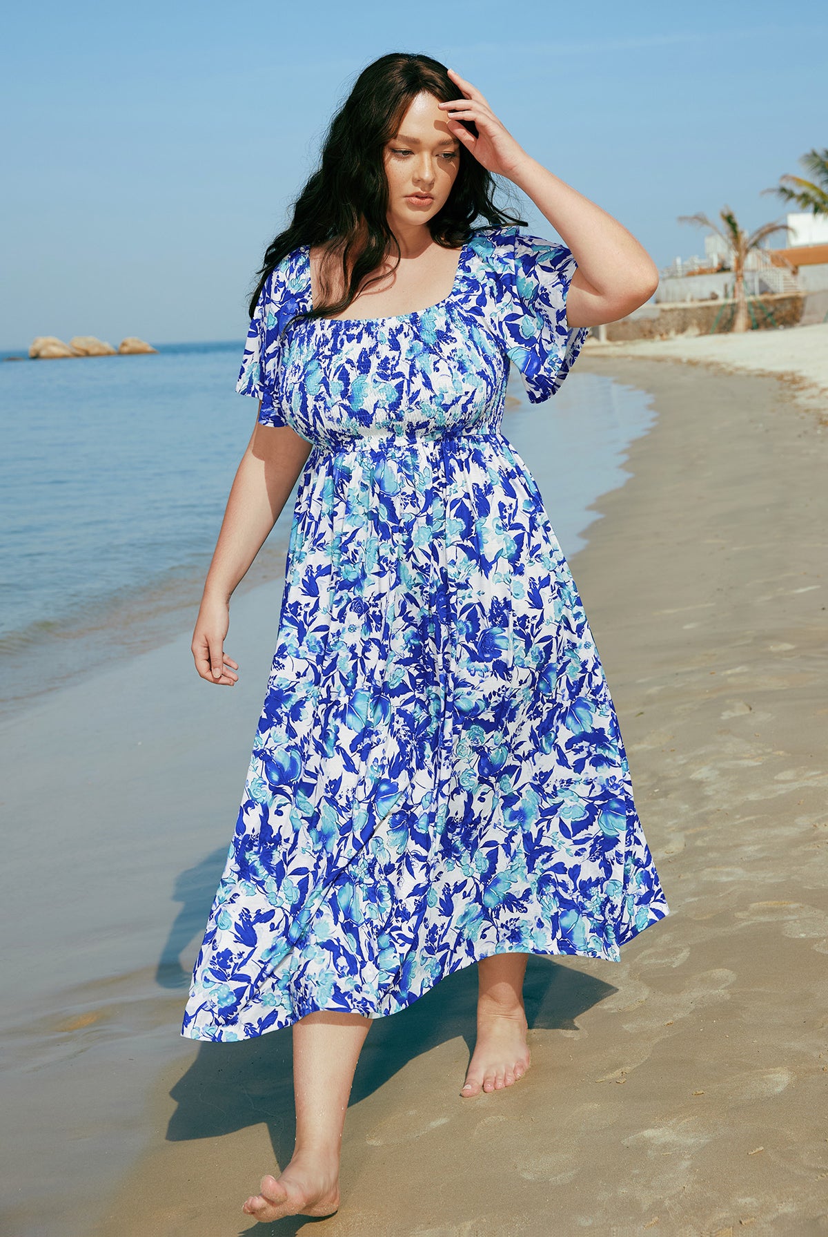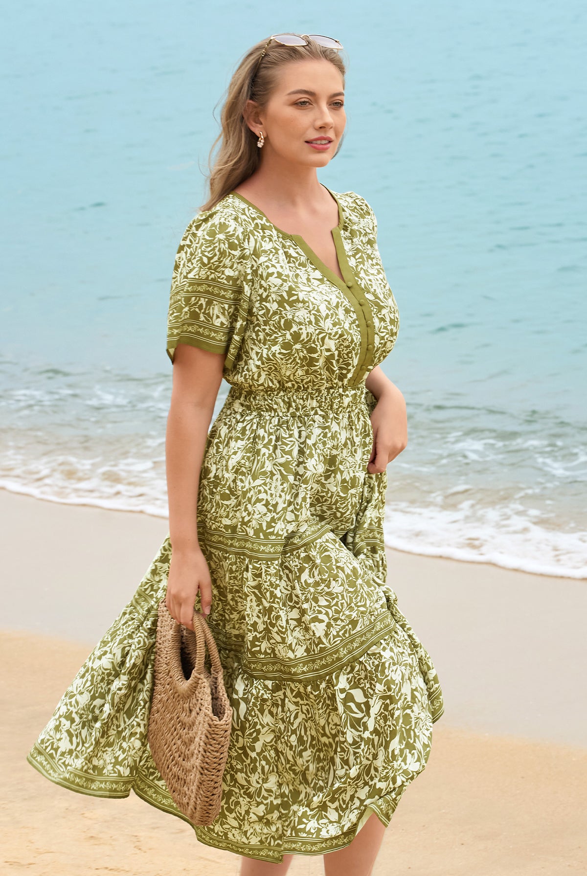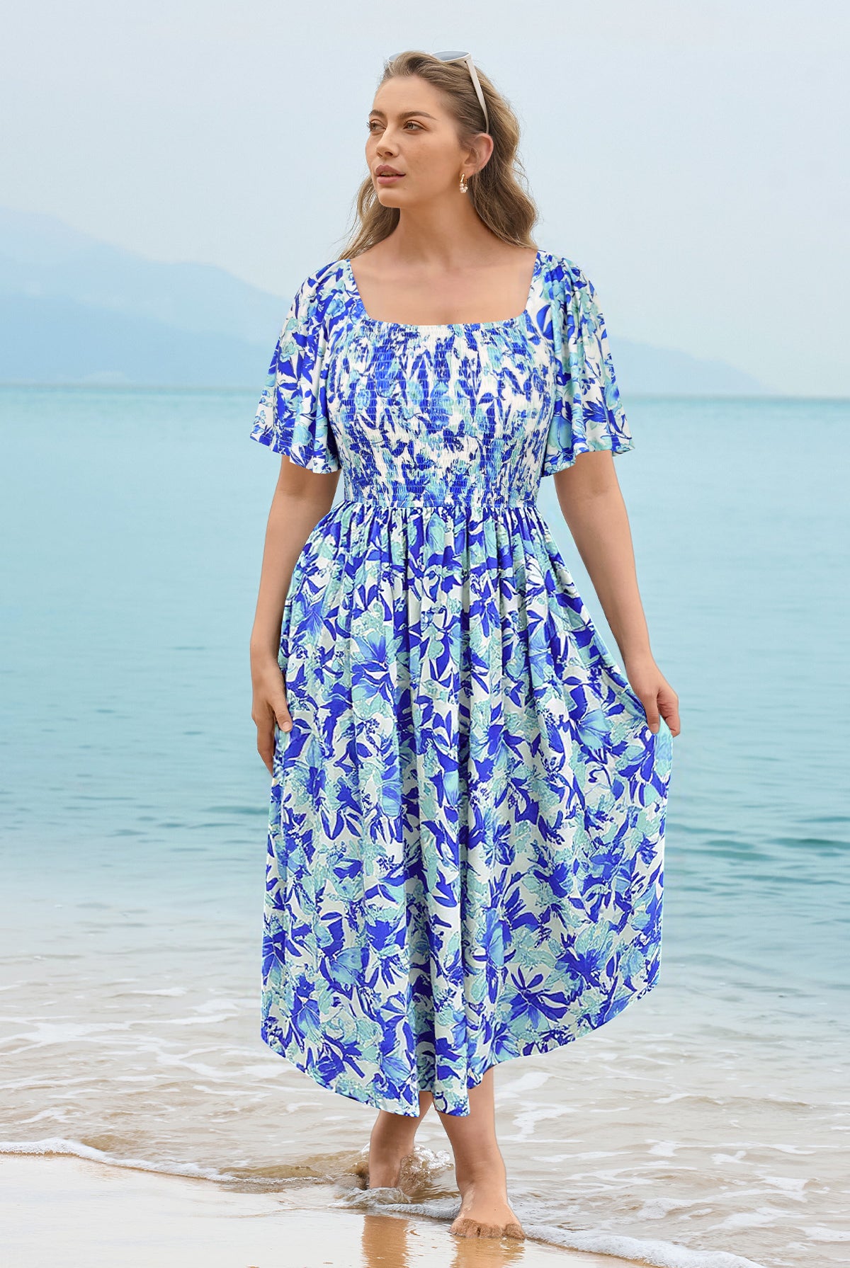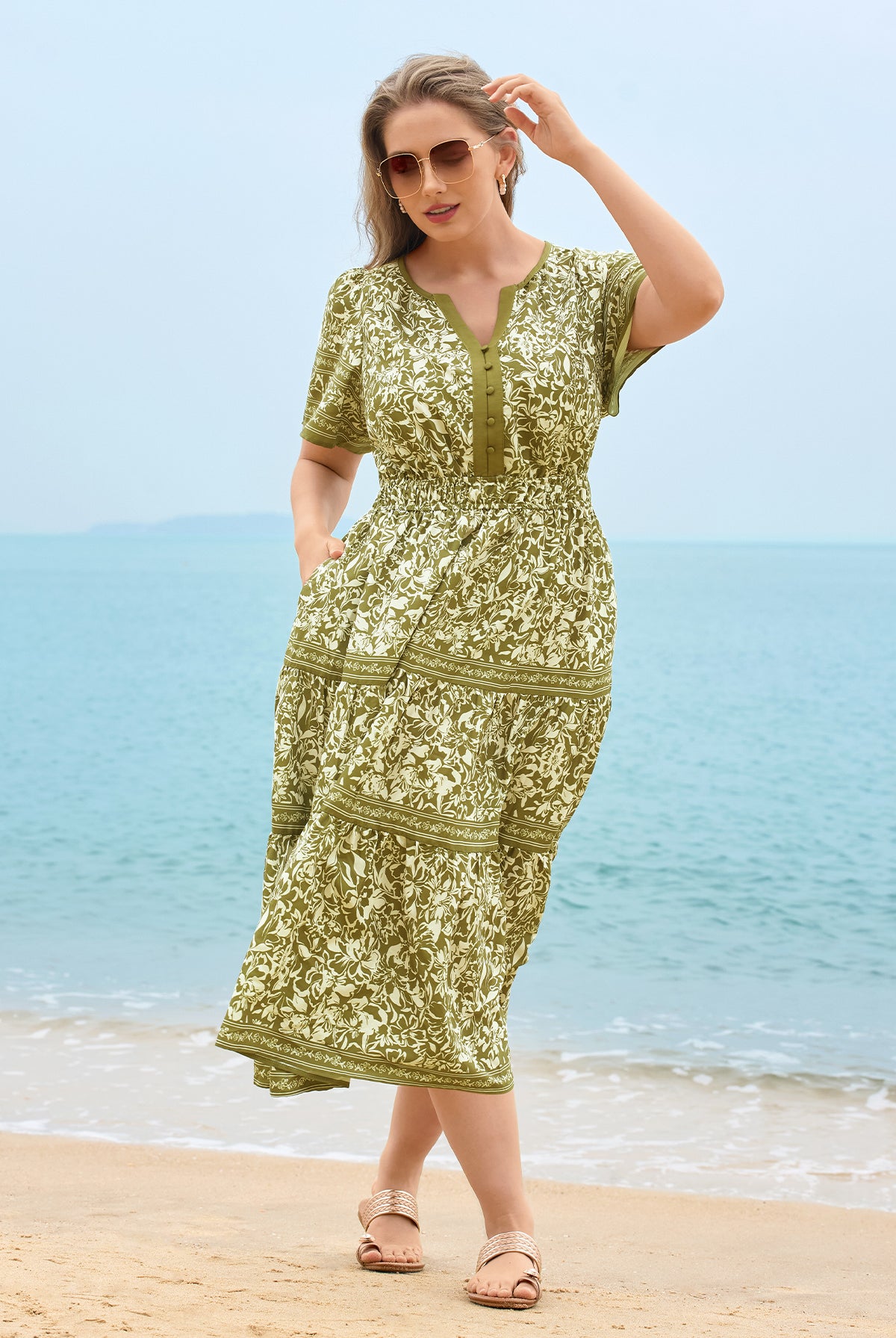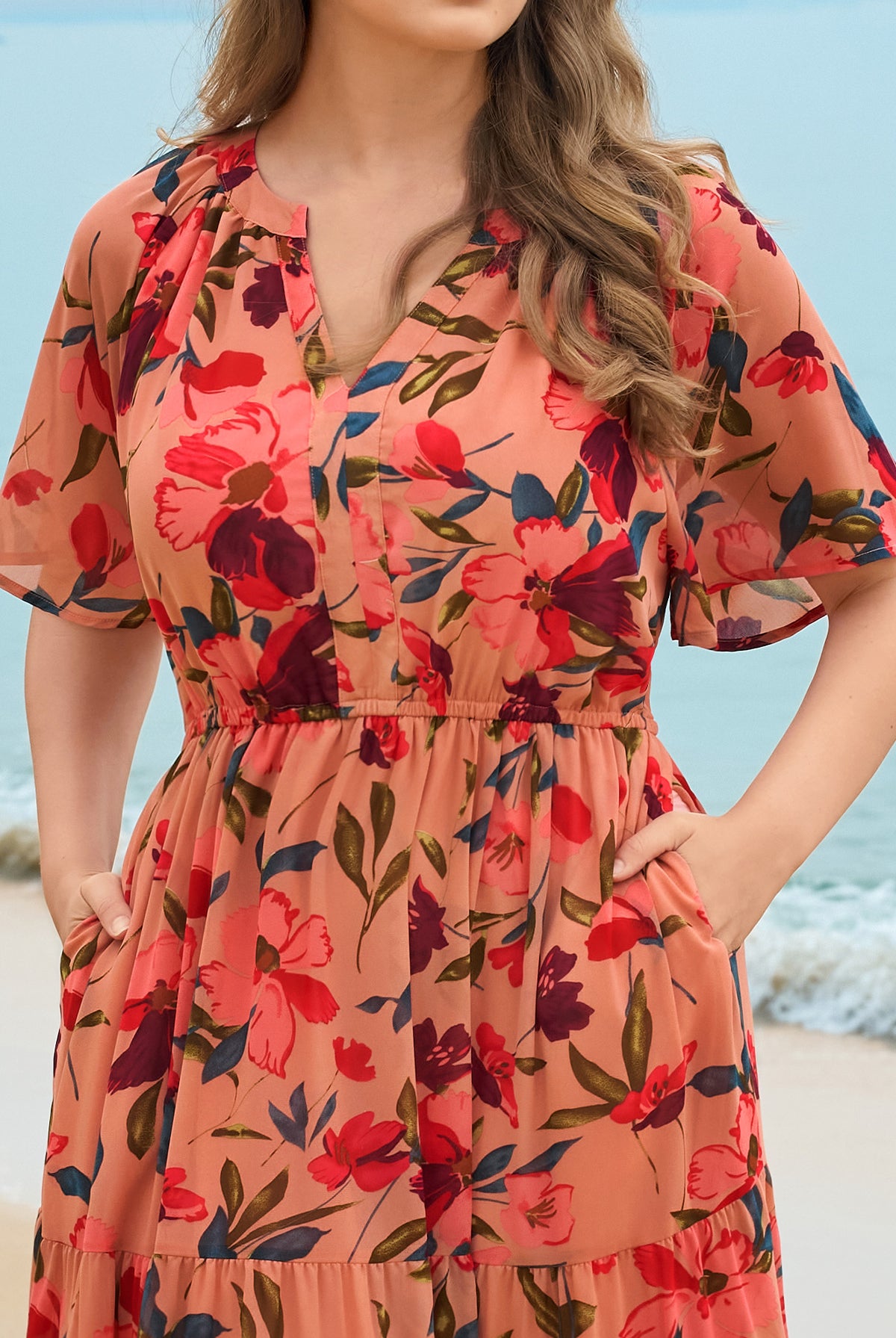 Ritera Pockets Floral Print Beach Summer Vibes Midi Dress