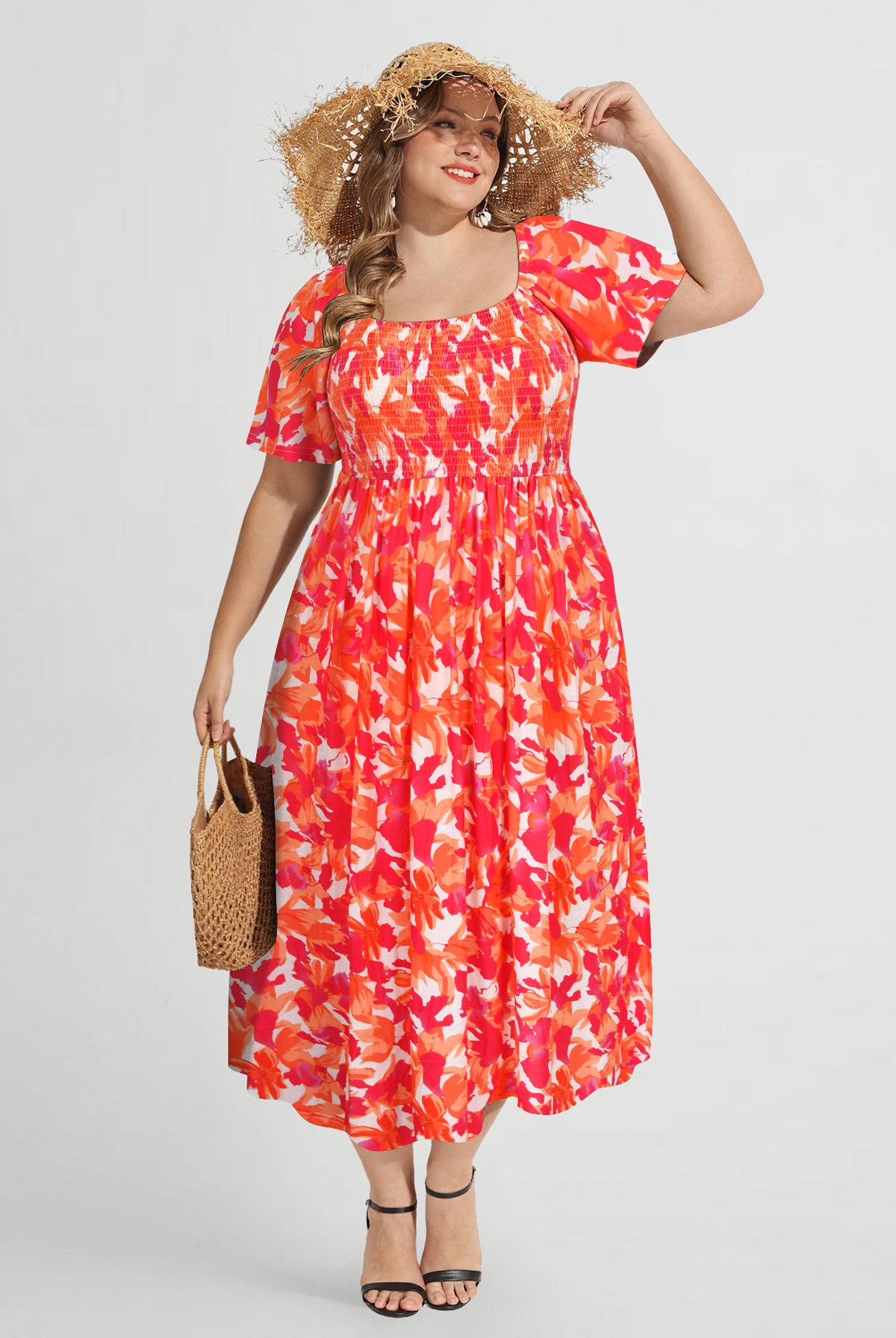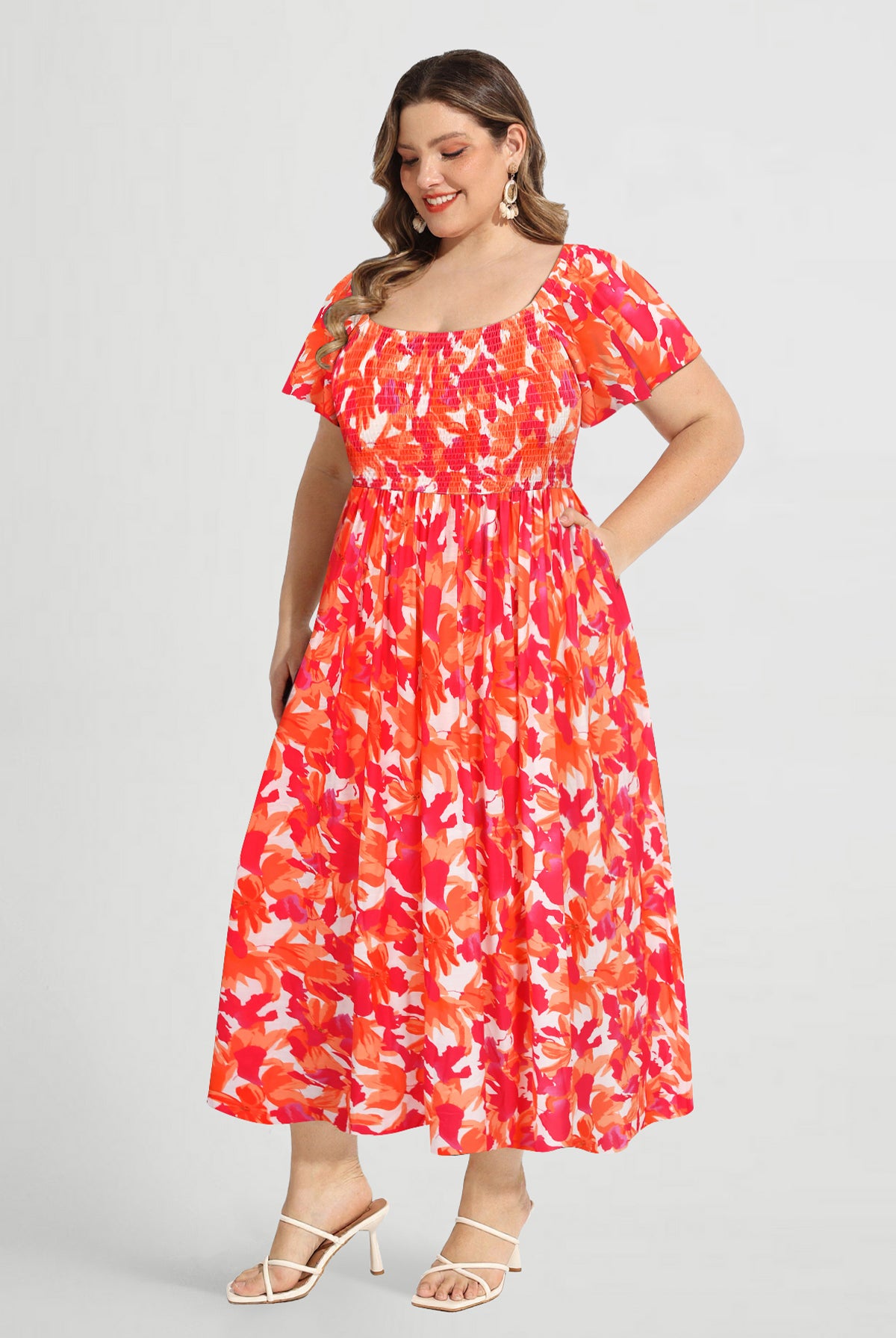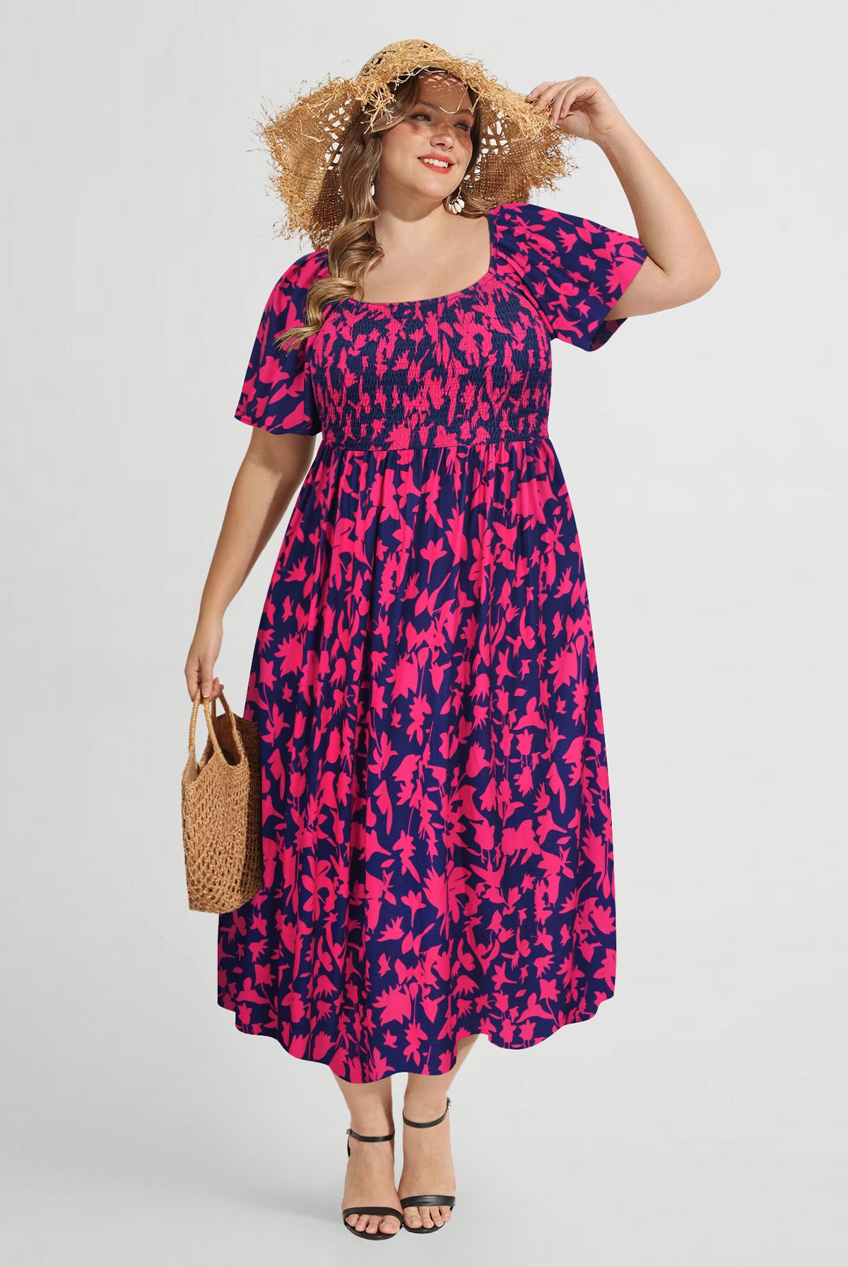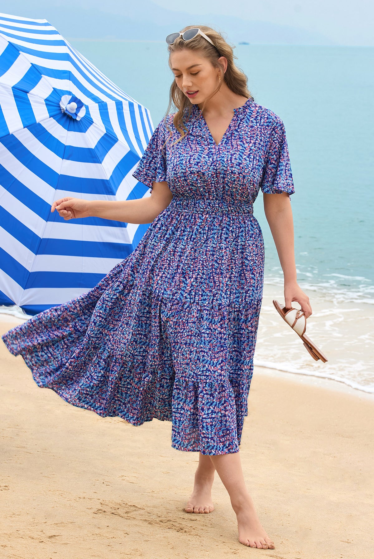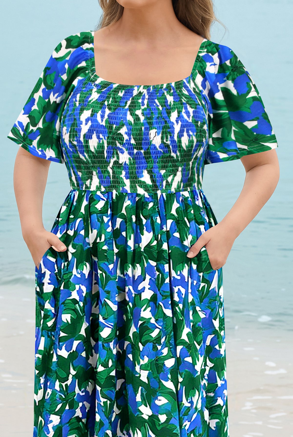 Ritera Pockets Floral Print Beach Summer Vibes Midi Dress