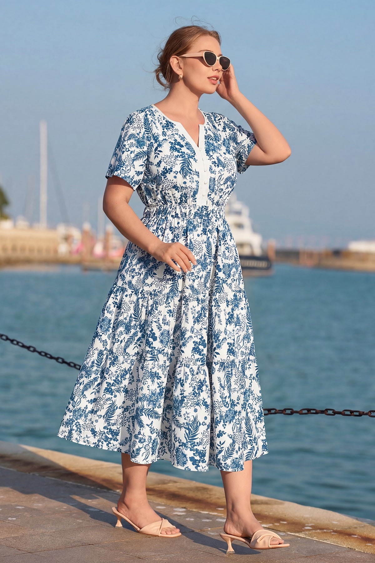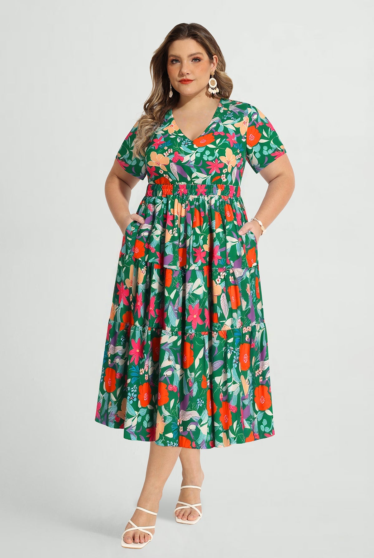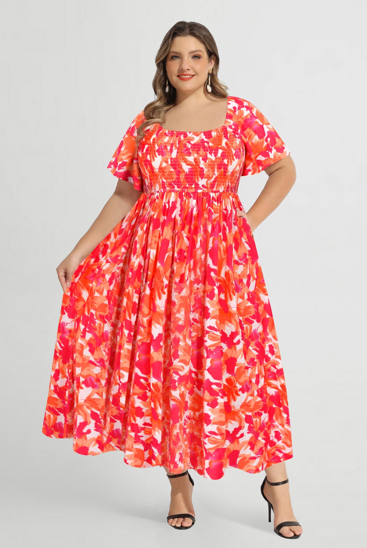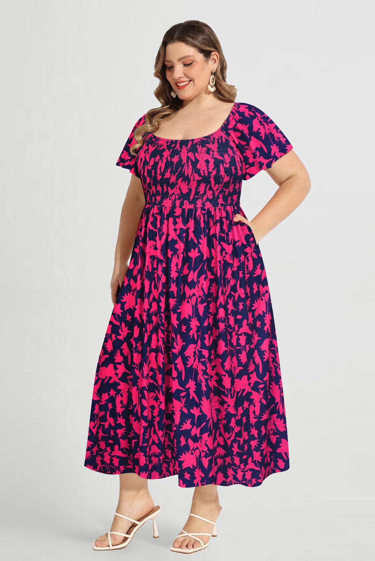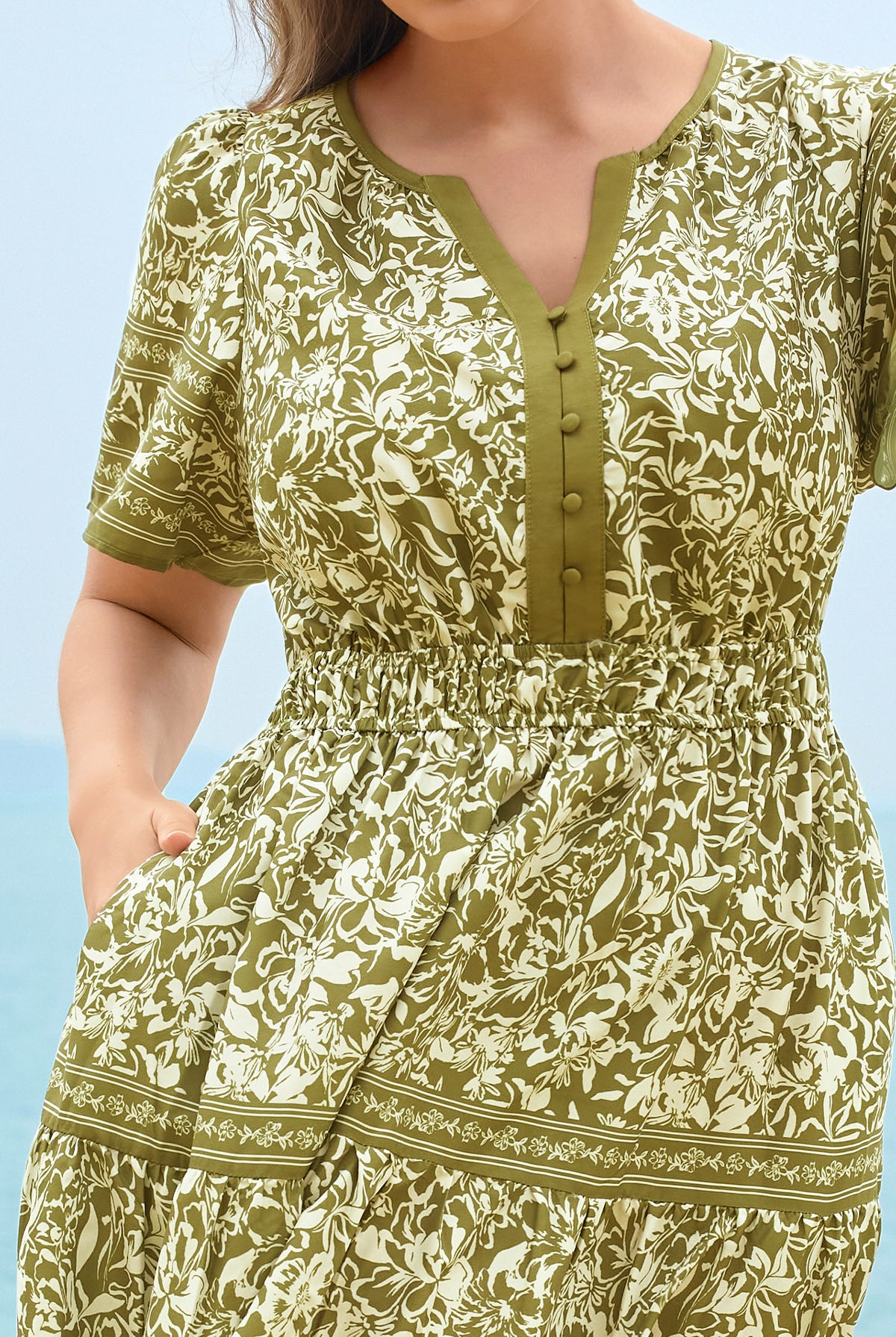 Ritera Pockets Floral Print Beach Summer Vibes Midi Dress