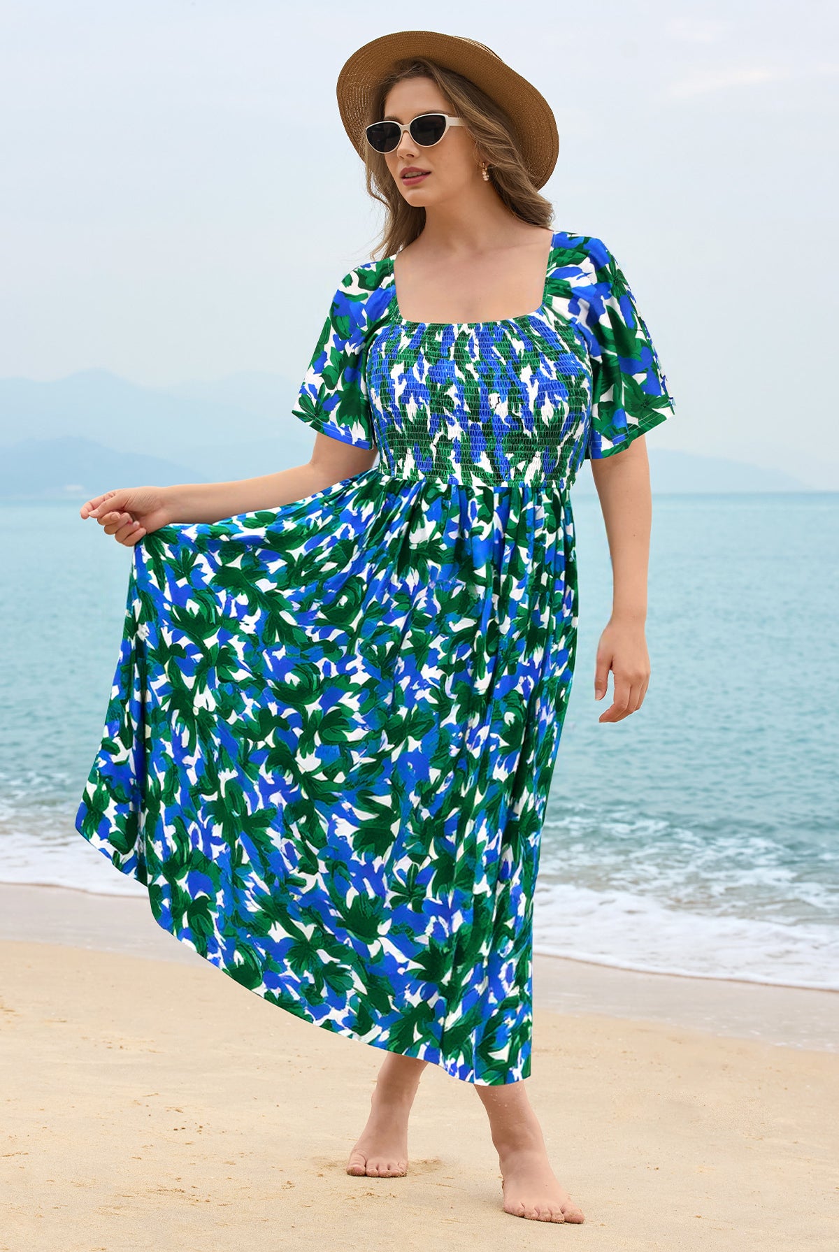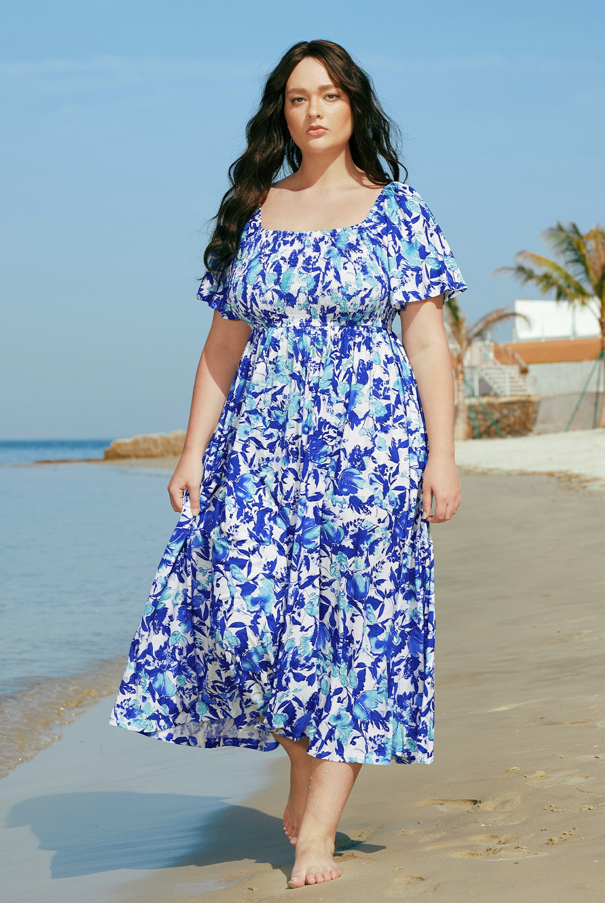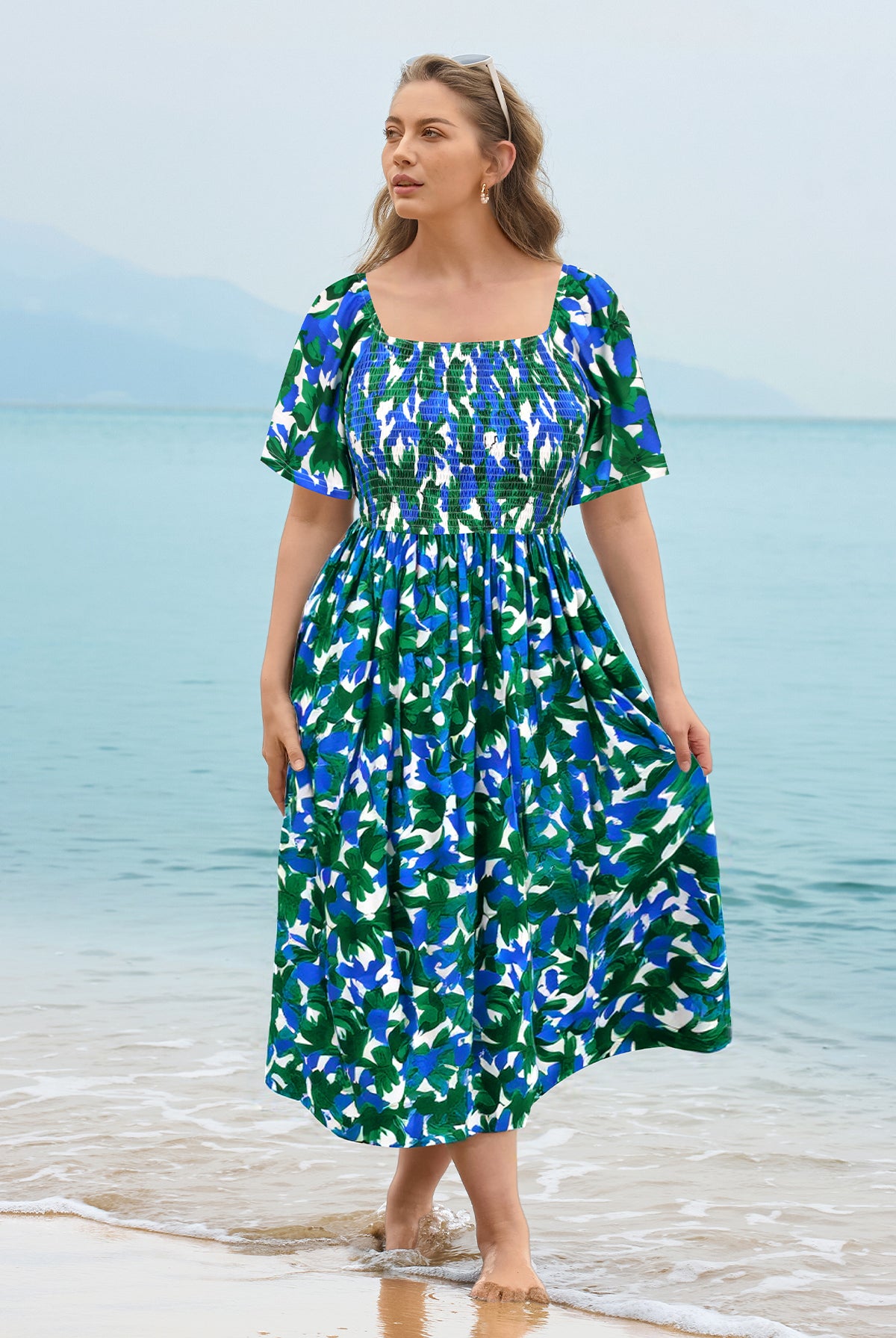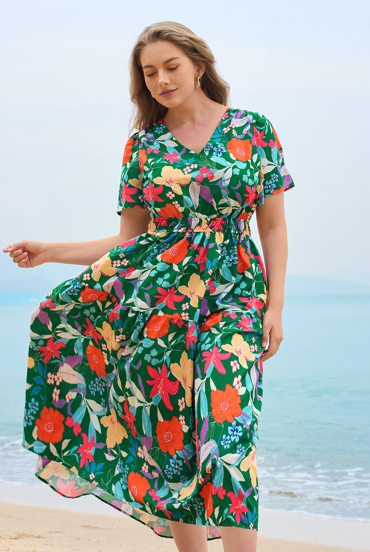 Ritera Pockets Floral Print Beach Summer Vibes Midi Dress