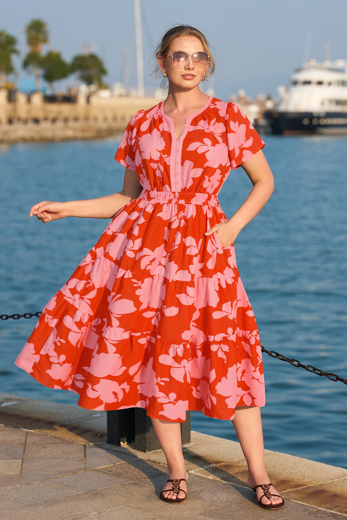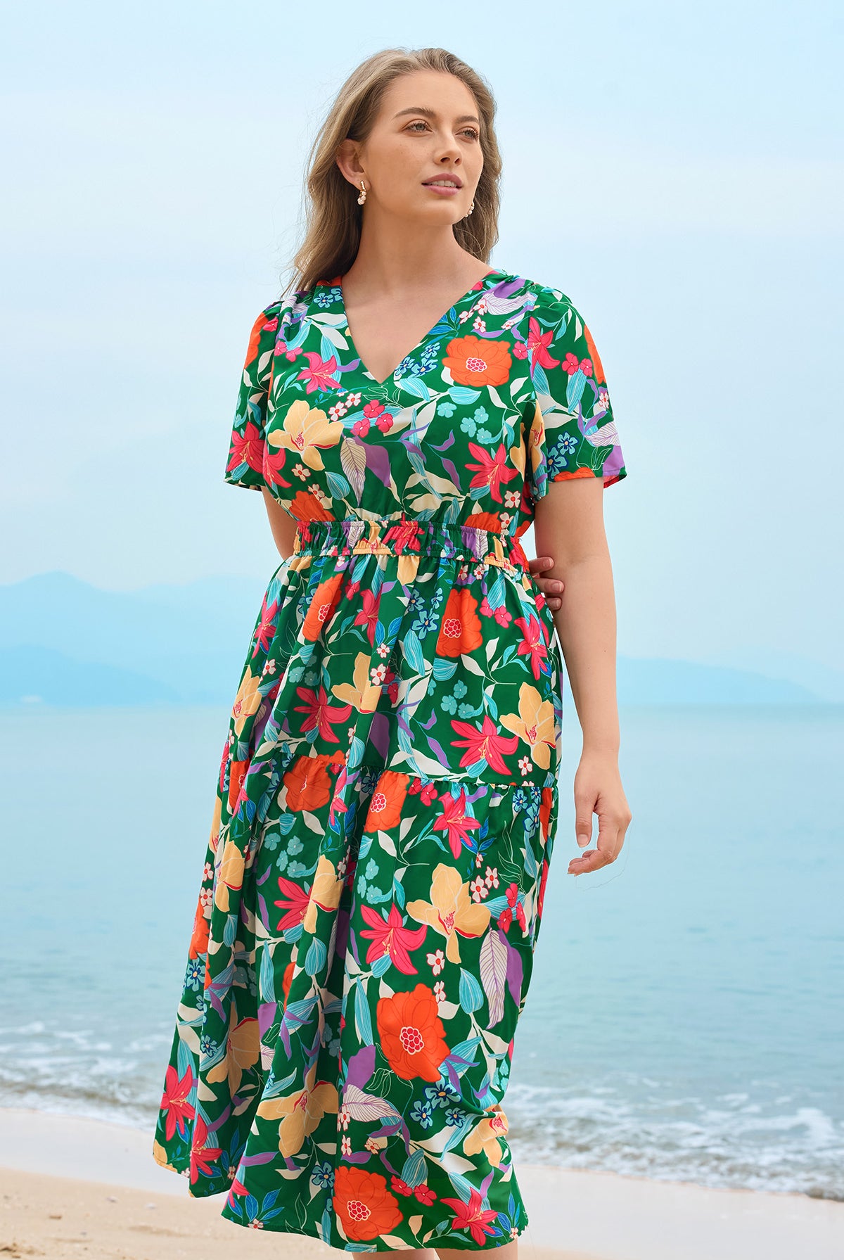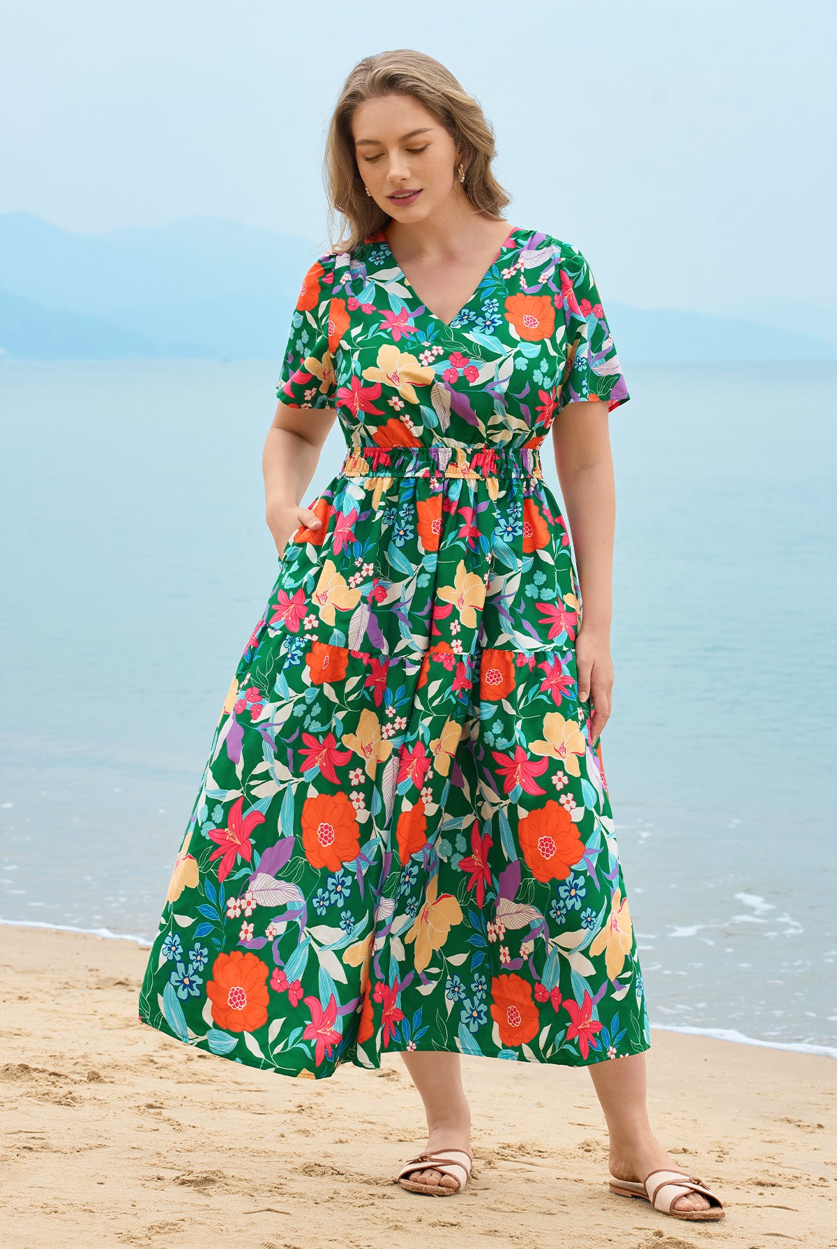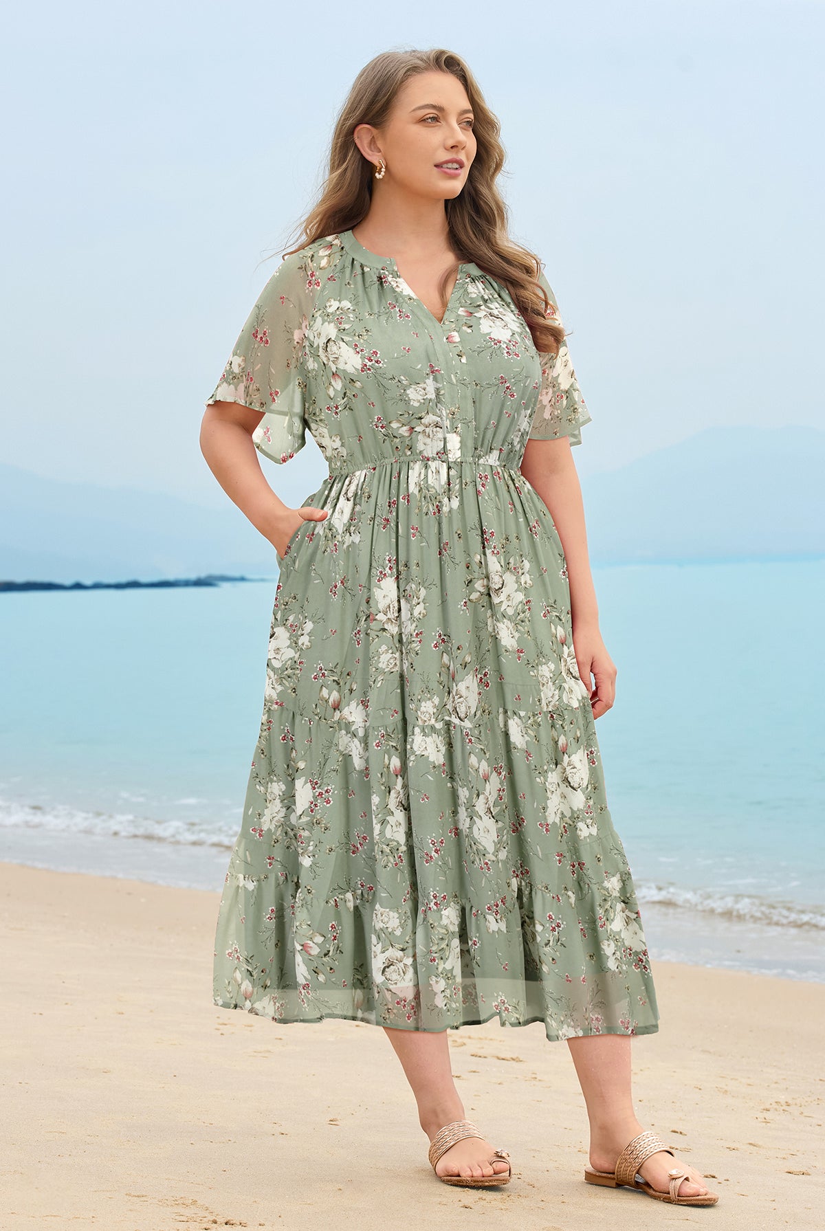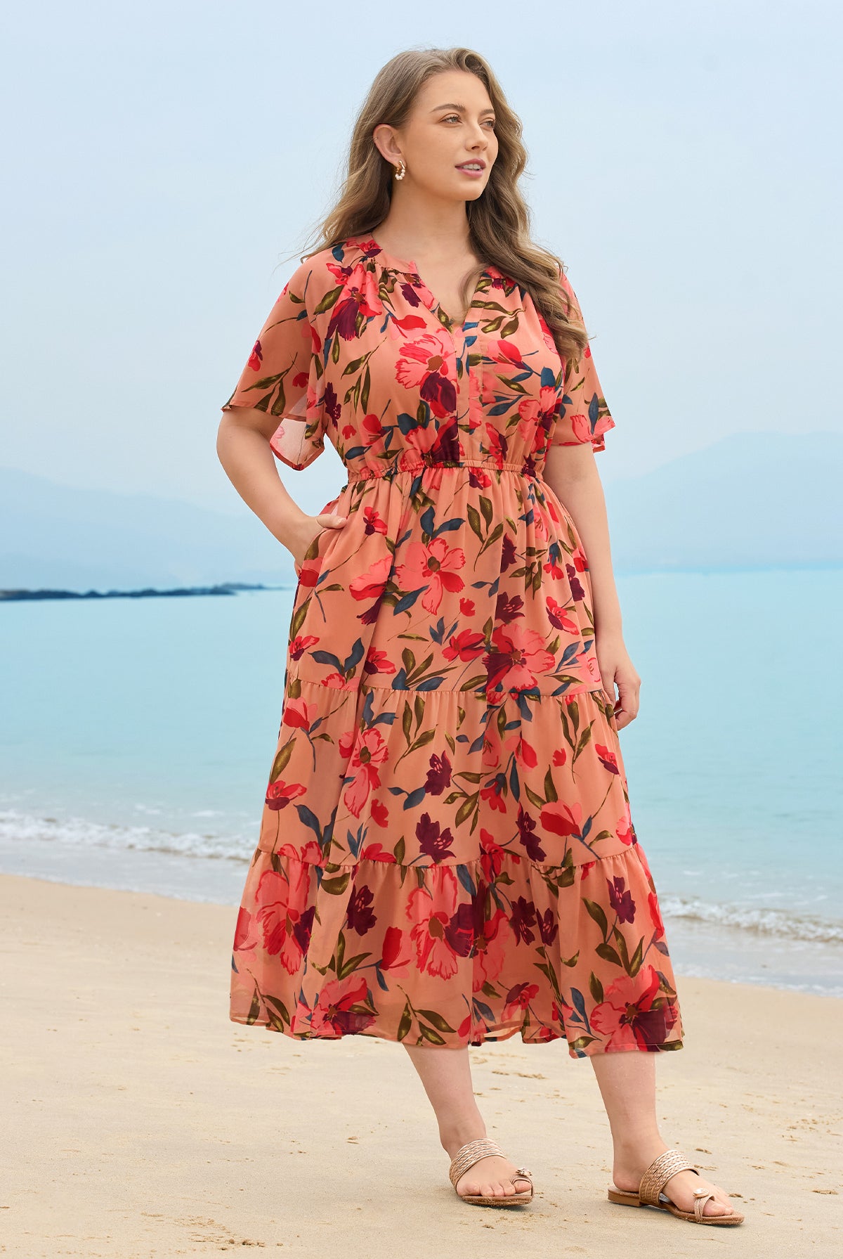 Ritera Pockets Floral Print Beach Summer Vibes Midi Dress
