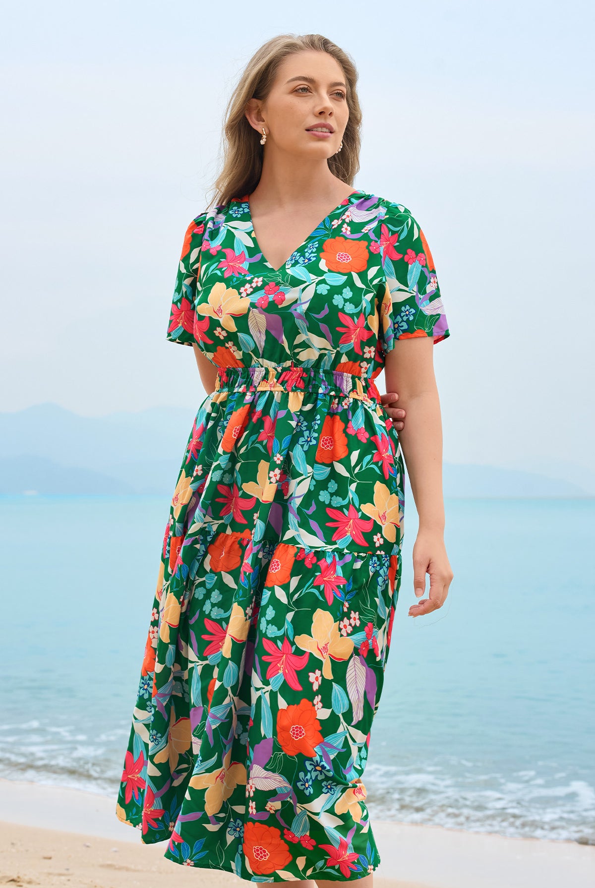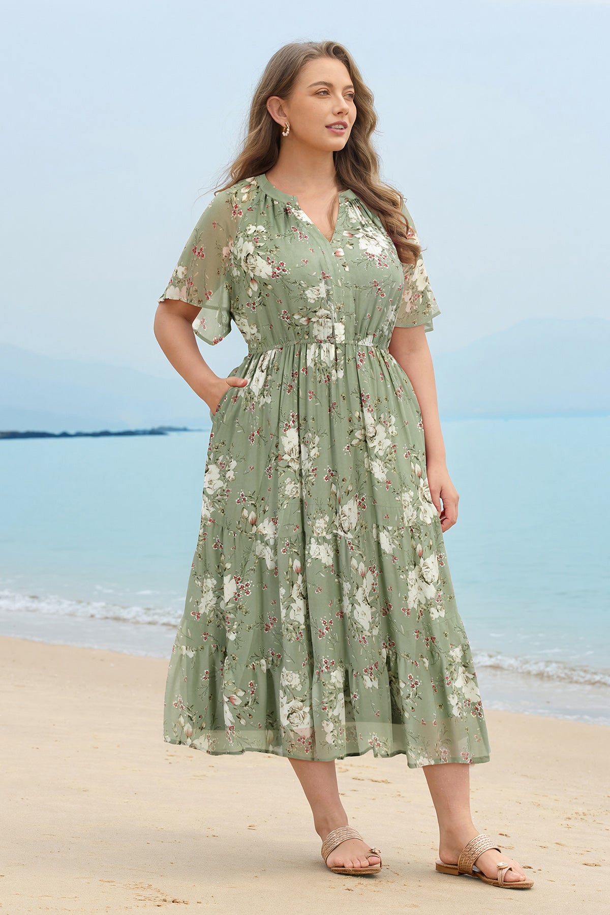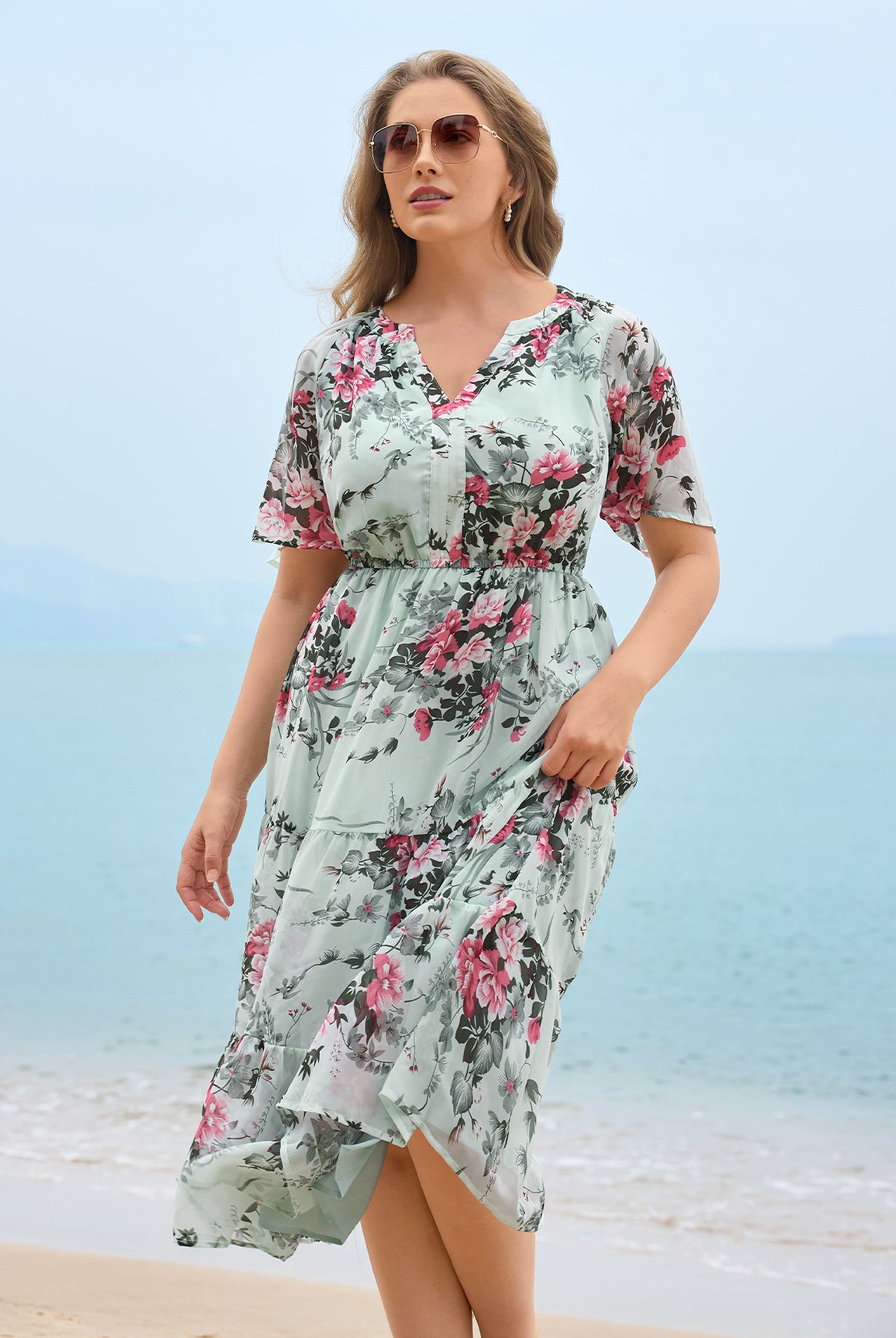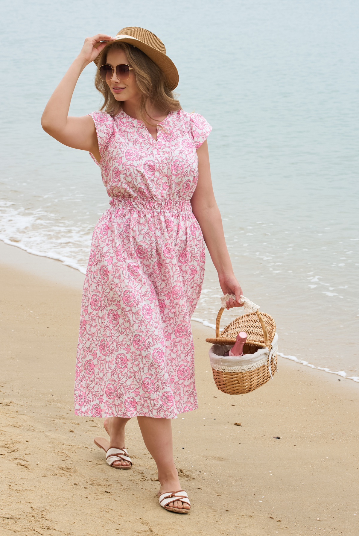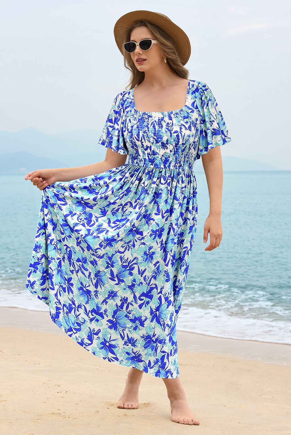 Ritera Pockets Floral Print Beach Summer Vibes Midi Dress