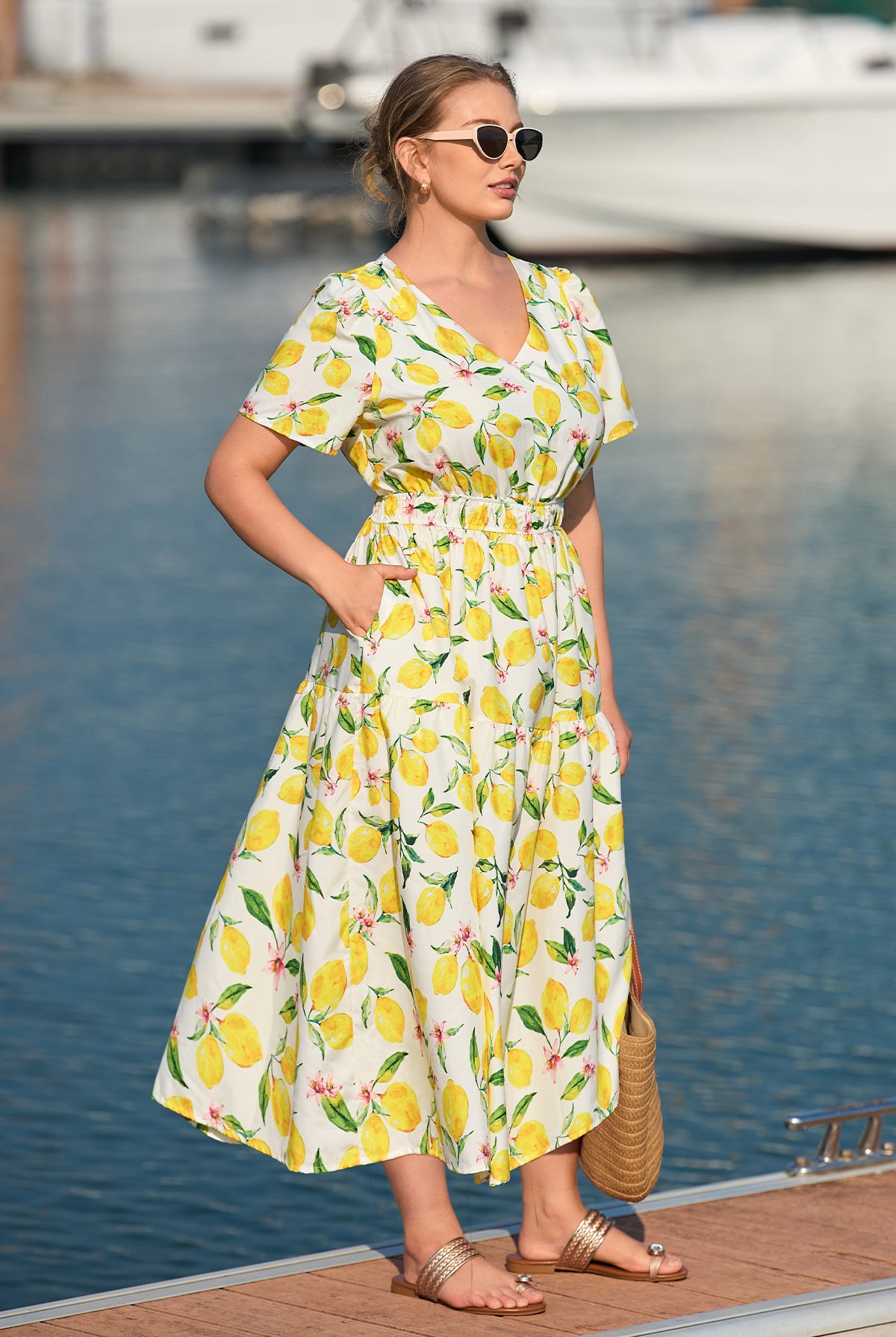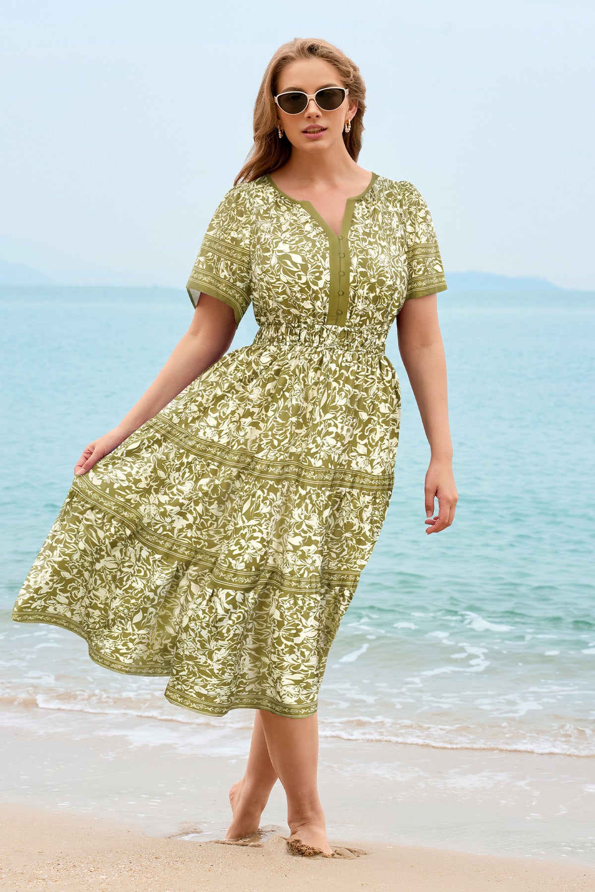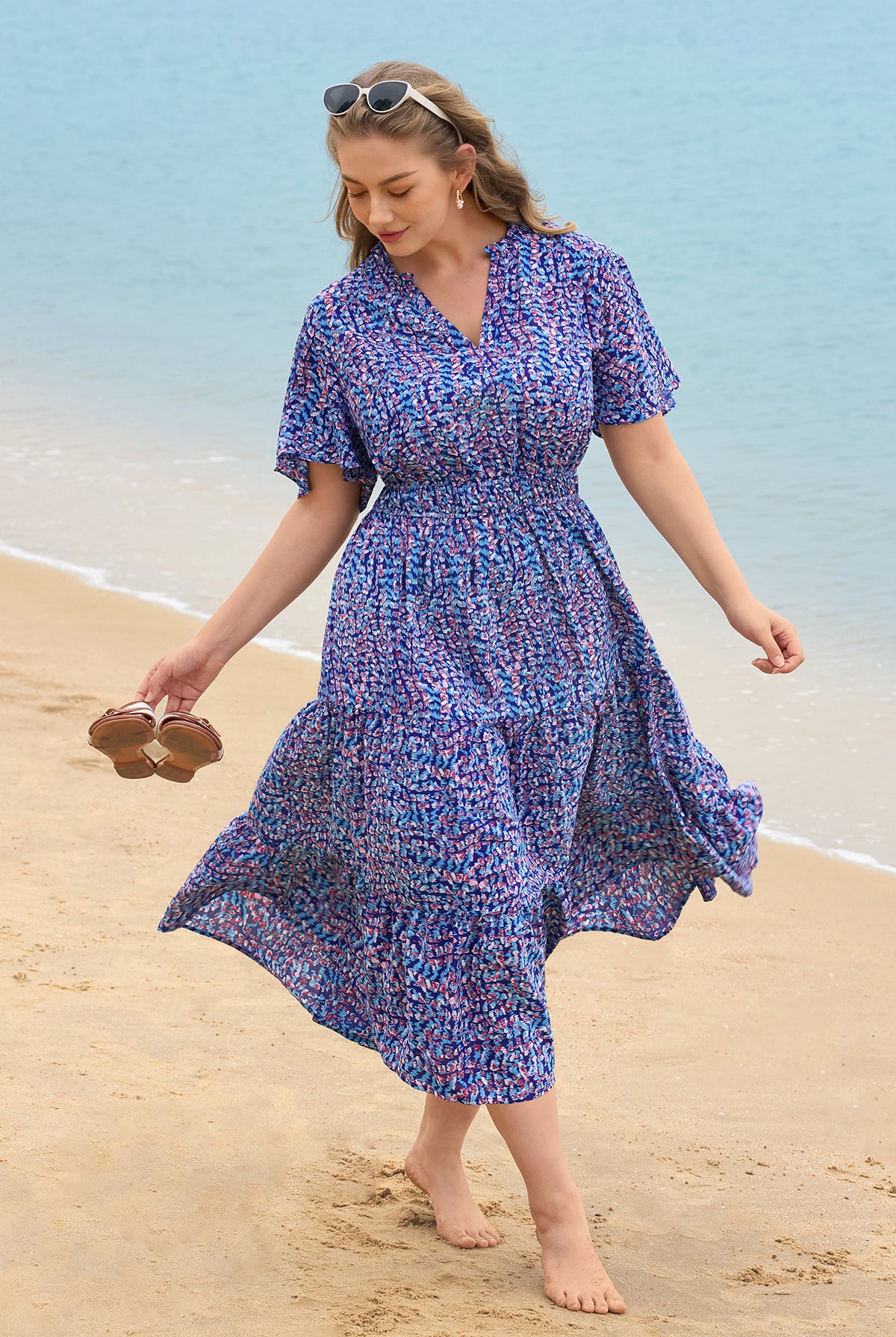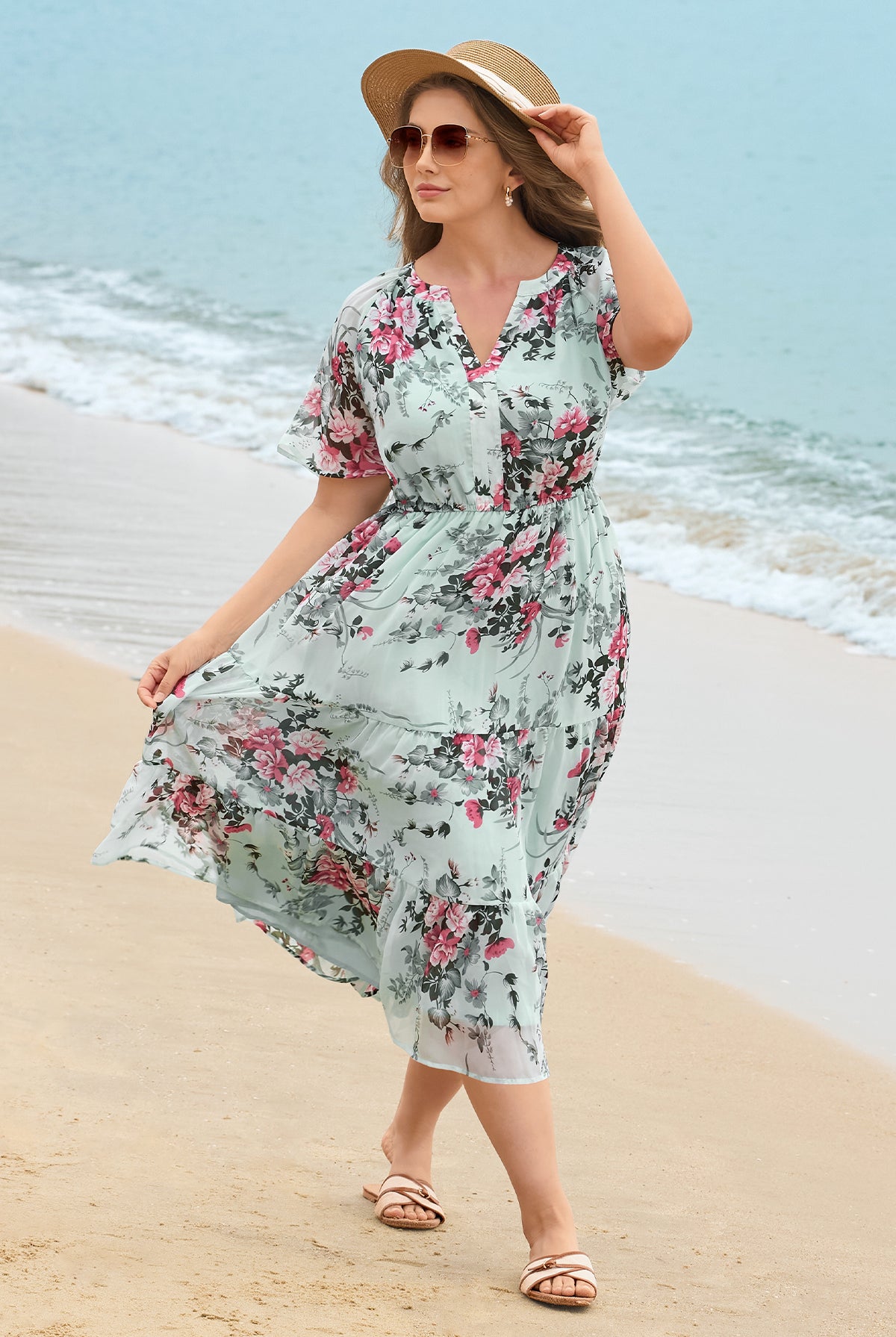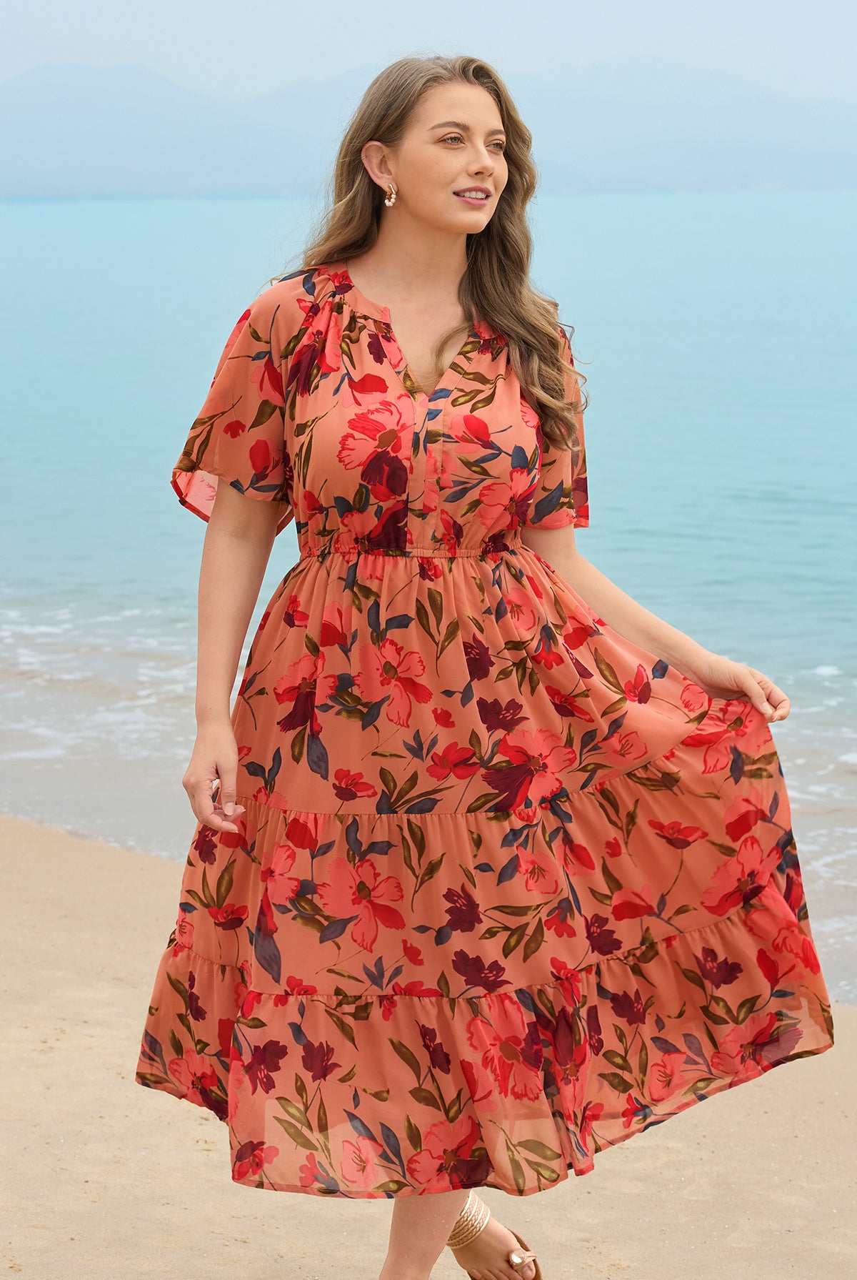 Ritera Pockets Floral Print Beach Summer Vibes Midi Dress