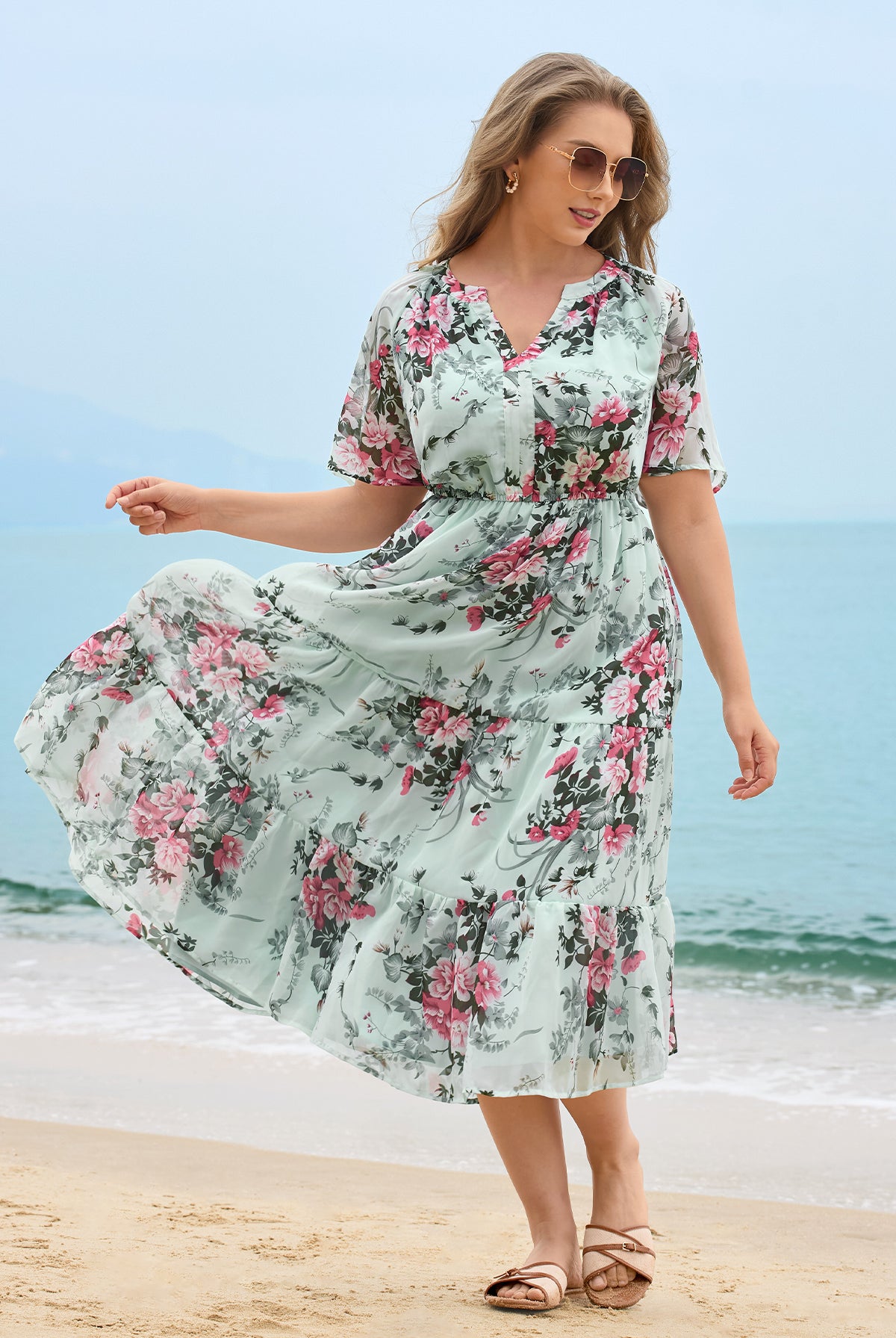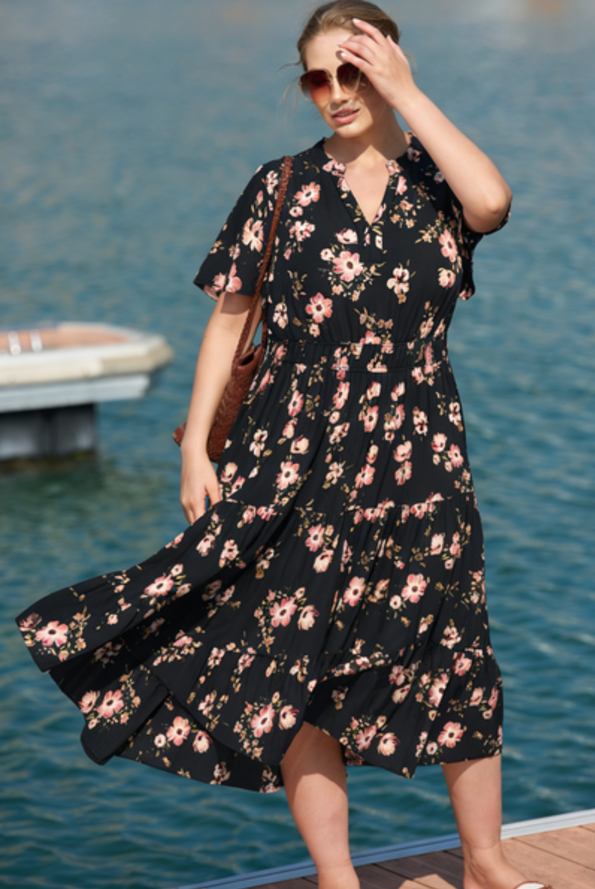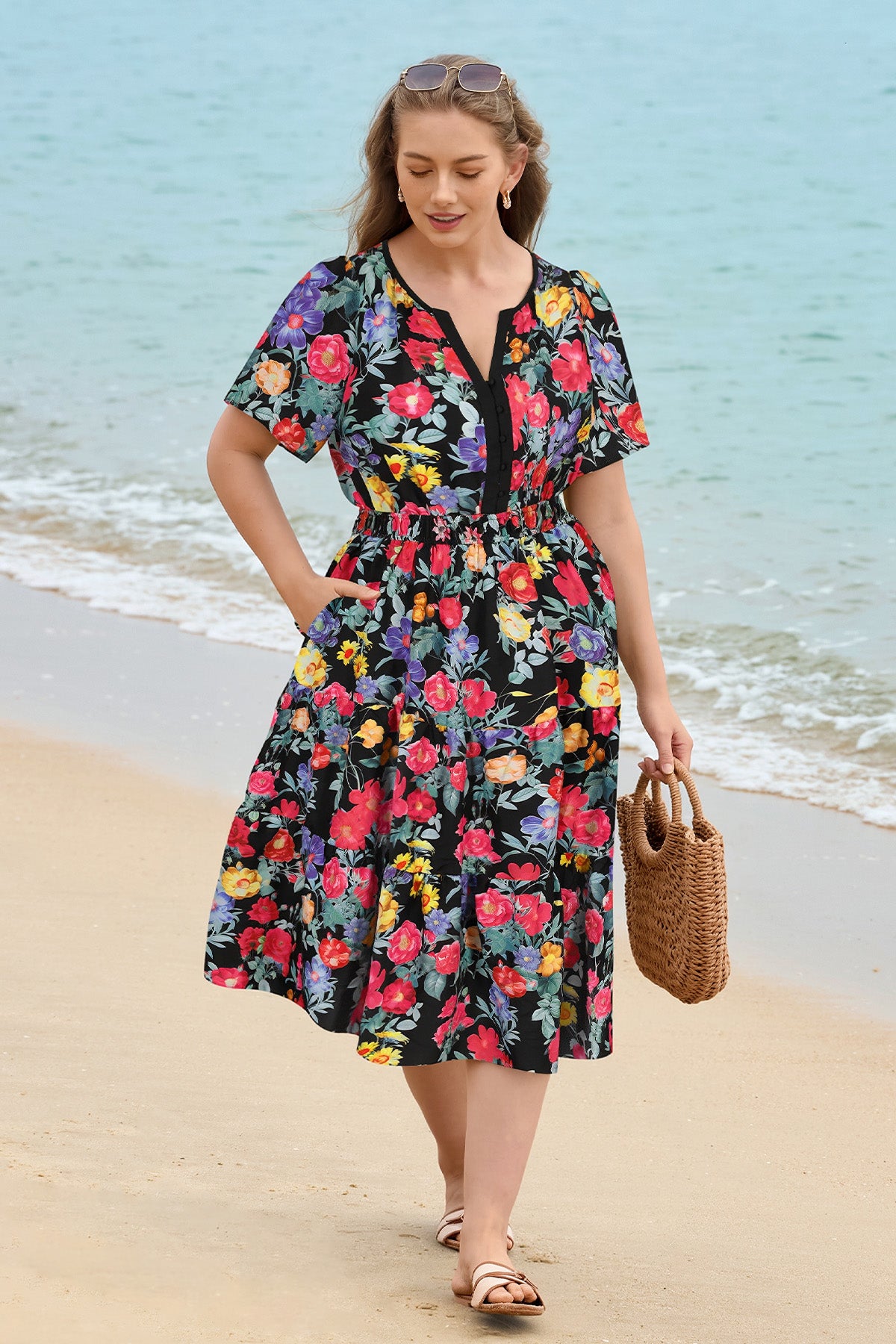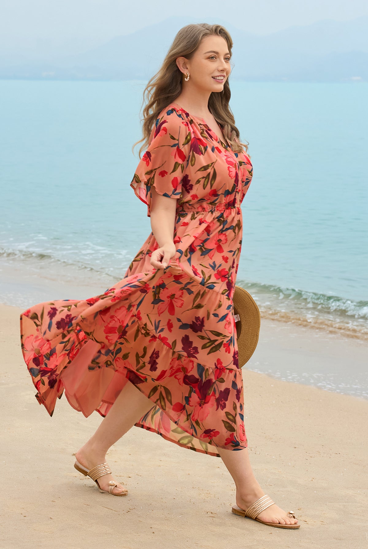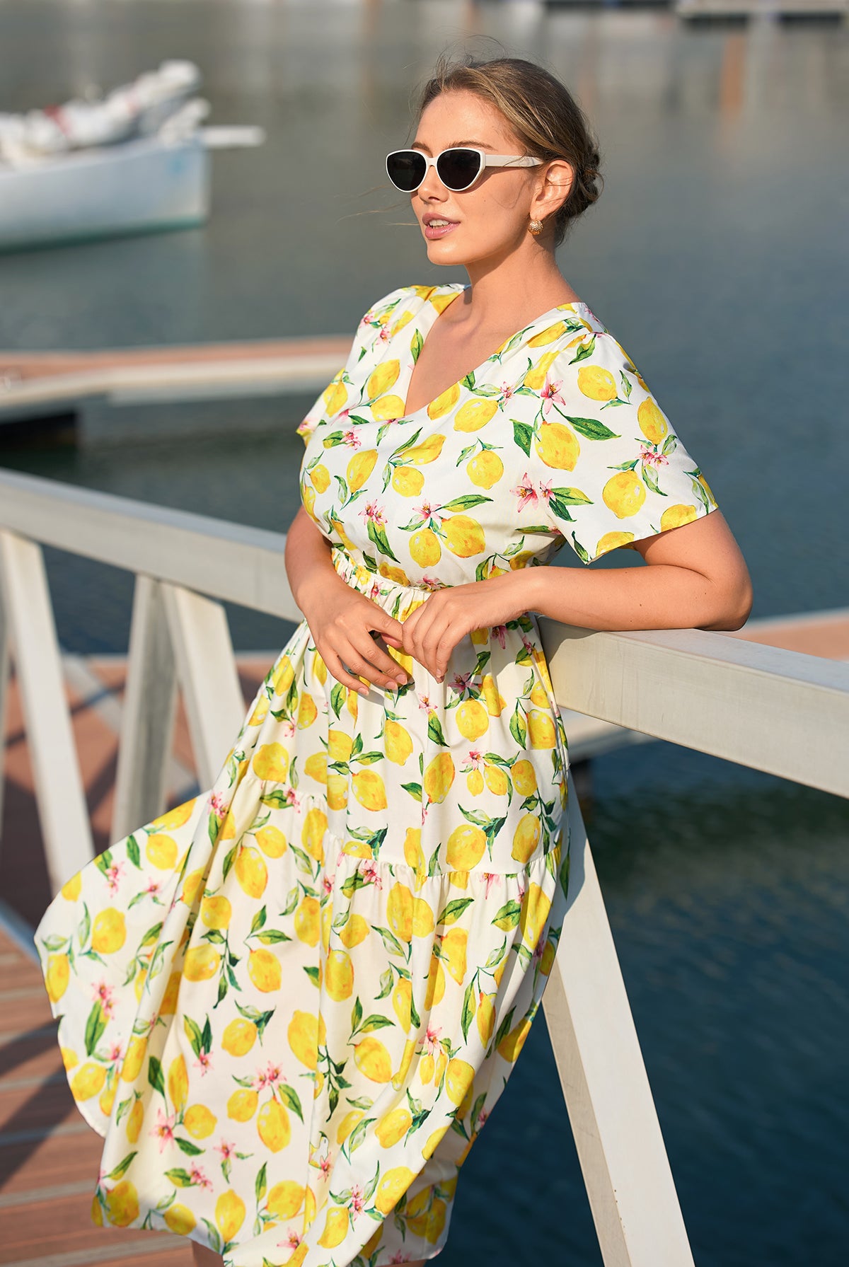 Ritera Pockets Floral Print Beach Summer Vibes Midi Dress