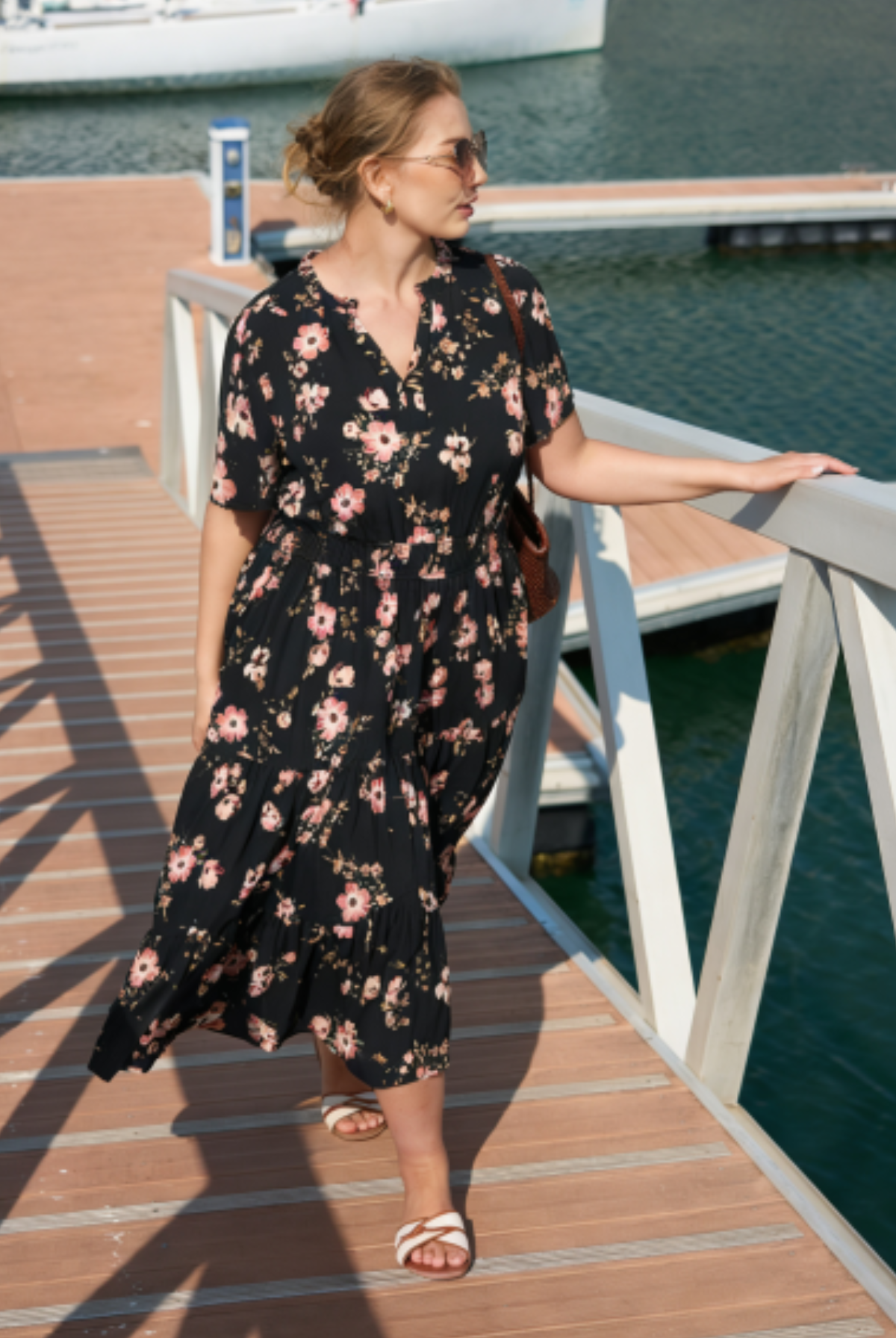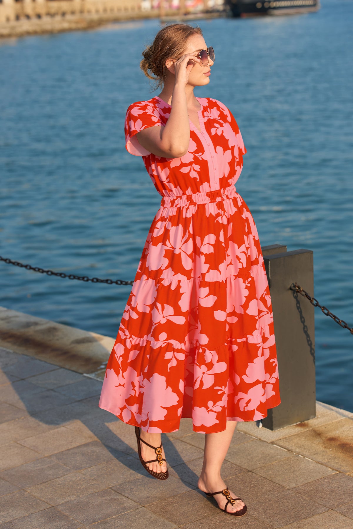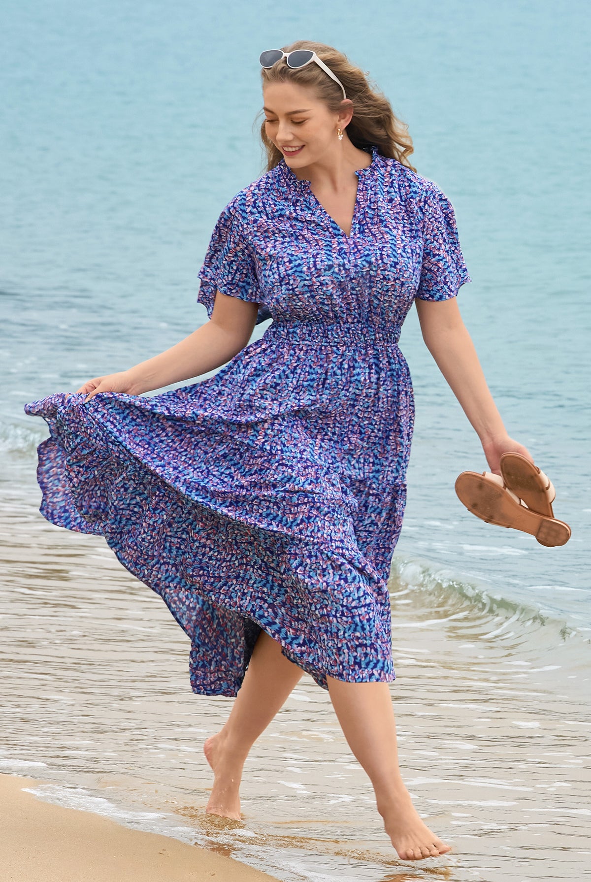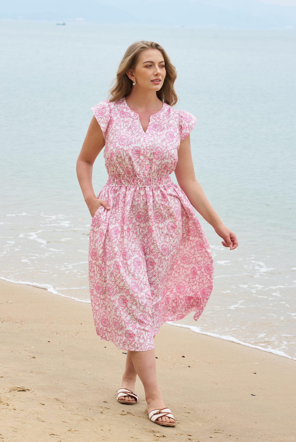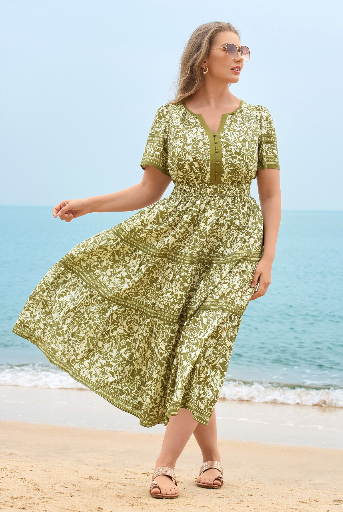 Ritera Pockets Floral Print Beach Summer Vibes Midi Dress