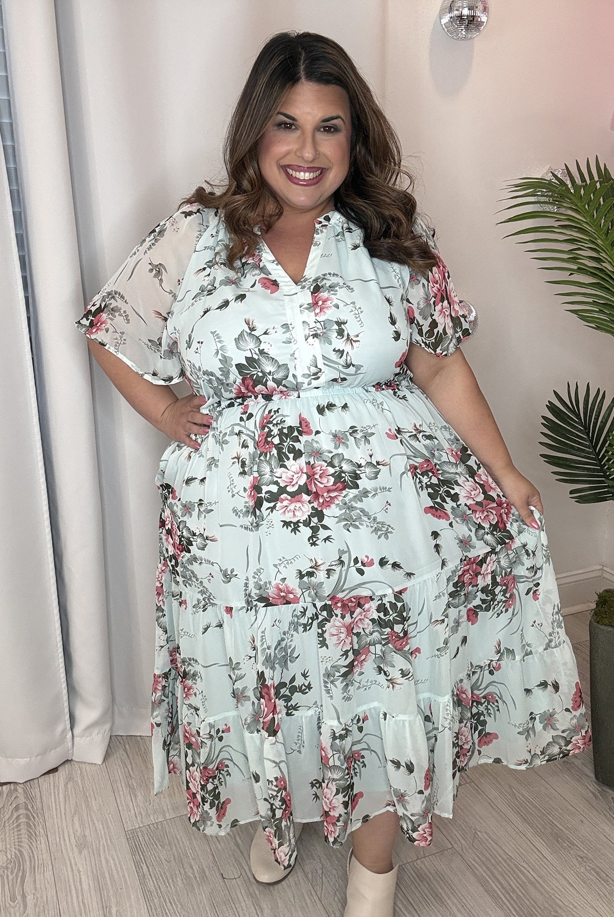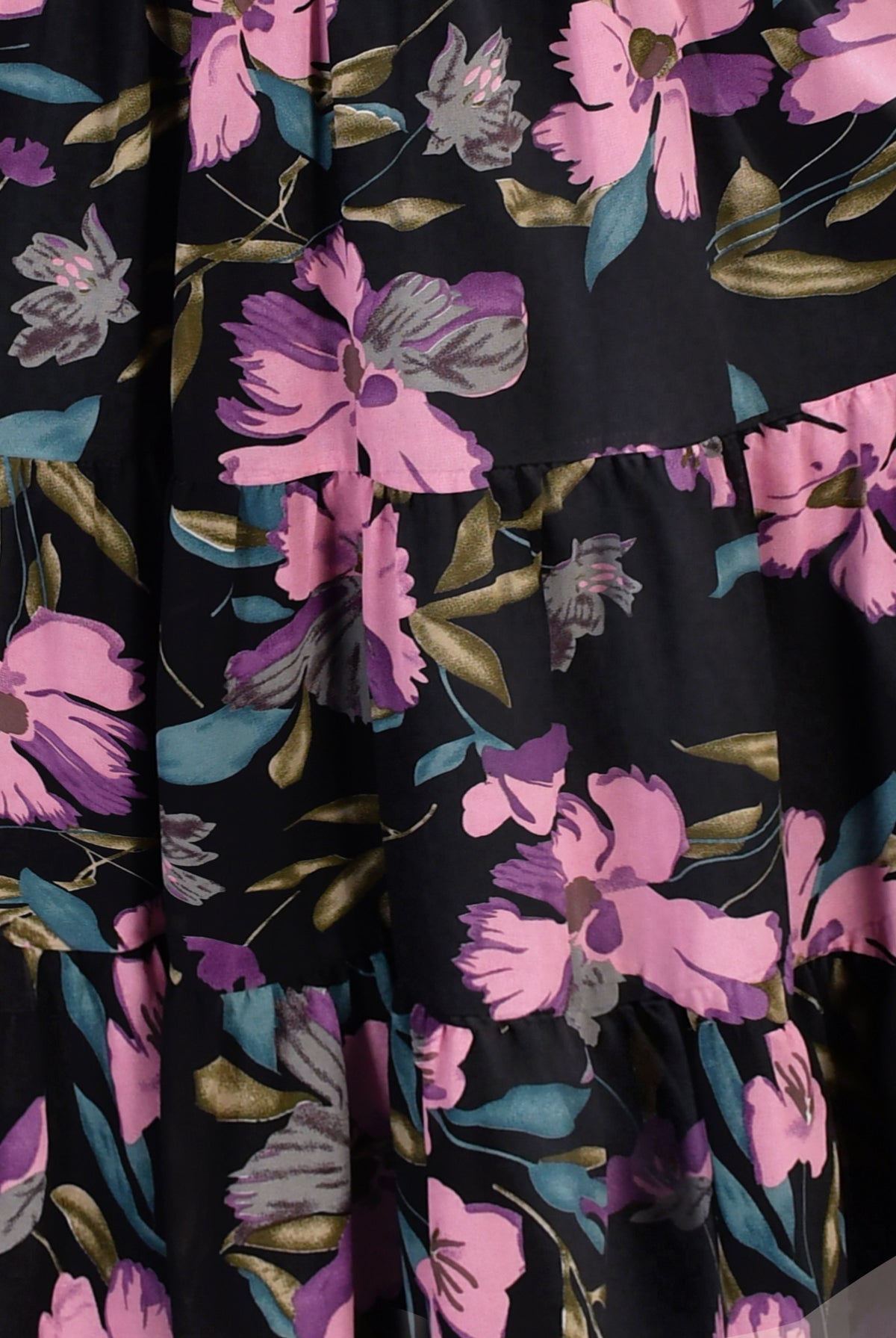 Floral Ruffled Short Sleeve Tiered Midi Dress