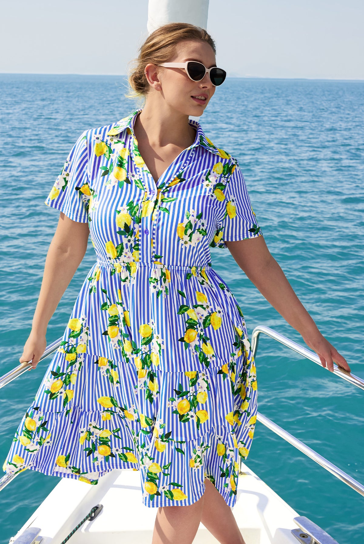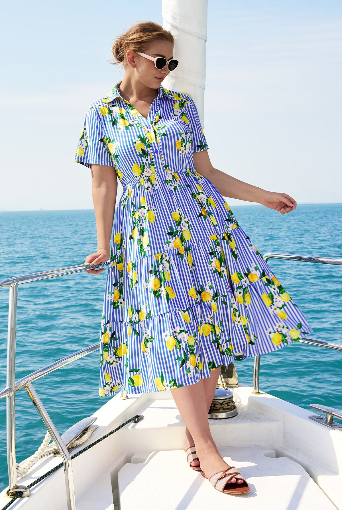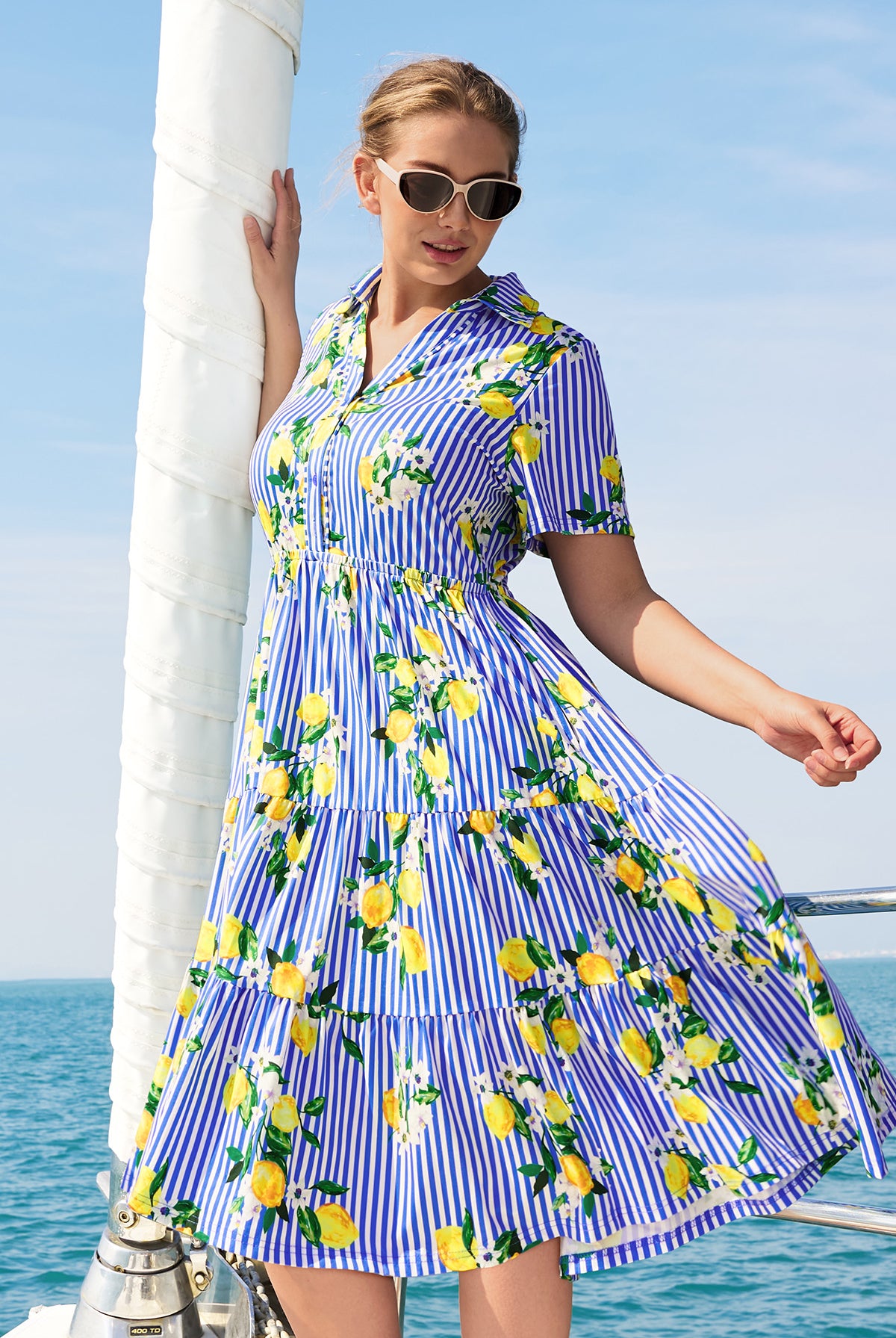 Ritera Pockets Button Up Floral Polo Neck Tiered Midi Dress