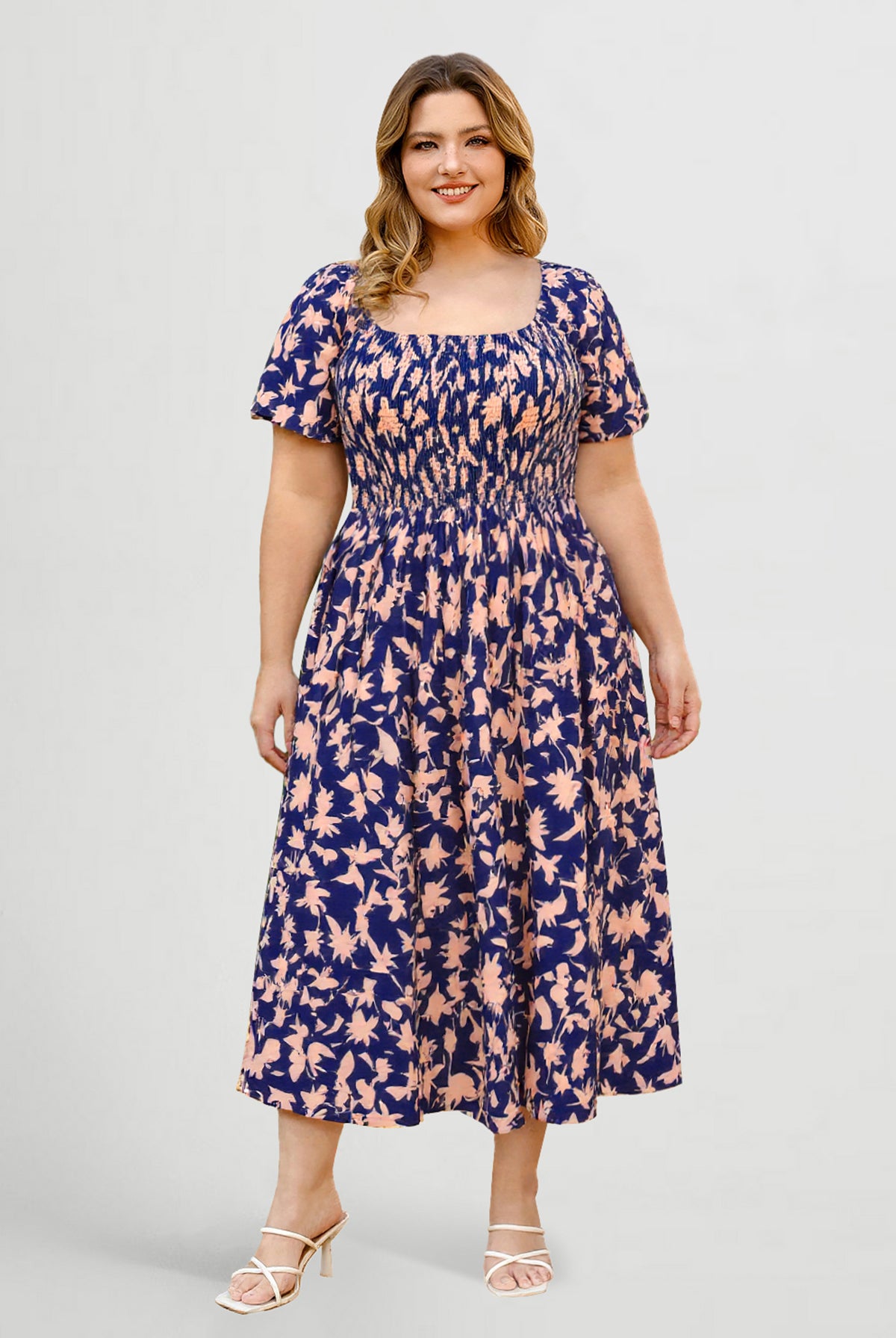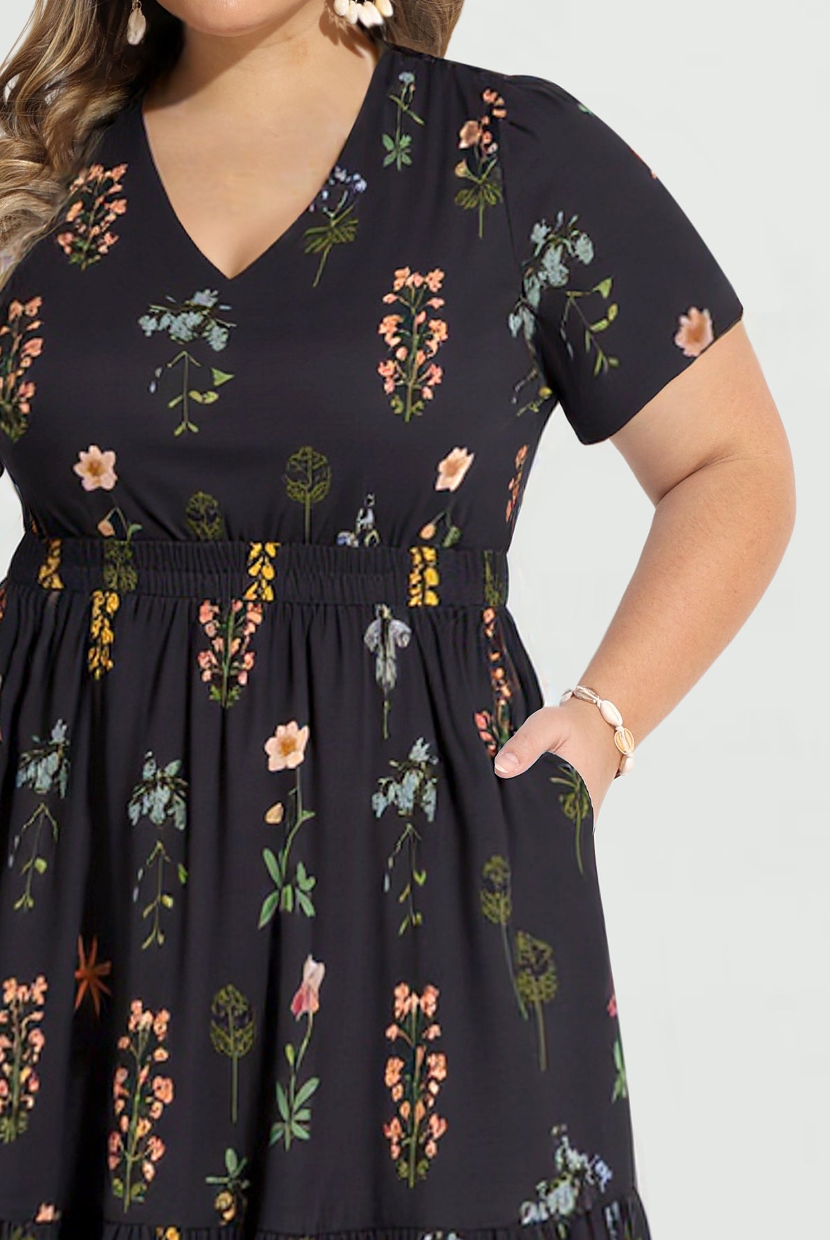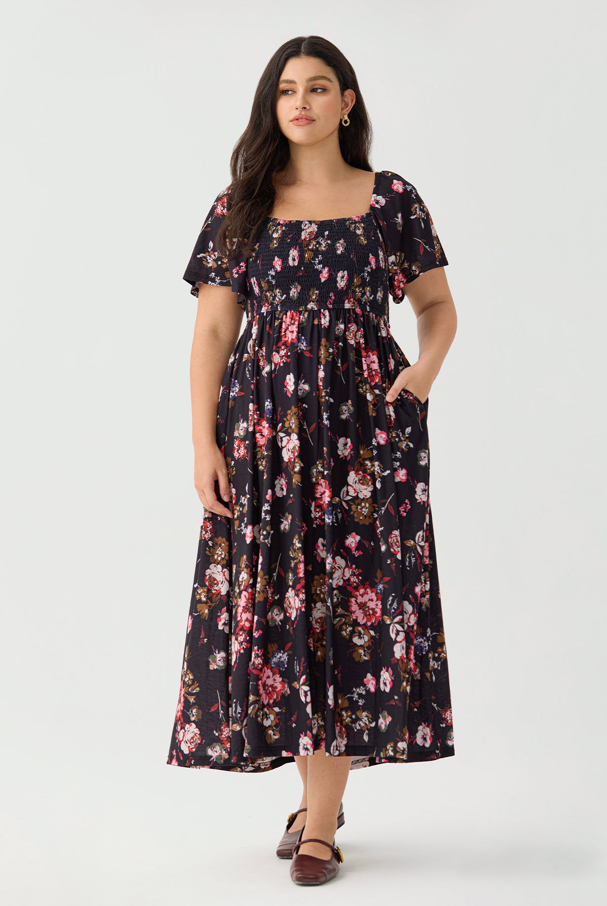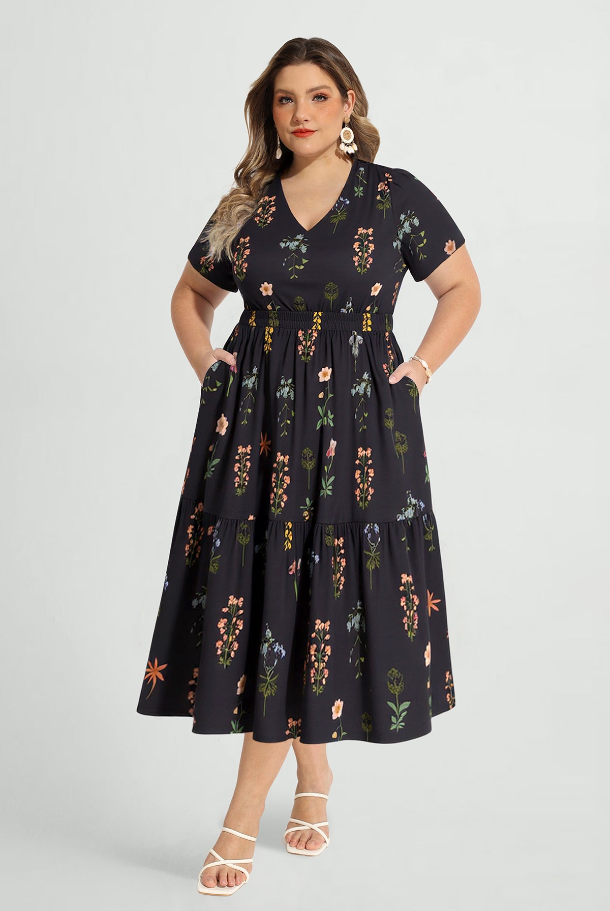 Ritera Pockets Elastic Waist Floral A-line Midi Dress