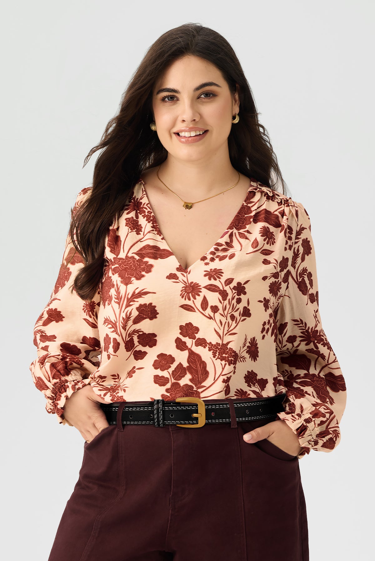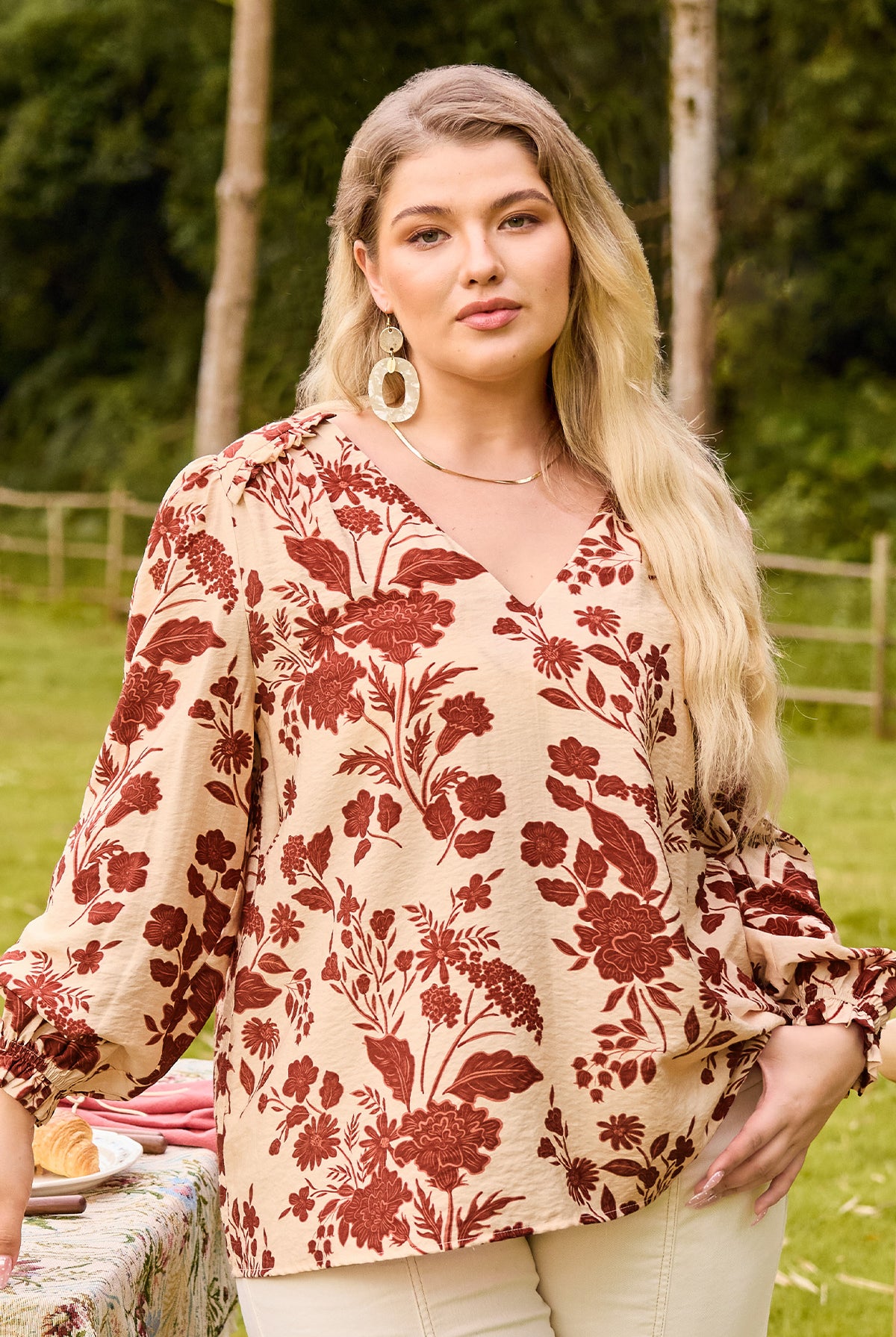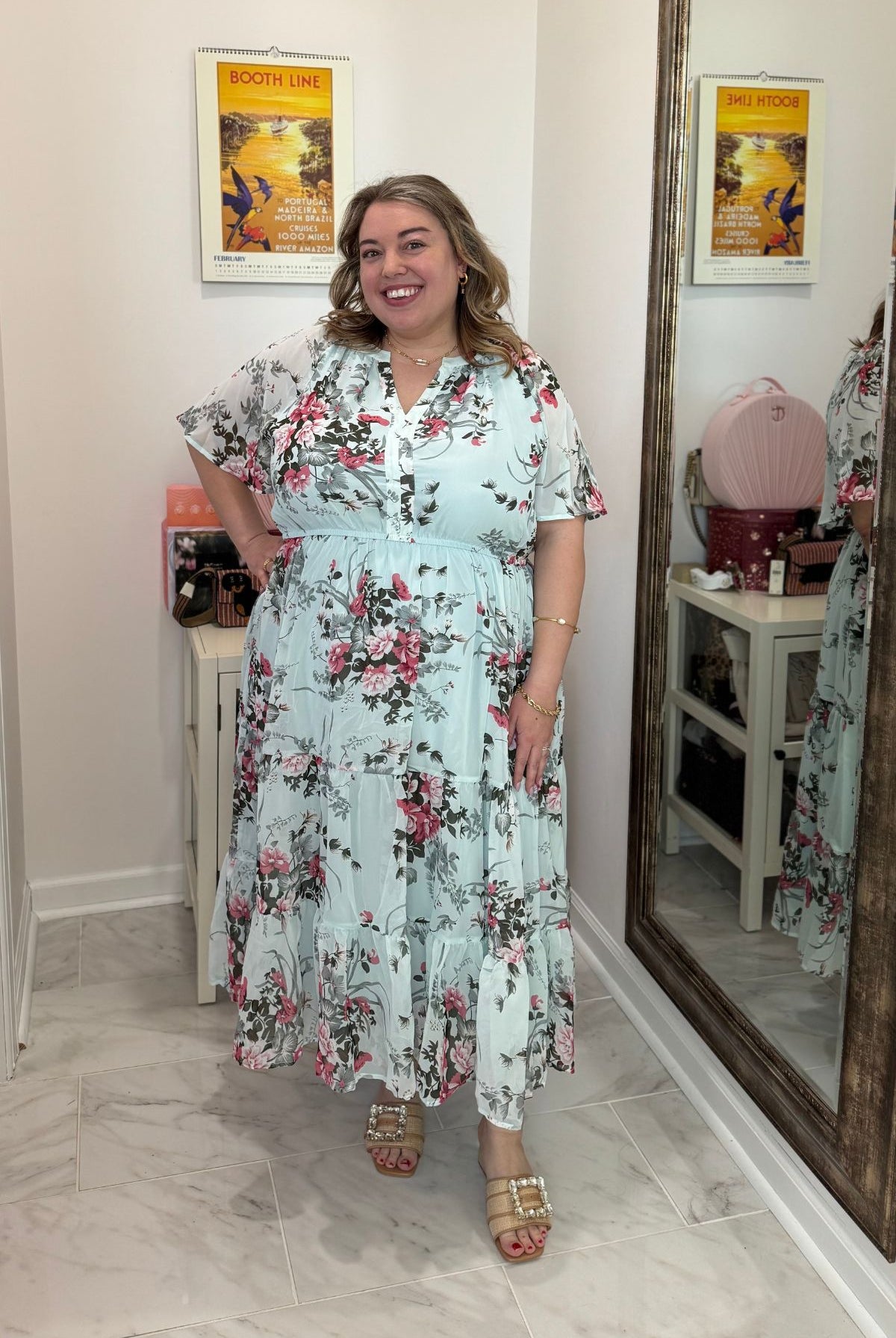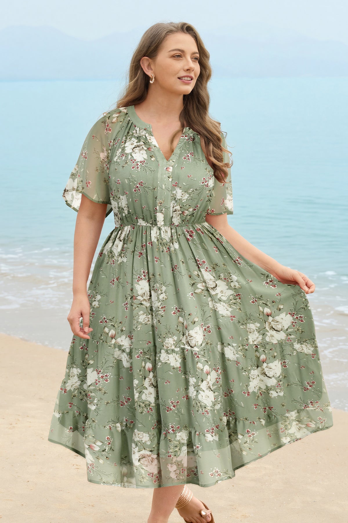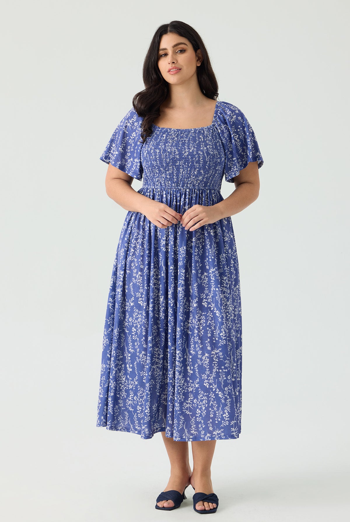 Pocket Floral Print Ruffle Sleeve Midi Dress