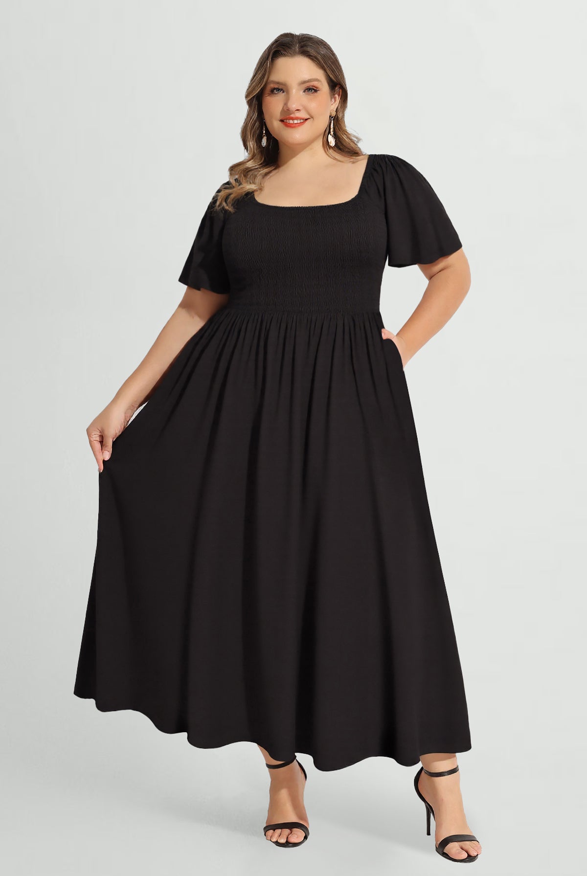 Ritera Pockets Elasticated Waist Tiered Casual Chic Midi Dress