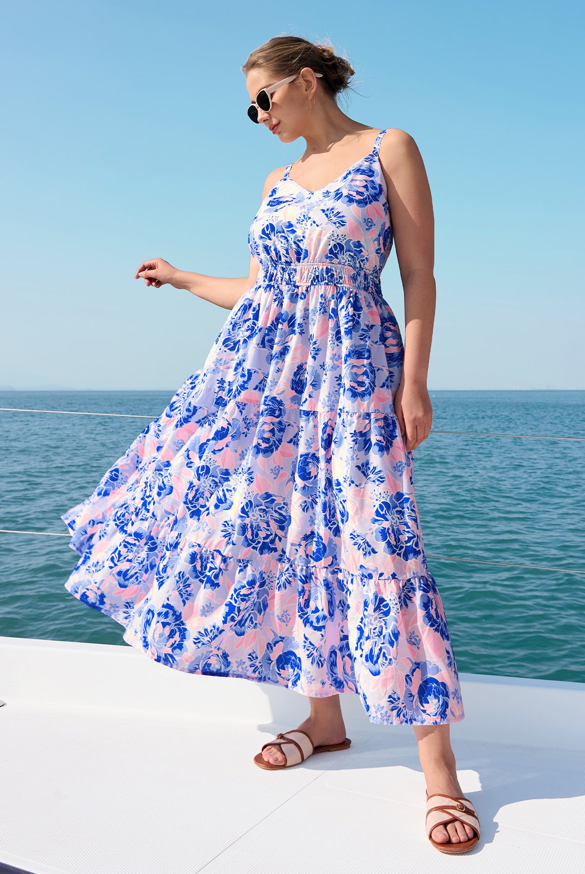 Ritera Pockets Elasticated Waist Floral A-line Maxi Dress