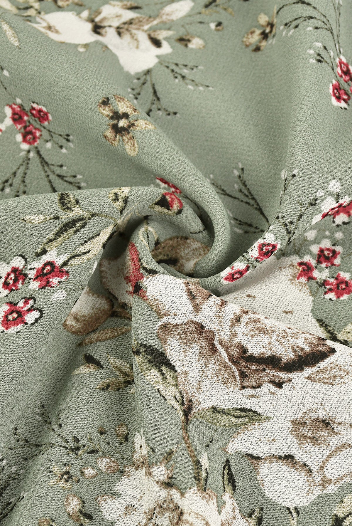 Pockets Floral Tiered Ruched Shirt Collar Midi Dress