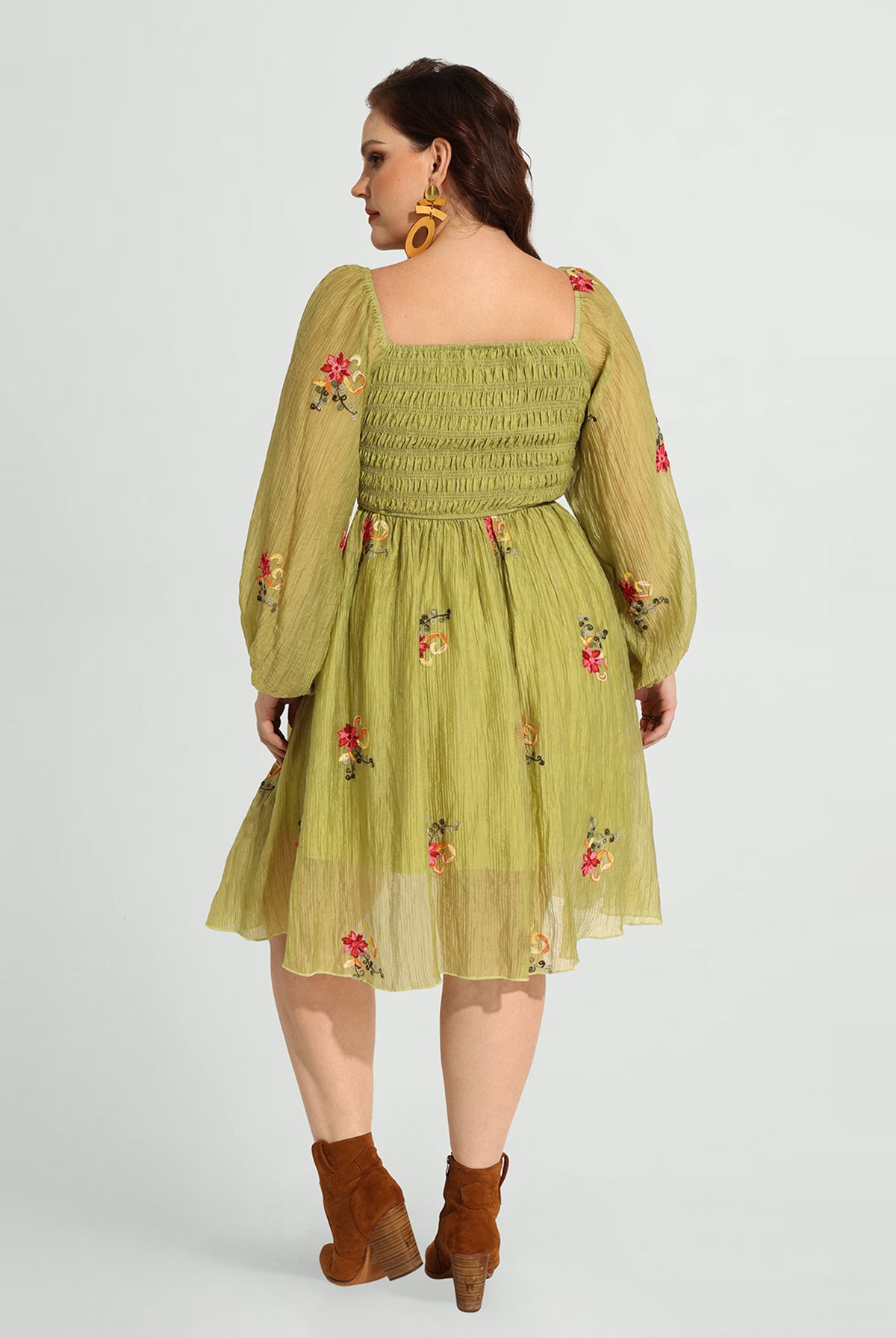 Tropical Floral Ruffled Square Neck Midi Dress