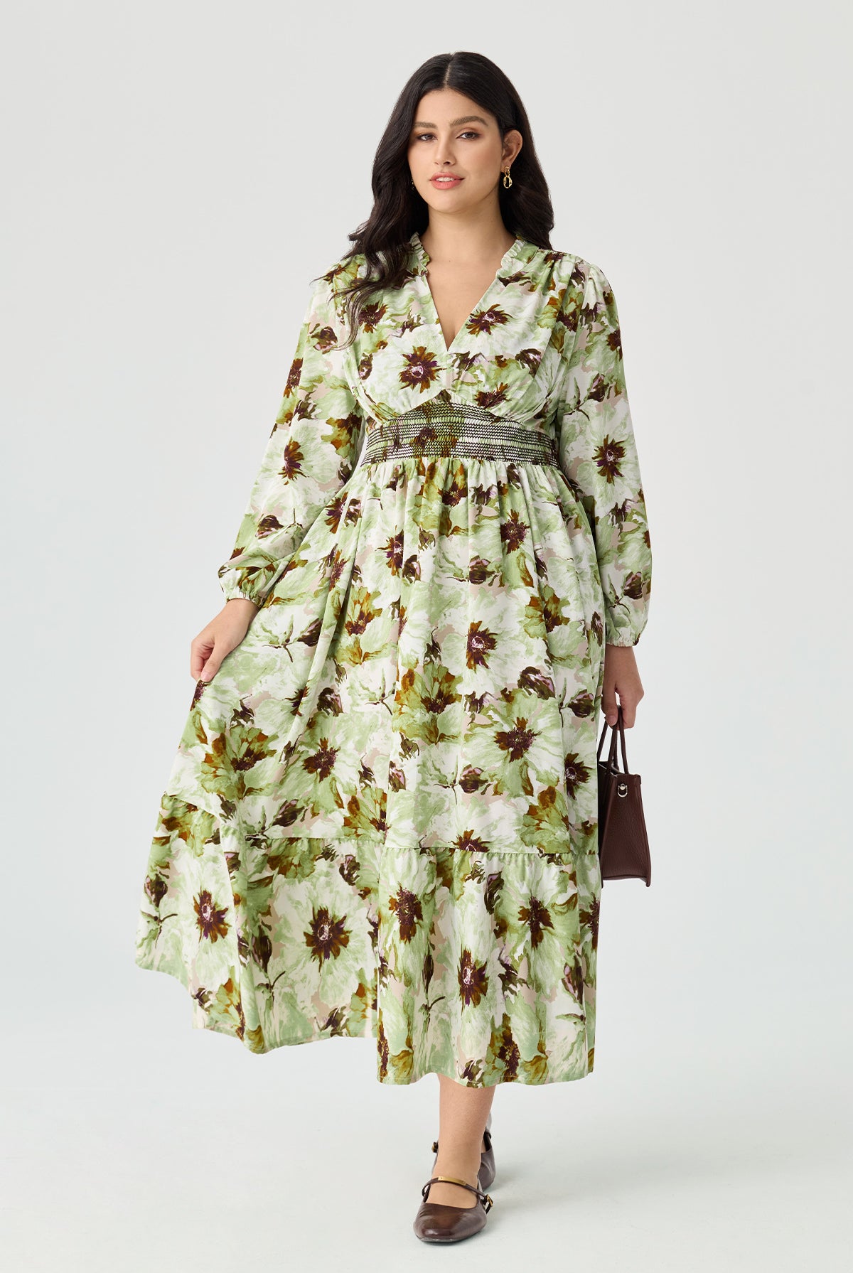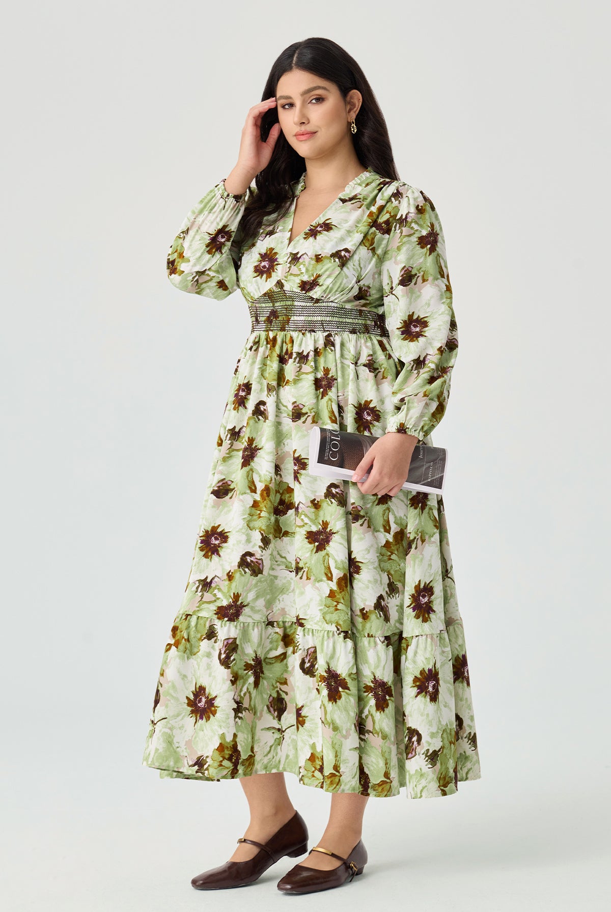 Floral Print Smocked Waist Midi Dress