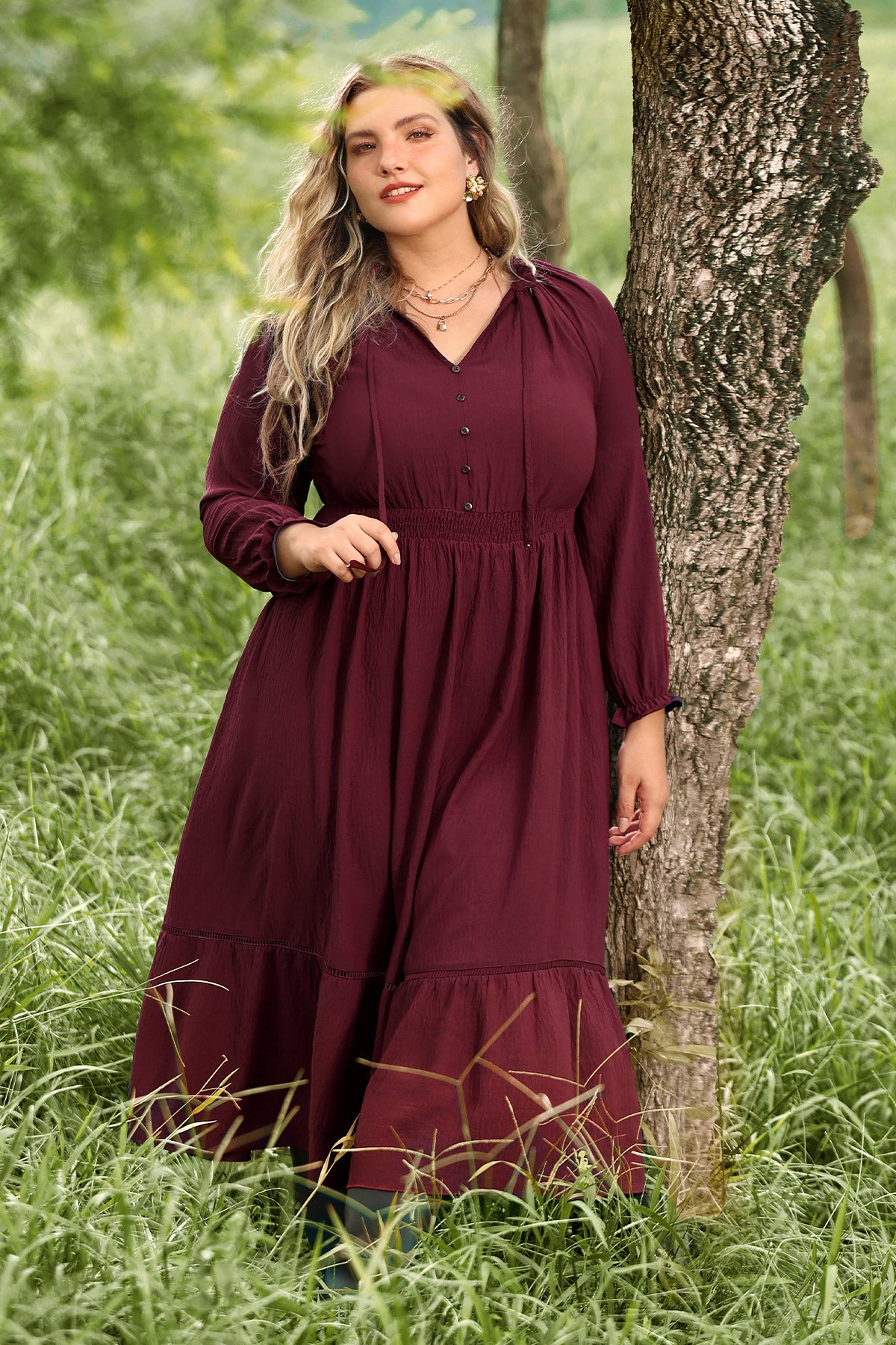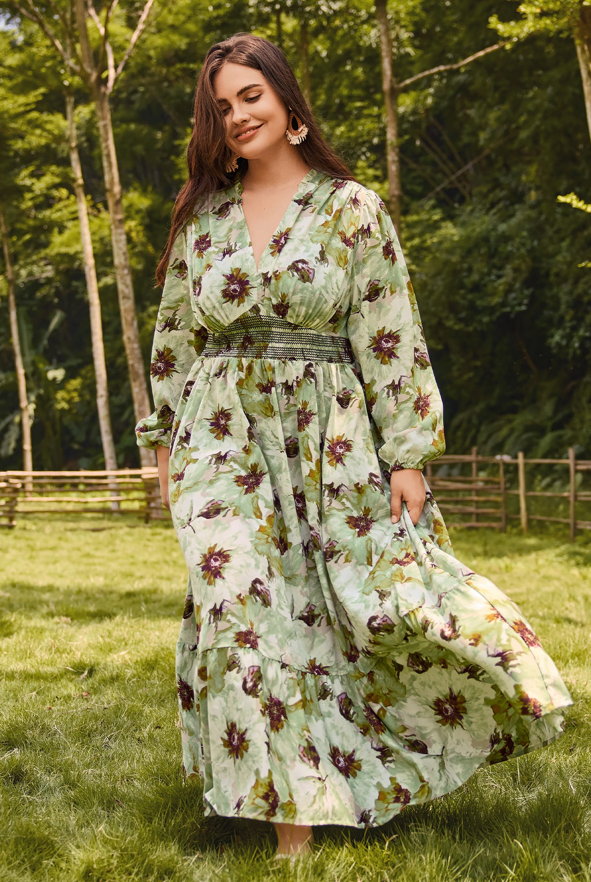 Bohe Smocked Waist Tiered Midi Dress
