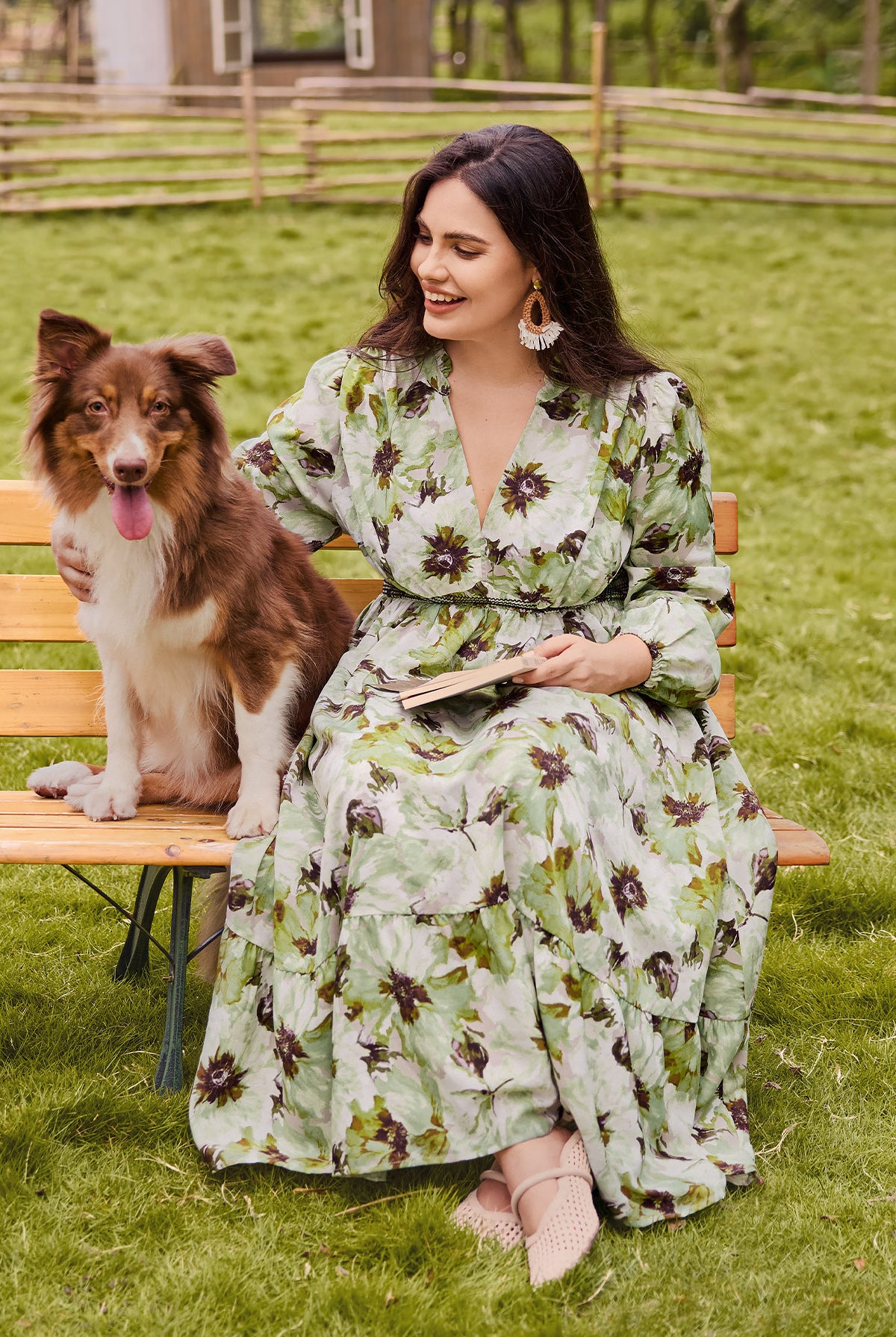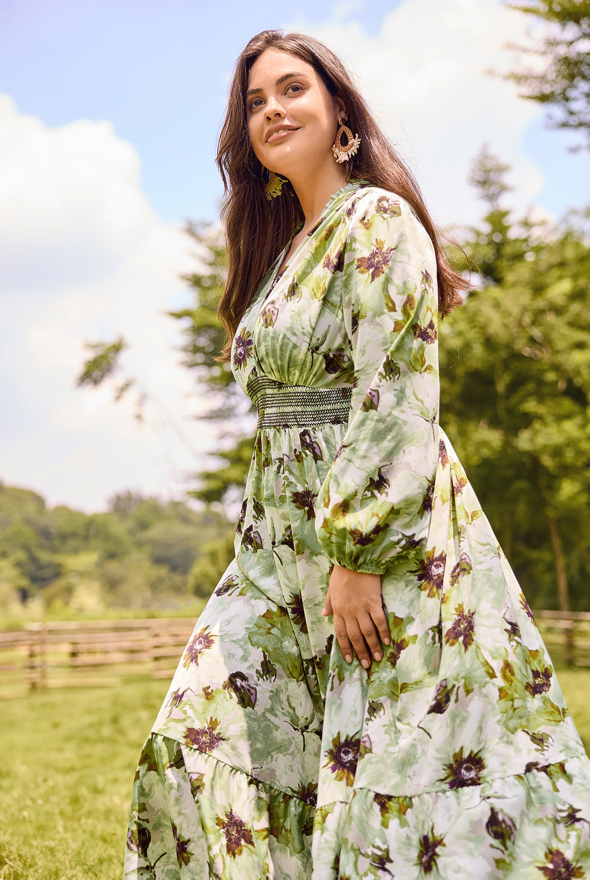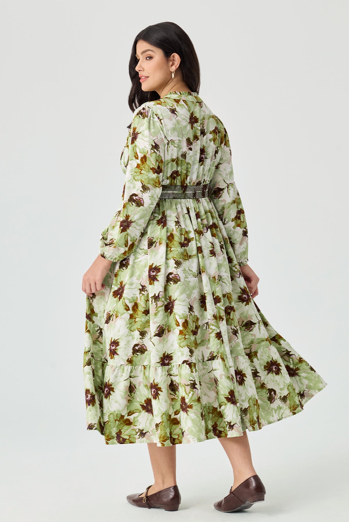 Floral Ruffled Sleeve Tiered Midi Dress