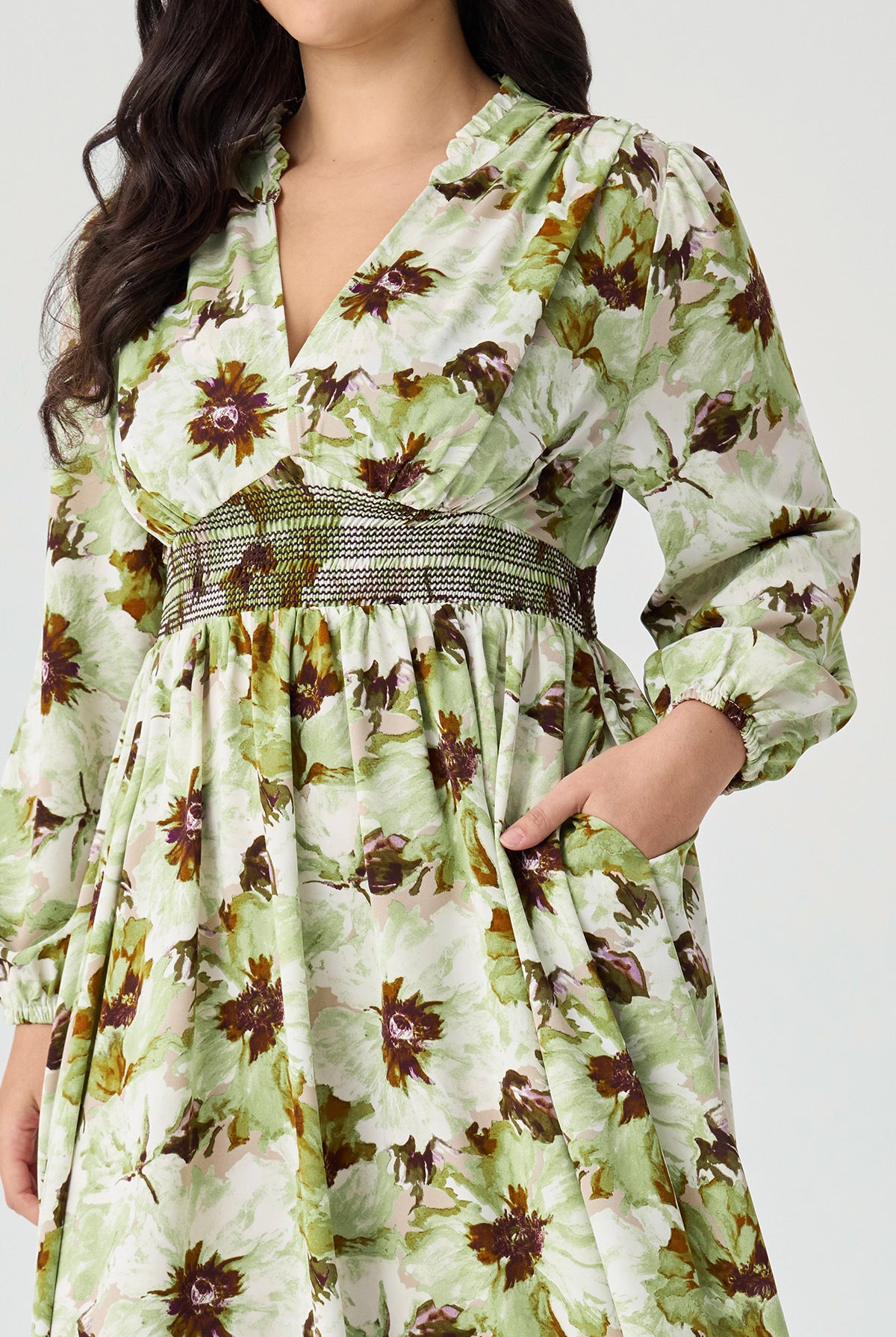 Pockets Elastic Floral Midi Dress