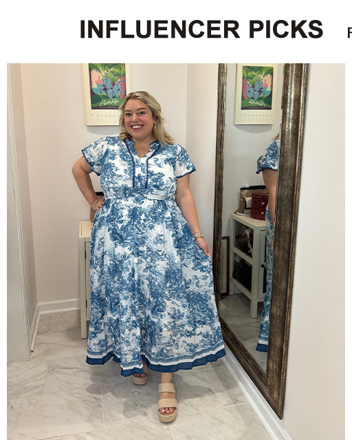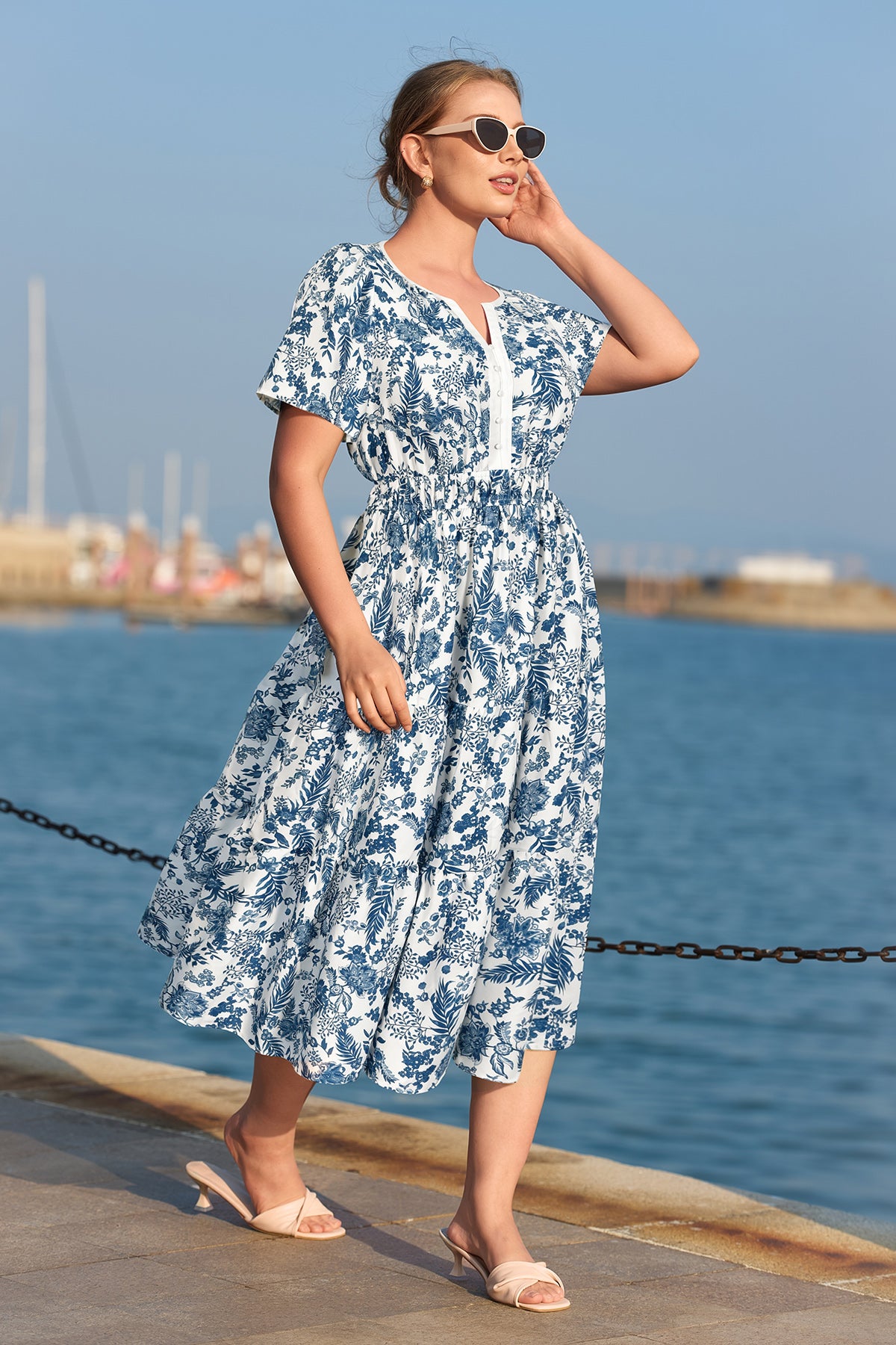 Pockets Elastic Waist Toile De Jouy Midi Dress