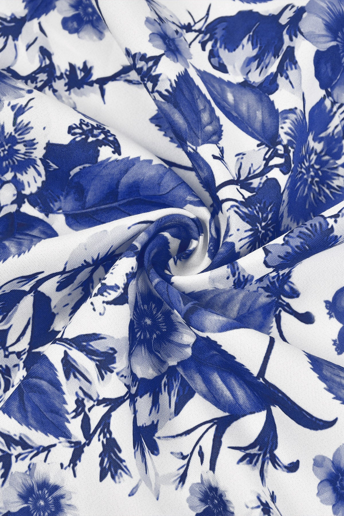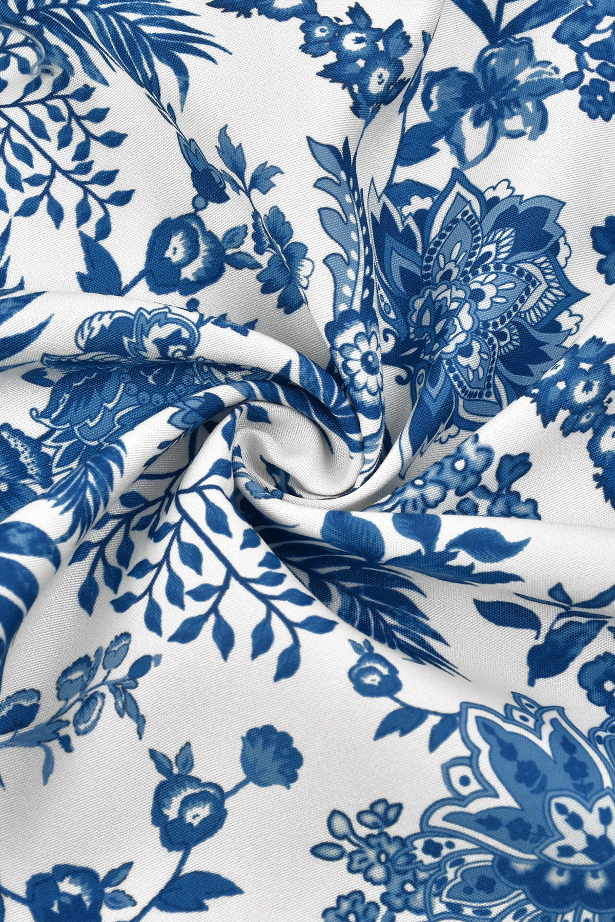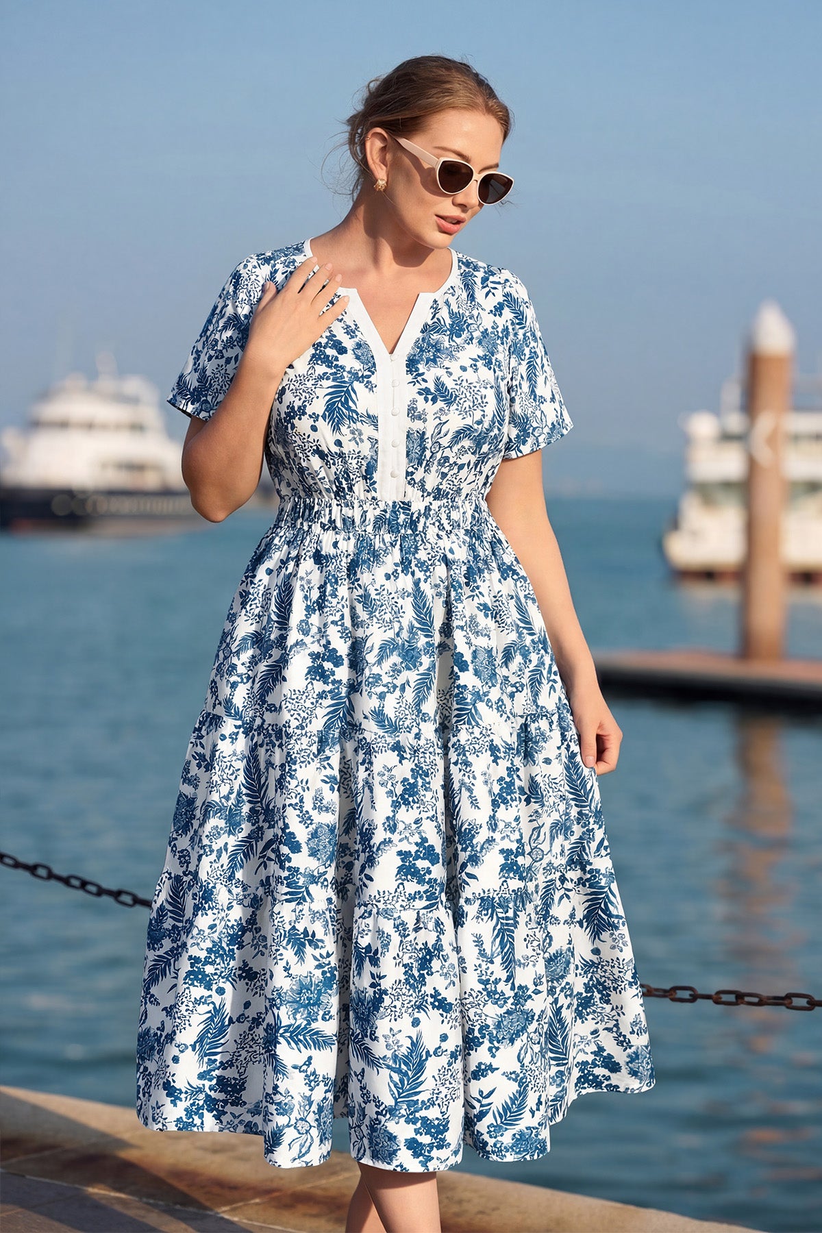 Vintage Blue Toile de Jouy Elastic Waist Midi Dress