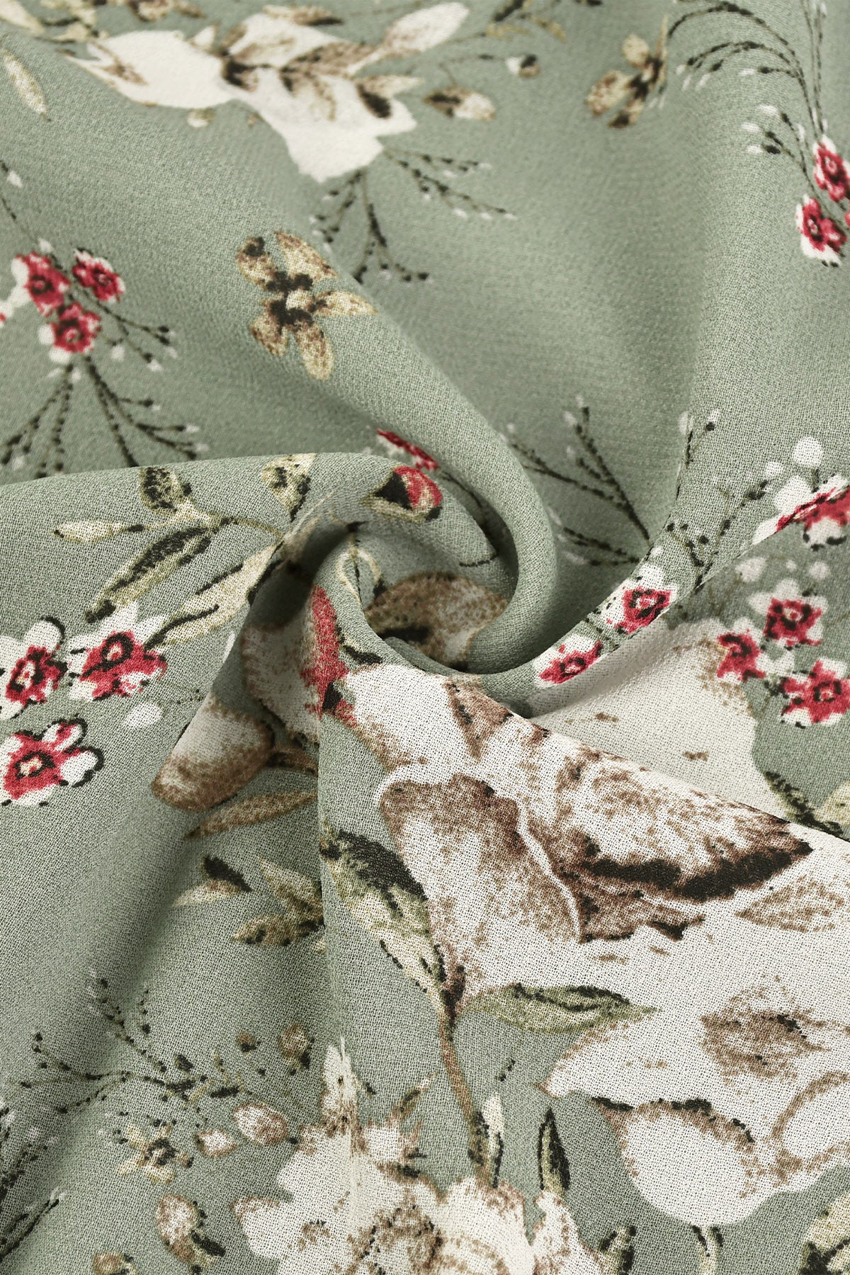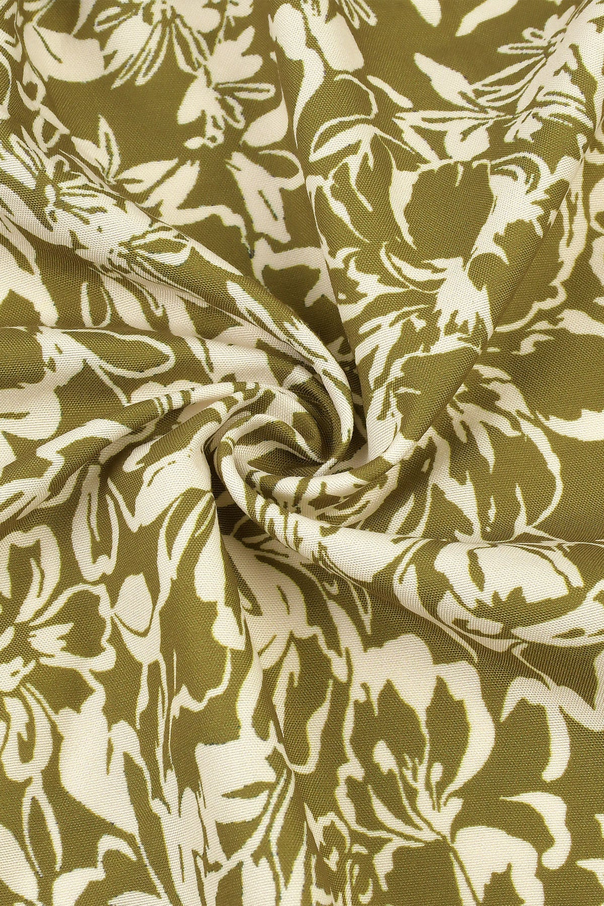 Floral Print Mesh Ruched V-neck Elastic Waist Midi Dress