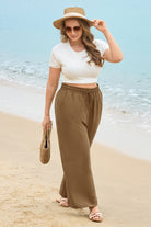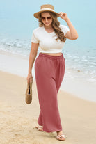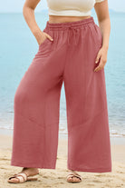Solid Drawstring Waist Wide Leg Pants