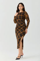 Ritera Plaid Ruched Chic Bodycon Cocktail Midi Dress