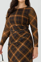 Step out in style with our Plaid Ruched Midi Dress. This figure-flattering dress is a chic and sophisticated addition to your wardrobe. The timeless plaid pattern and elegant midi length create a polished look, while the strategic ruching detail at the waist provides a beautiful silhouette that enhances your curves. Made from a comfortable and stretchy fabric, it moves with you and ensures a perfect fit for any occasion.