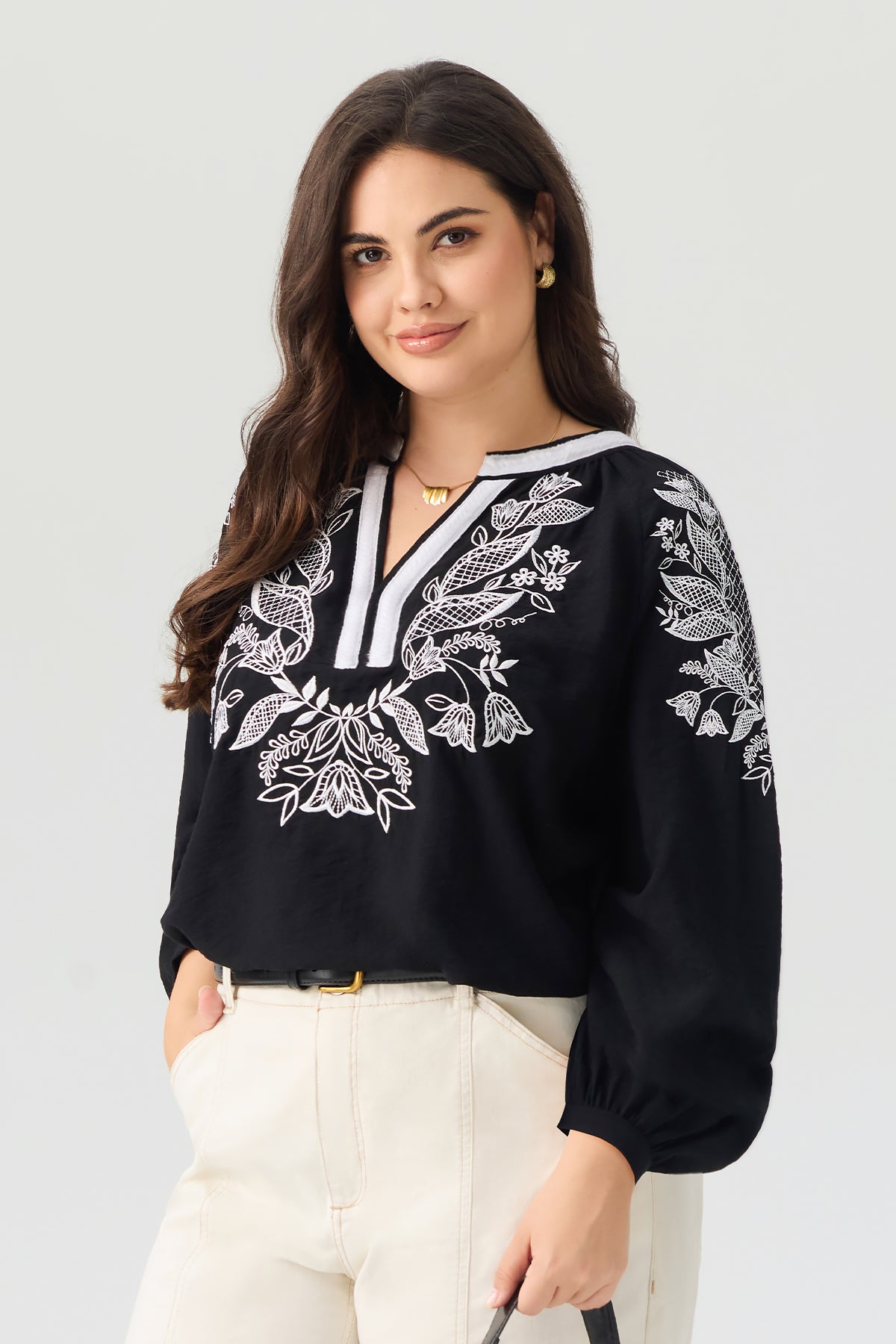 Ritera Allover Floral Sparkle Button Up Notched Neck Blouse