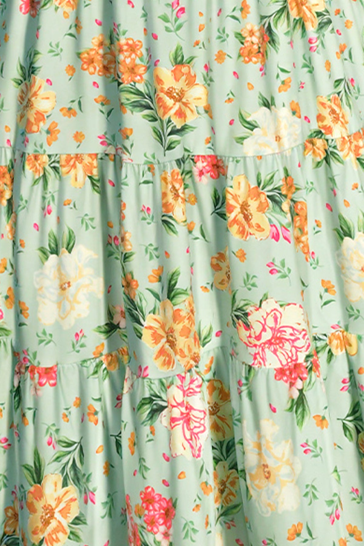 - Details: Button-front V-neckline, Short puff sleeves, Smocked waistband, Tiered A-line skirt