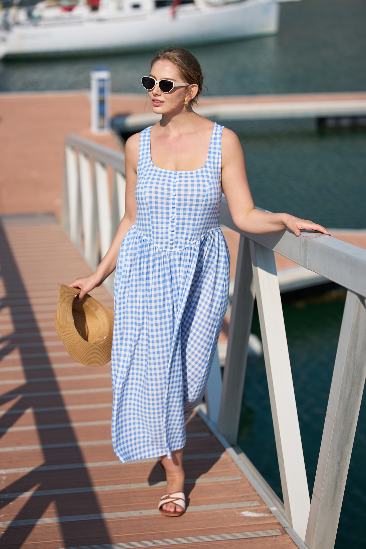 Ritera Pocket Plaid V Neck Pleated Midi Dress