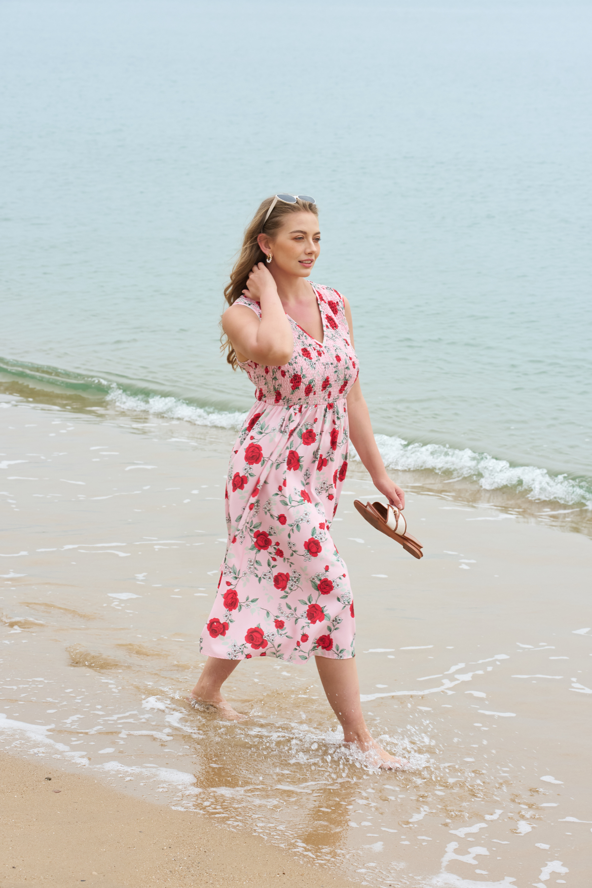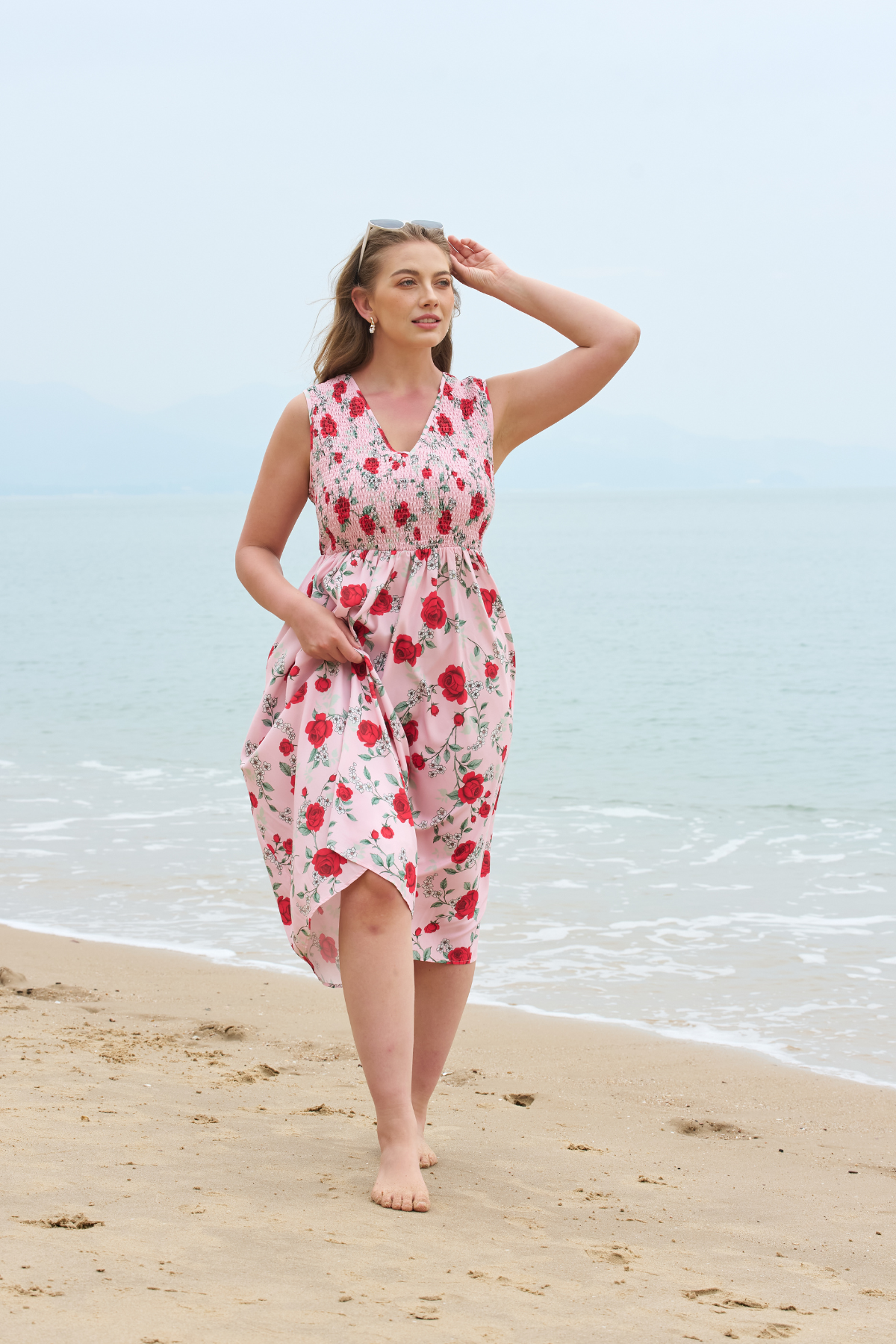Ritera Pockets Floral Print Beach Summer Vibes Midi Dress