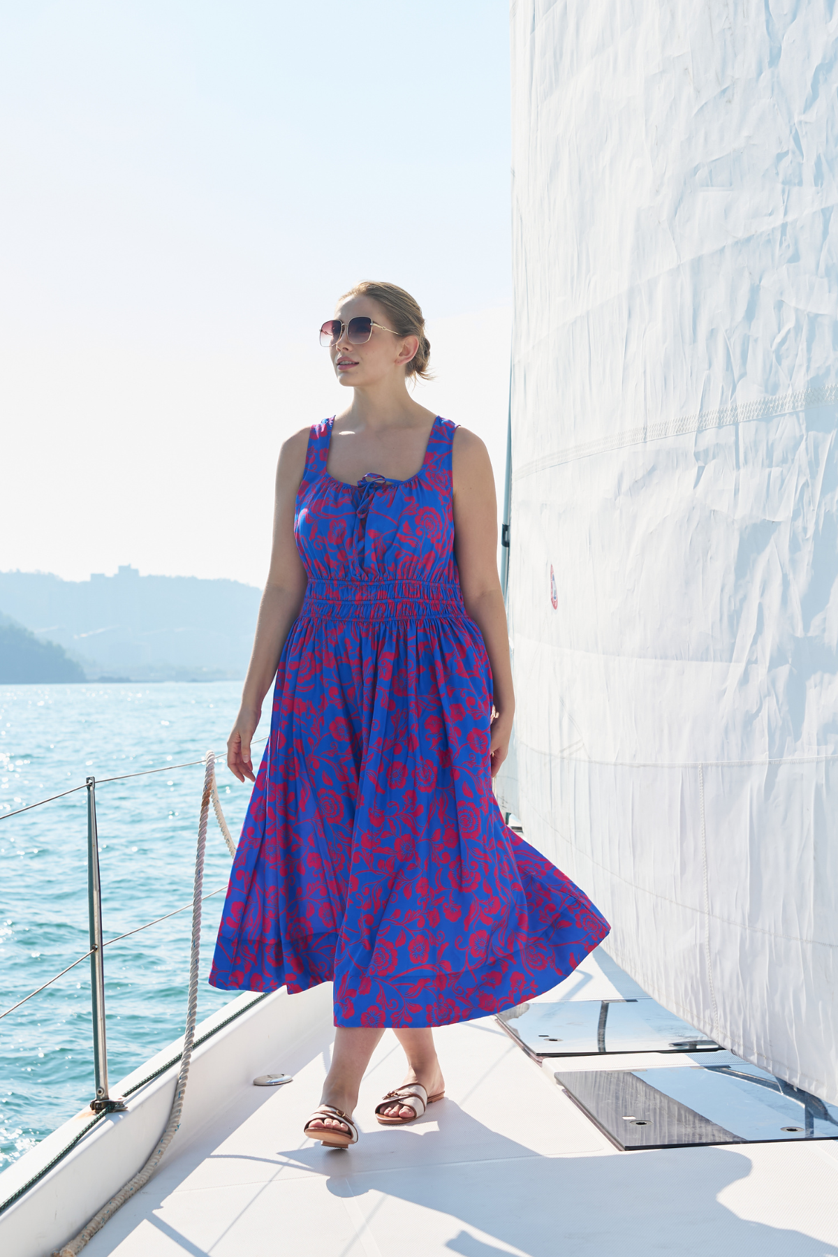 Boho Print Pocket Drawstring Tassel Waist A-line Midi Dress