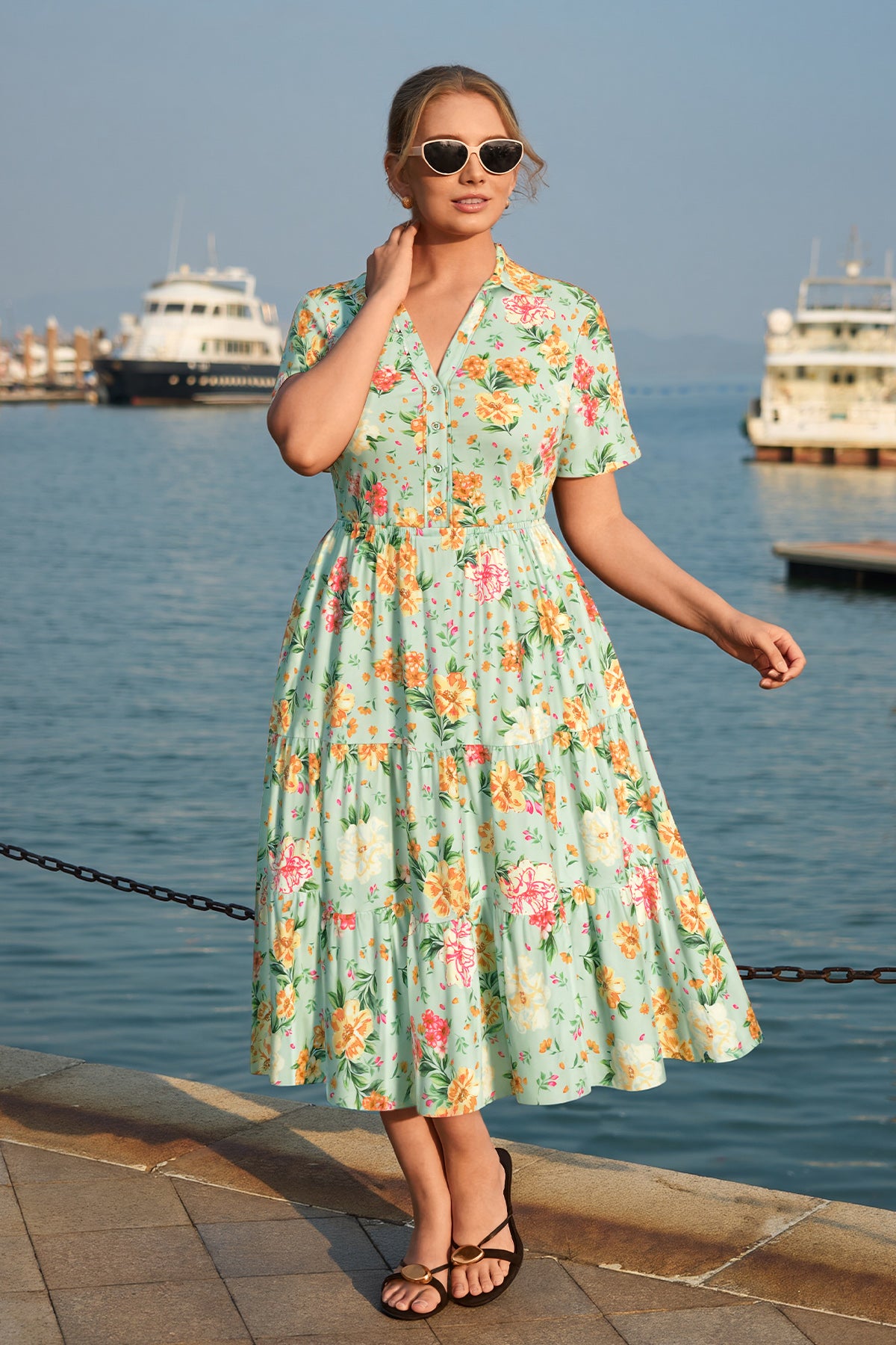 Floral Ruffled Short Sleeve Tiered Midi Dress