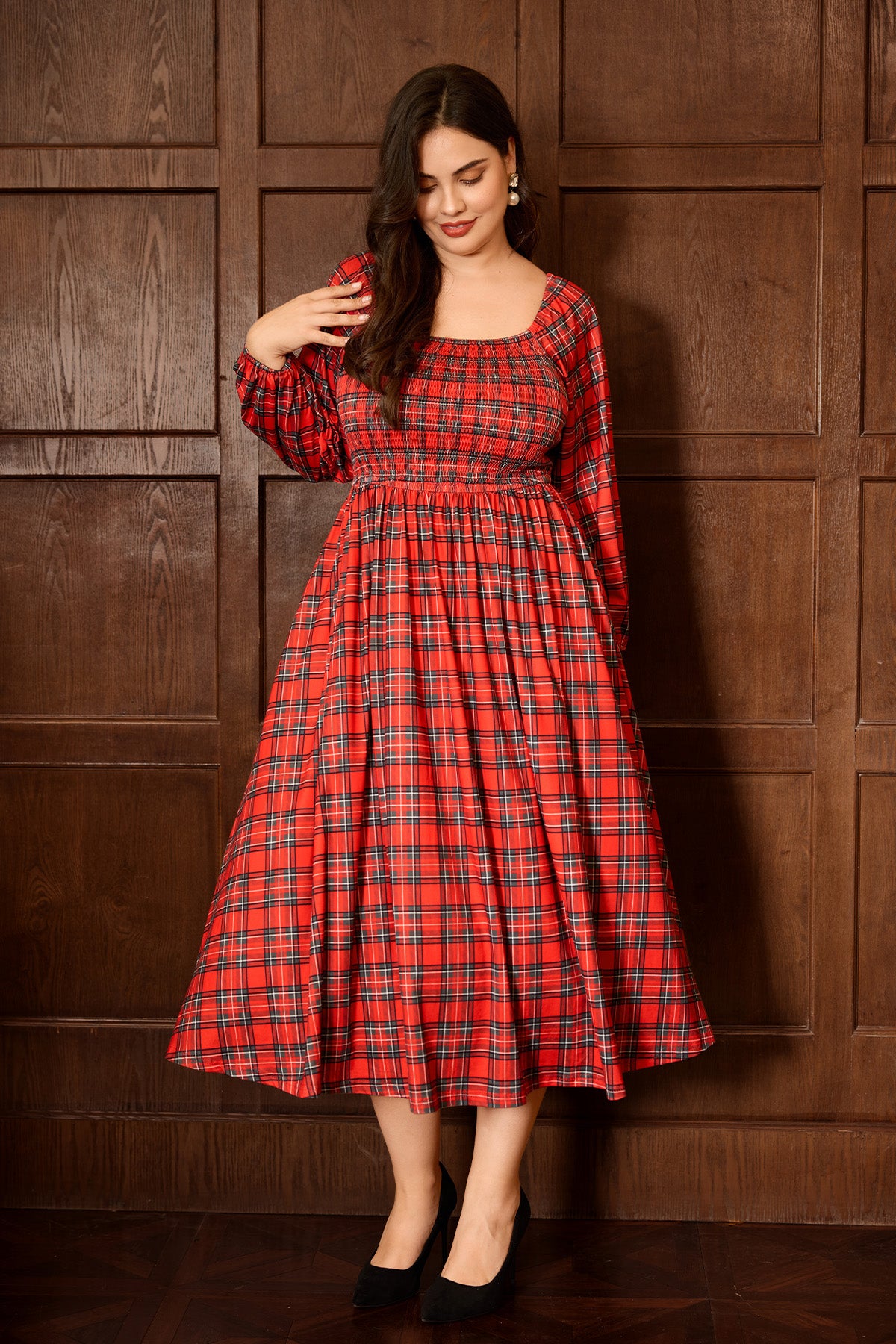 Step into the season with style and comfort in our enchanting "Harvest Plaid" Smocked Midi Dress. This vibrant red tartan dress is a true showstopper, blending classic appeal with modern design elements to create a flattering and versatile piece for your wardrobe. Perfect for crisp fall days, holiday gatherings, or simply adding a touch of cozy elegance to your everyday look.