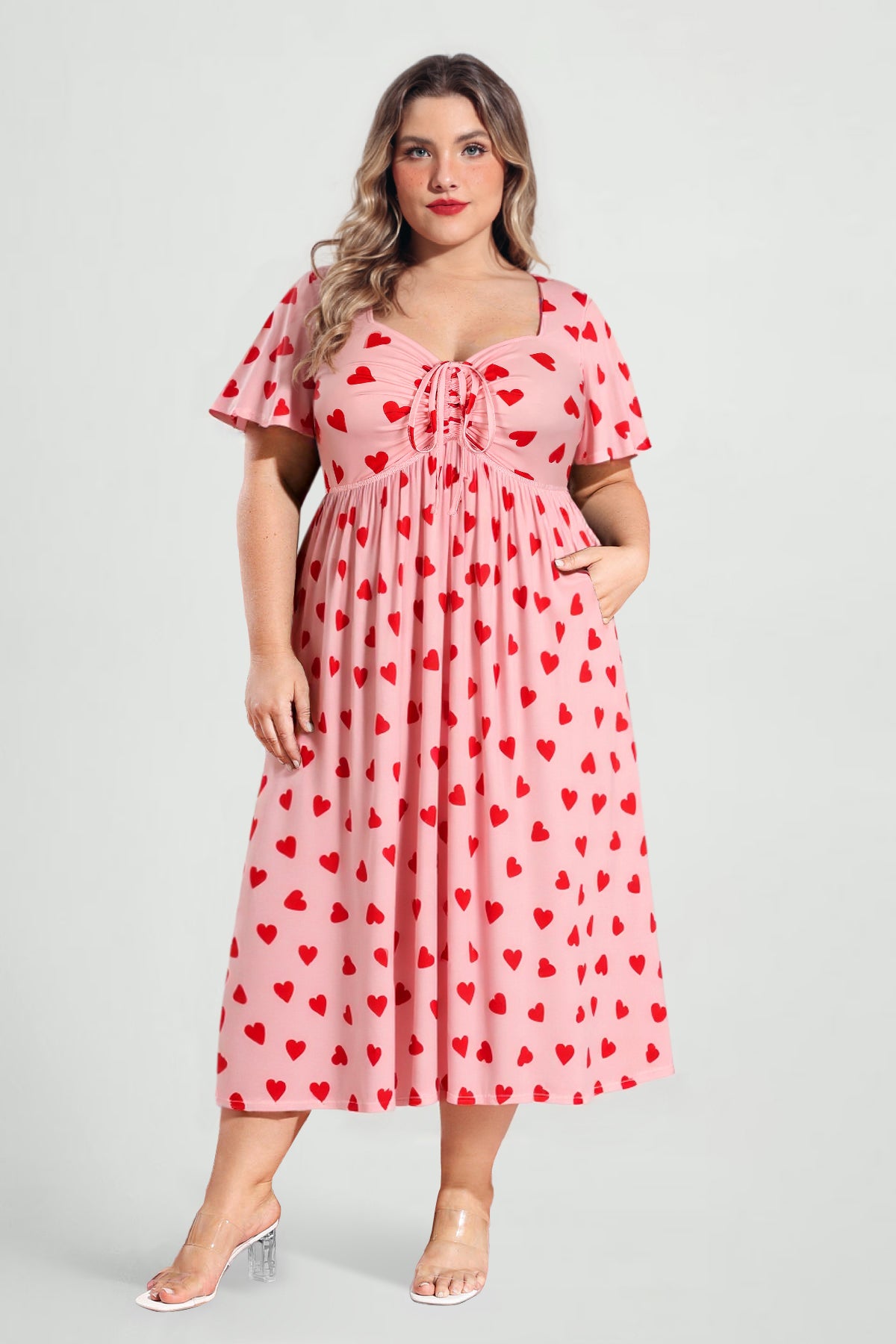 - Details: Tie-front square neck, Short flutter sleeves, Flowy A-line skirt