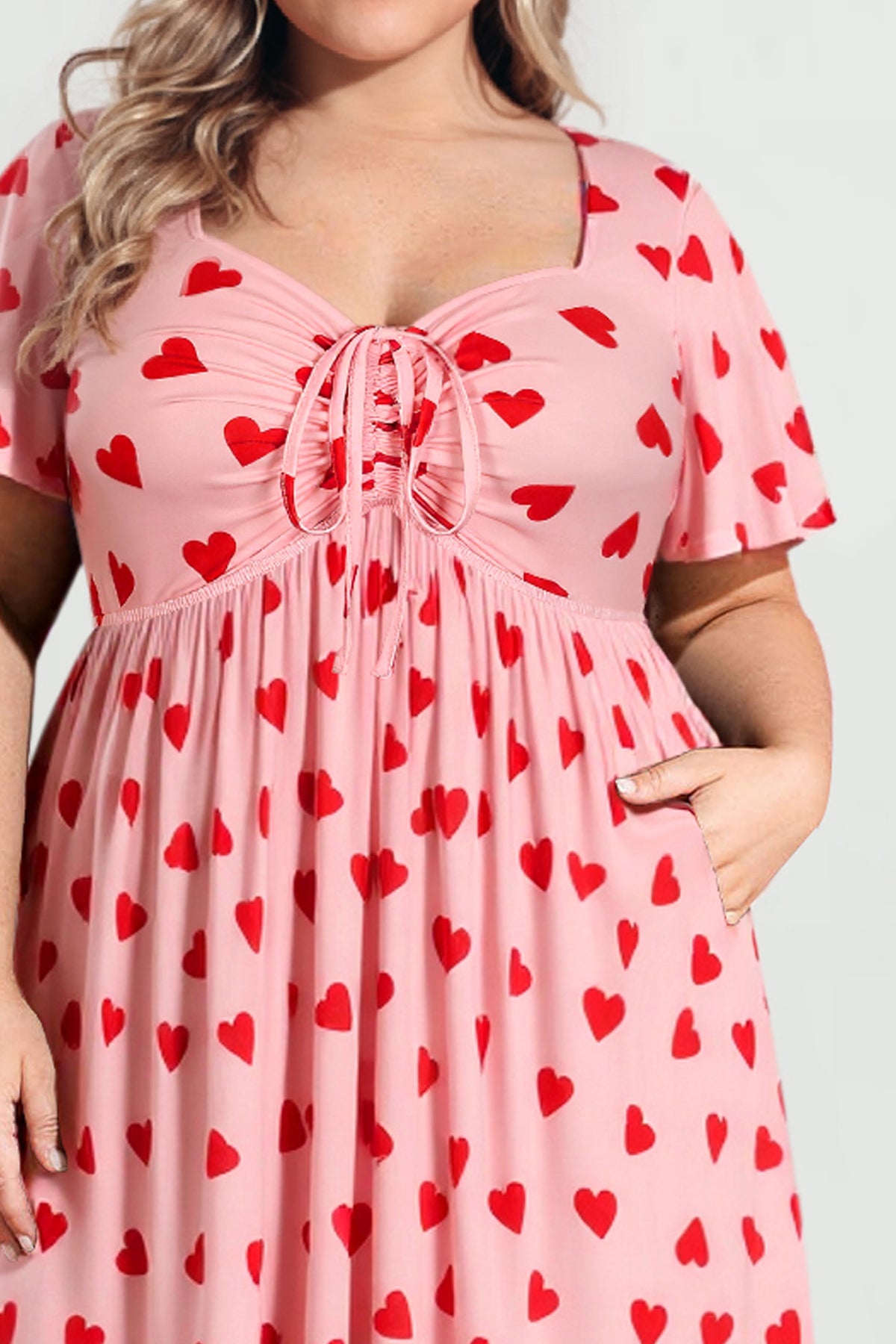 Pockets Drawstring Sweetheart Floral A-line Midi Dress