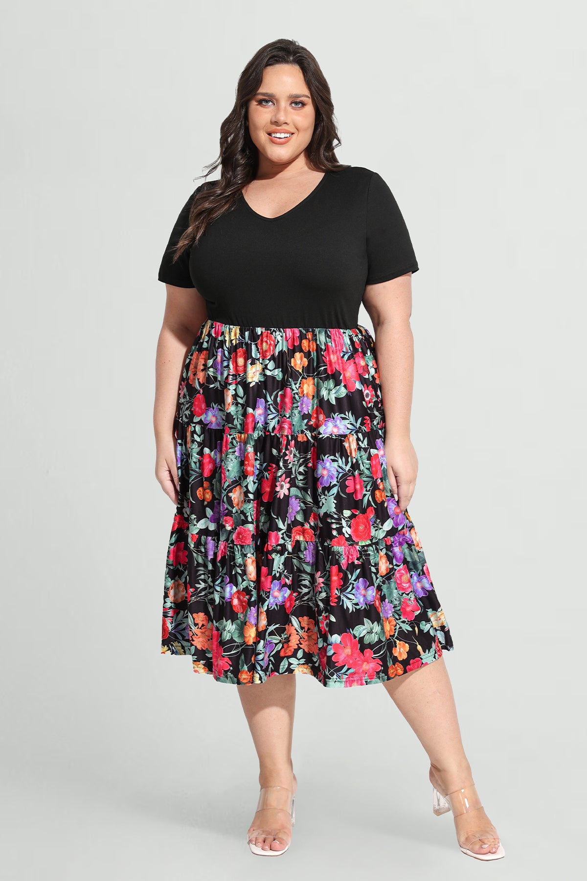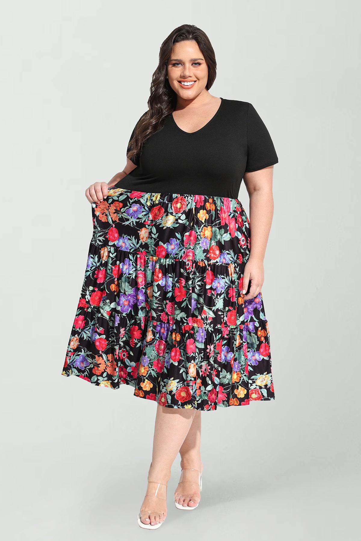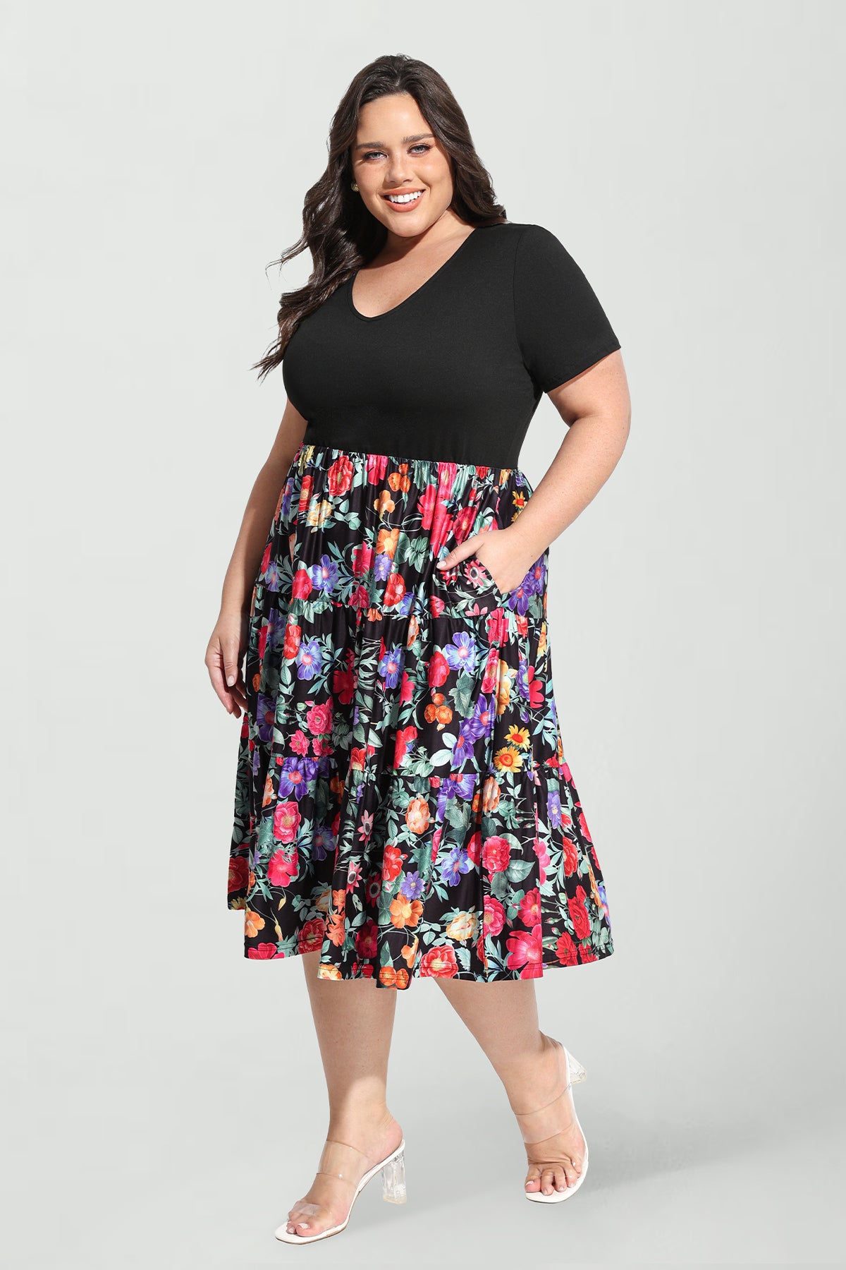 Ritera Pocket Patchwork Shirred Daisy Floral Summer Dress